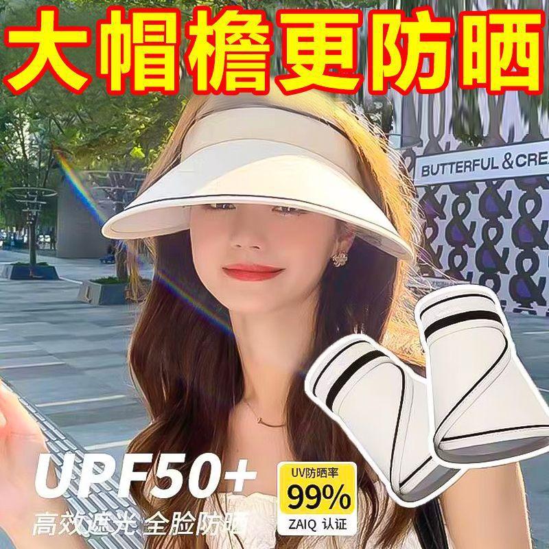 Sombrero de verano con ala ancha y protección solar UPF50 para mujer, con parte superior vacía, anti-UV, para ciclismo, parasol, para cubrir la cara