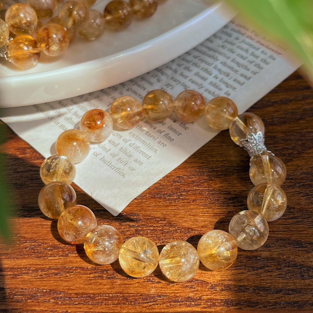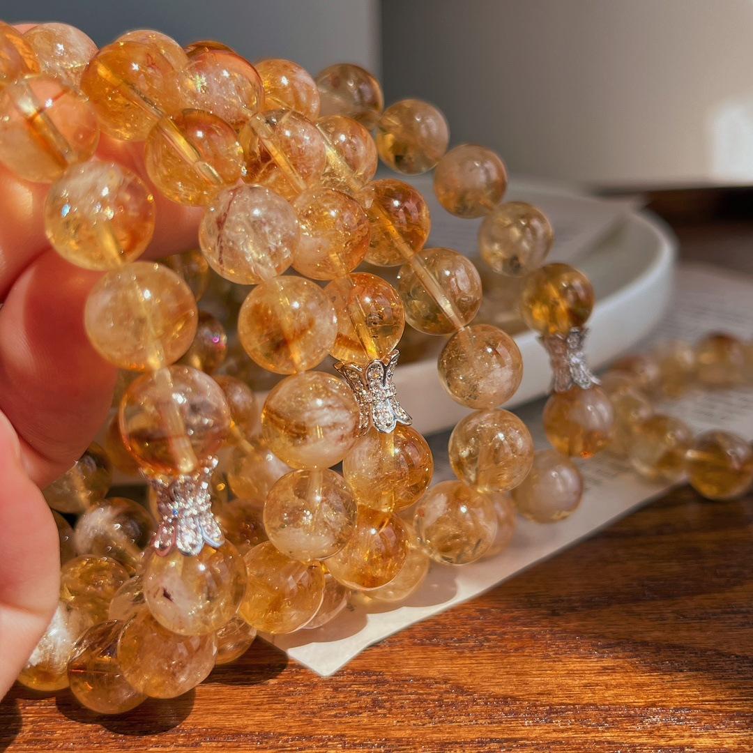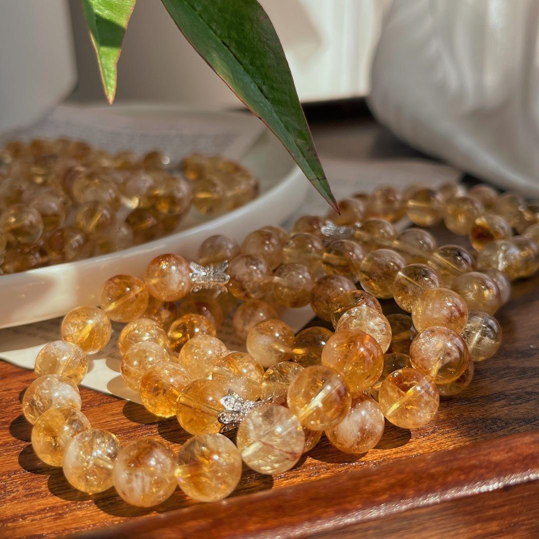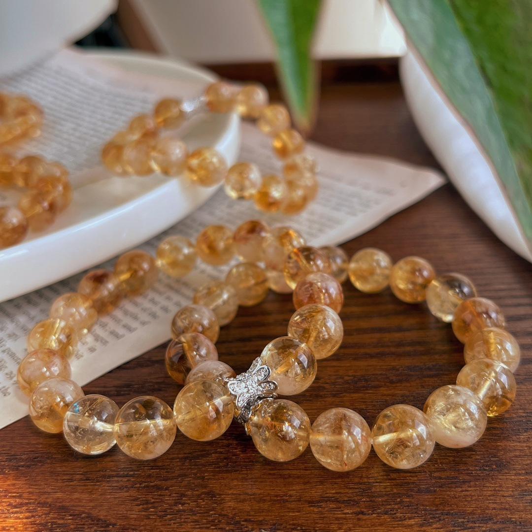 Pulsera de citrino natural de 10 mm pulsera simple básica para el día a día