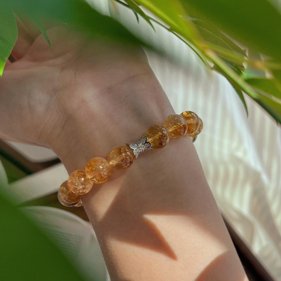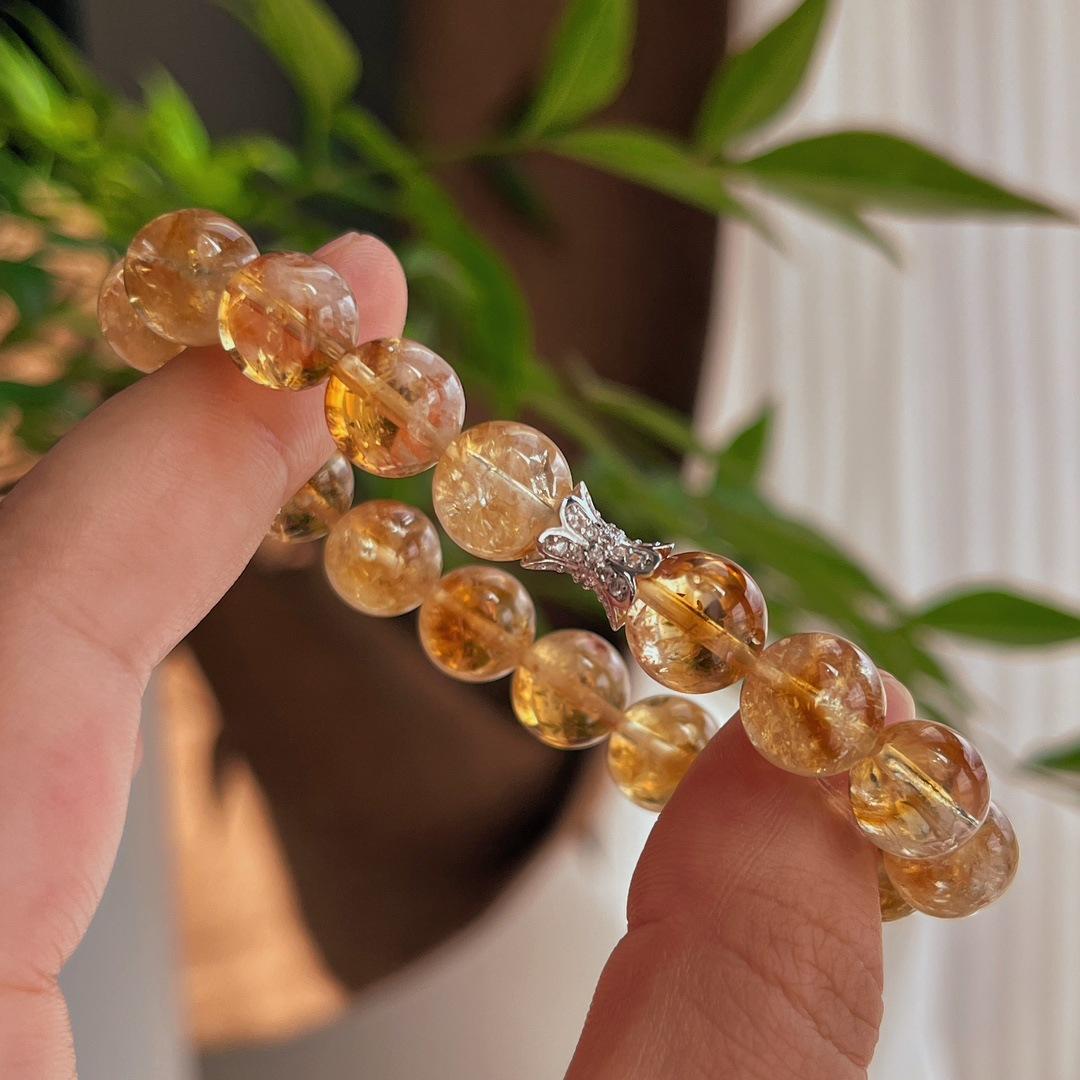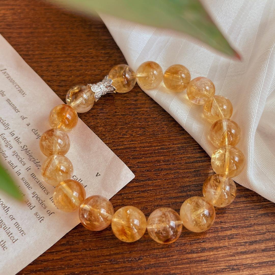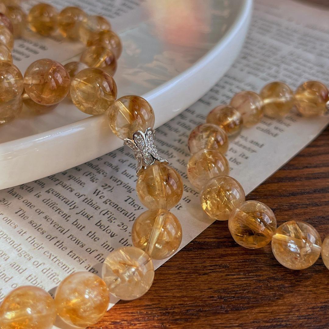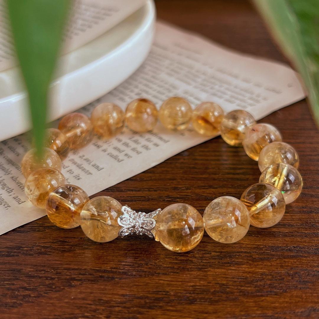 Pulsera de citrino natural de 10 mm pulsera simple básica para el día a día