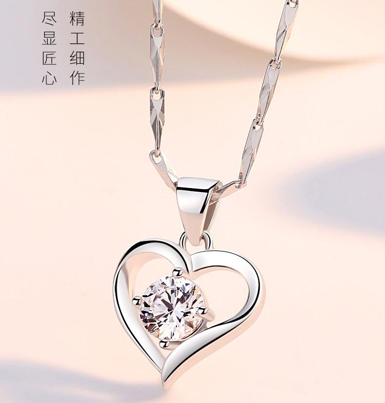 Collar de plata esterlina 925 con corazón para niña, clavícula femenina, colgante encantador, simple para estudiante, regalo de Navidad, Día de San Valentín para novia
