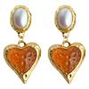 Pendientes de calidad bañados en oro, cristal transparente, perlas de agua dulce,