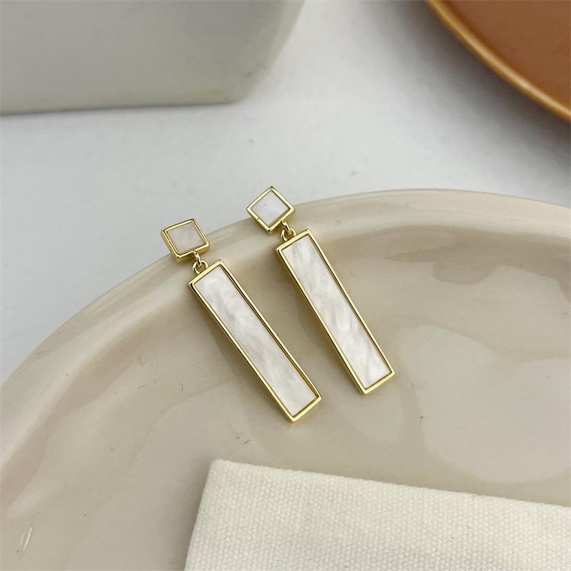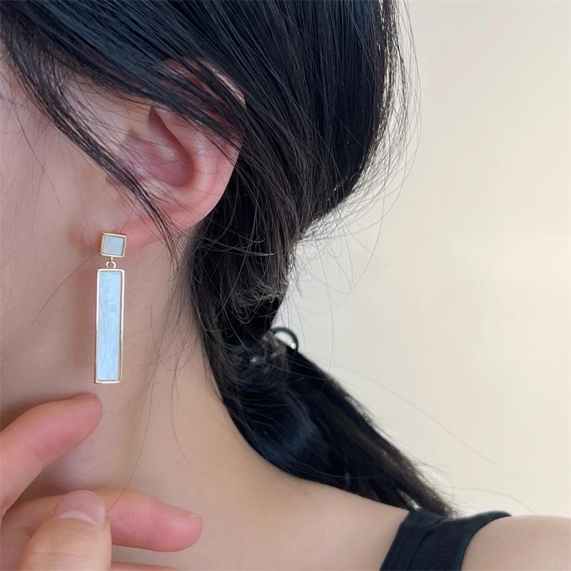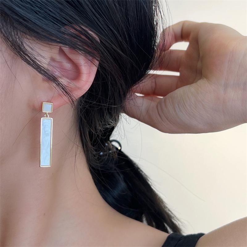 Pendientes elegantes de alta calidad con forma de gota geométrica rectangular, populares en Internet, que combinan con todo, elegantes y elegantes, con aguja de plata s925.