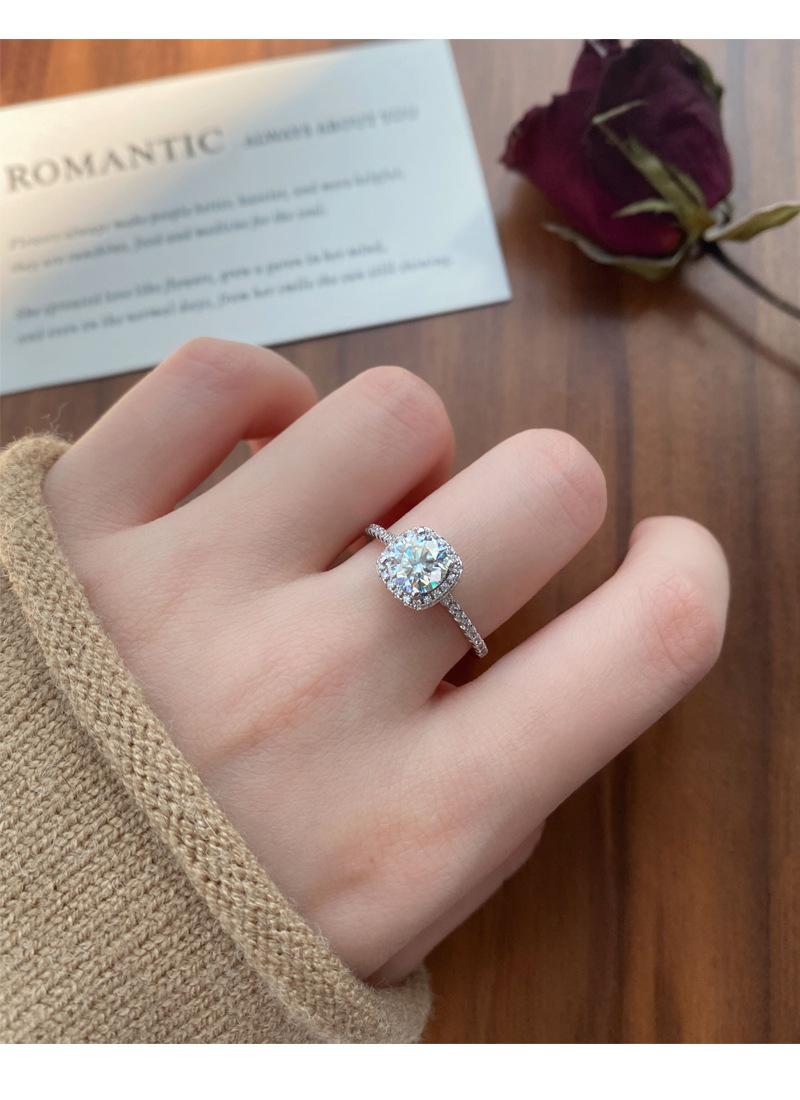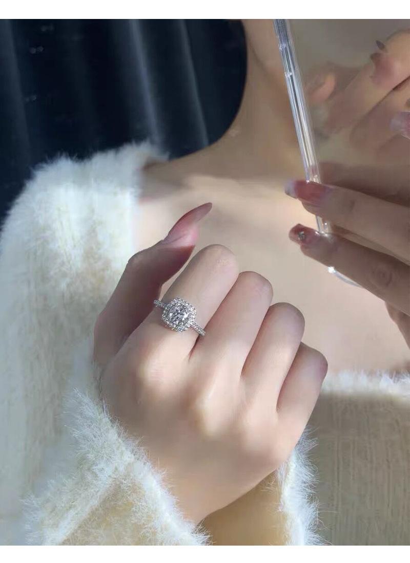 Anillo de moissanita para mujer, de 1 quilate, con diamantes de imitación de princesa y forma cuadrada, en plata de ley, para propuesta de matrimonio, joyería de alta calidad.