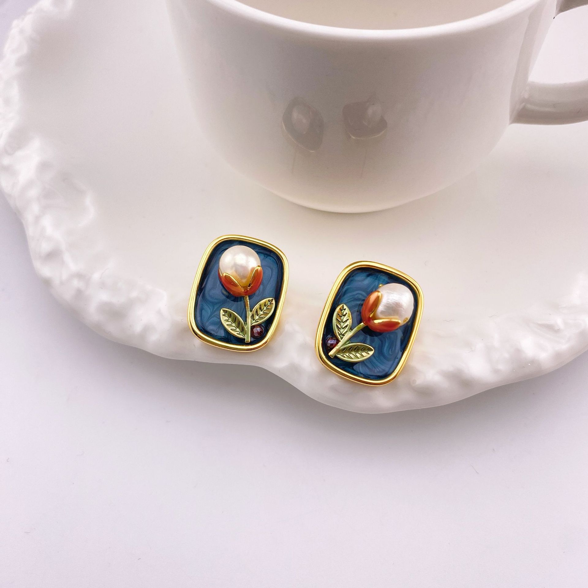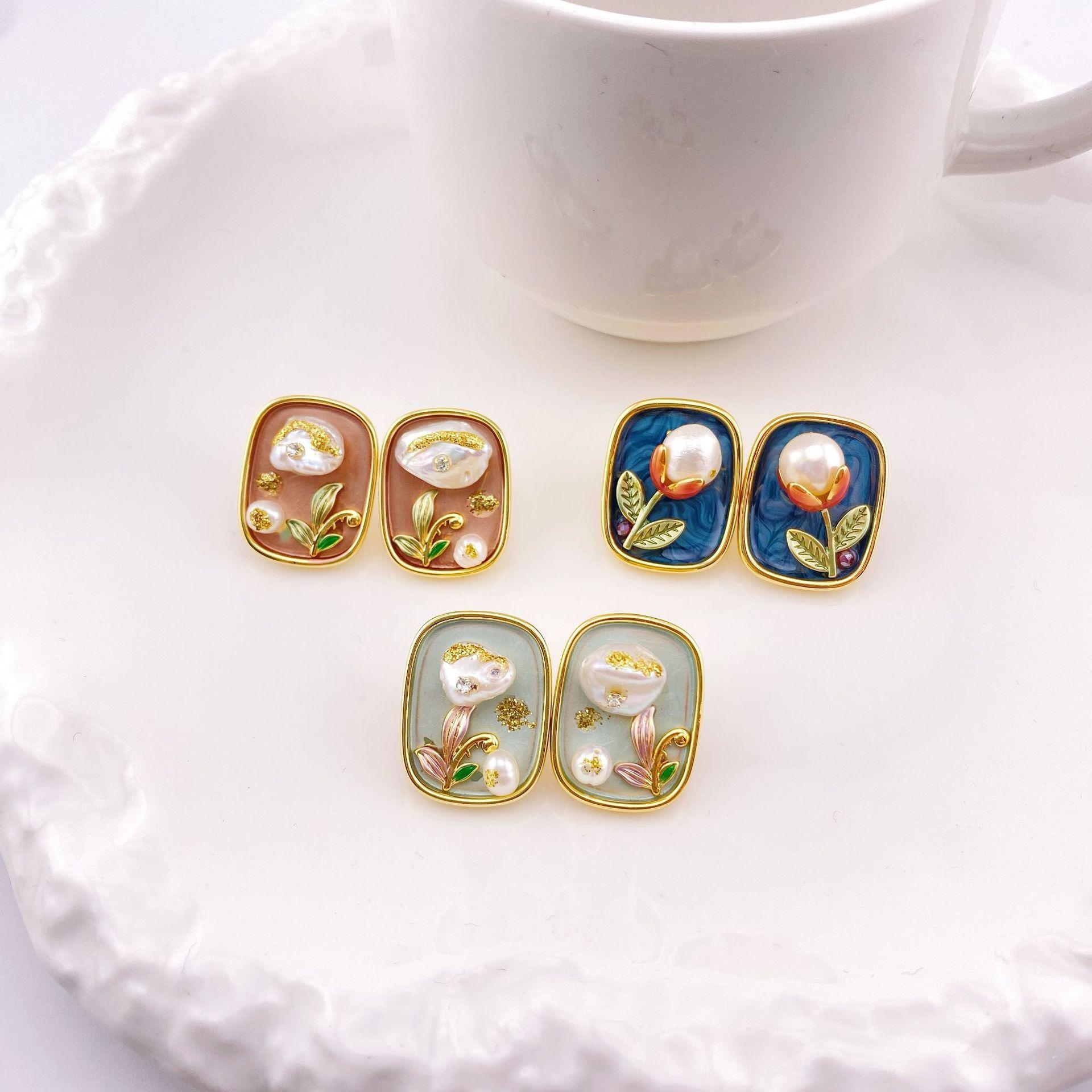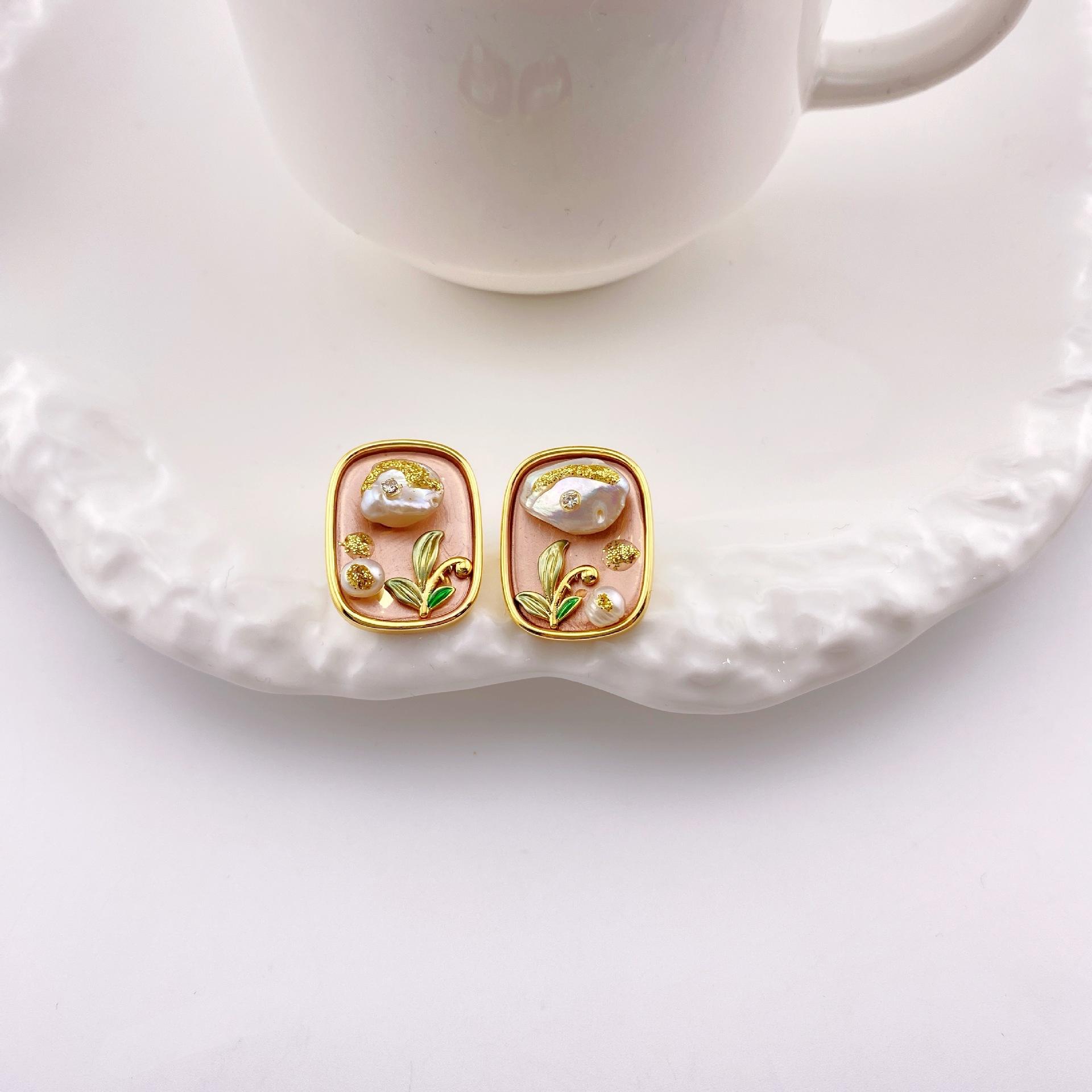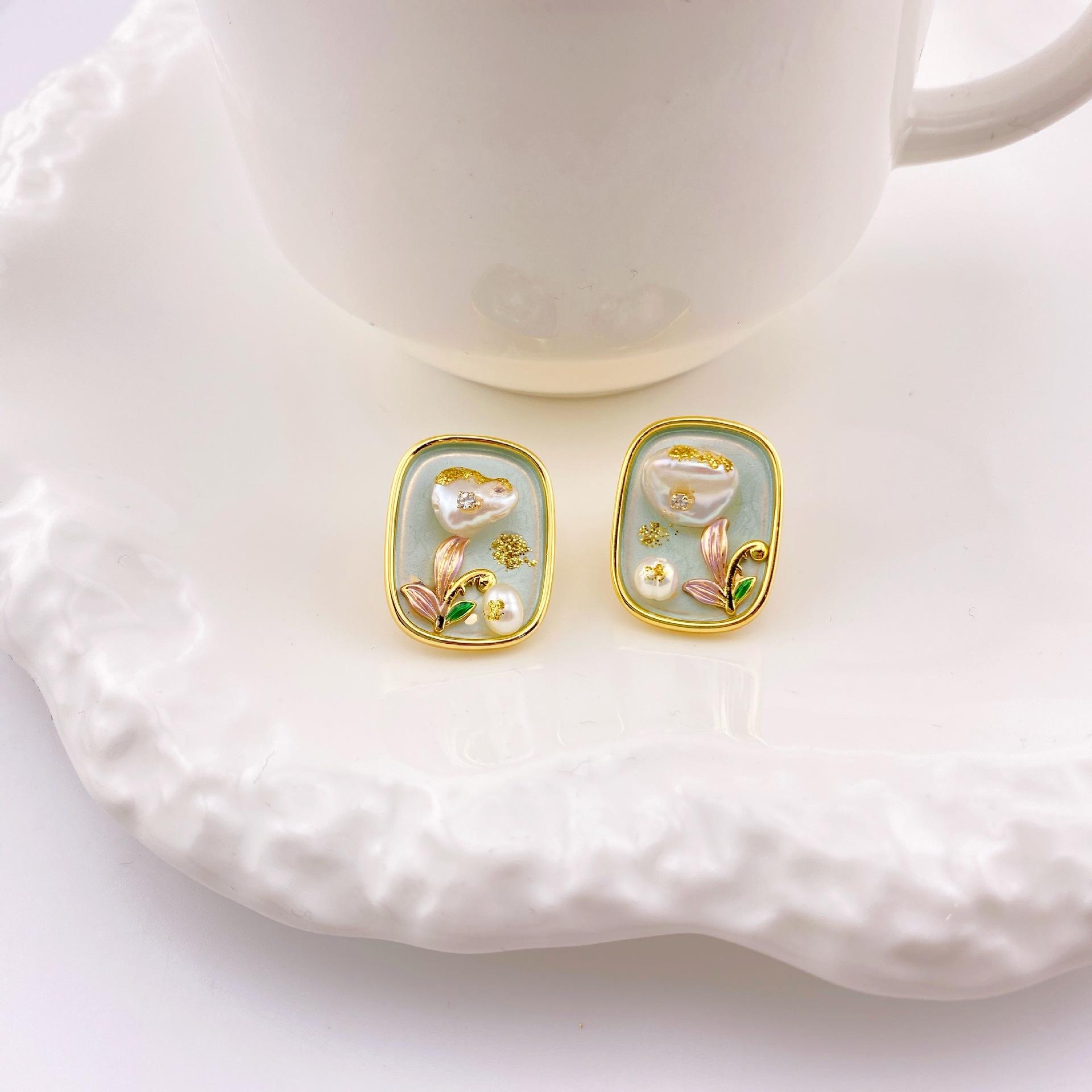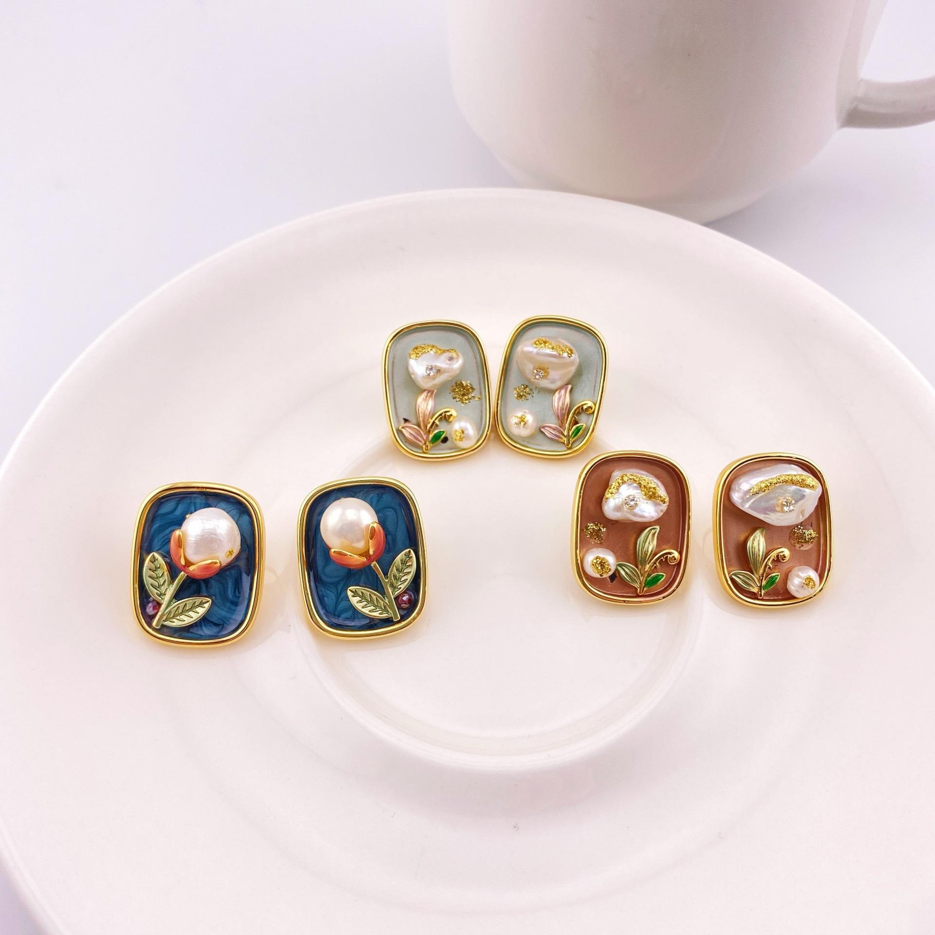 Compra Nuevos pendientes de perlas barrocas cuadradas con pintura al óleo, elegantes, de alta gama, con hebilla de oreja sencilla, a la moda, combinables con todo. al por mayor en Joom.pro