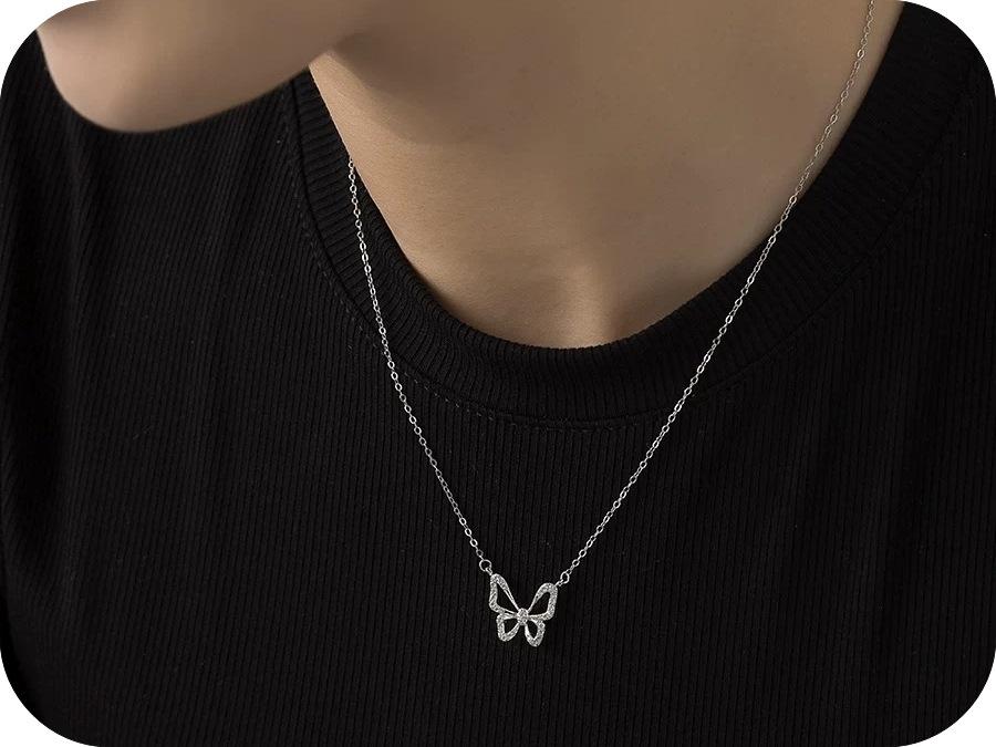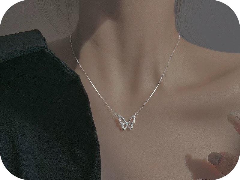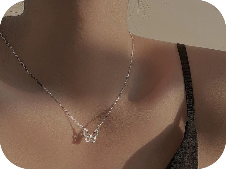 Collar de mariposa hueca Seiko para mujer, ligero, de lujo, estilo frío, cadena de clavícula de alta gama, cadena de lana simple y elegante a la moda.