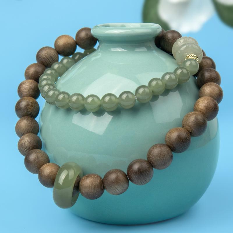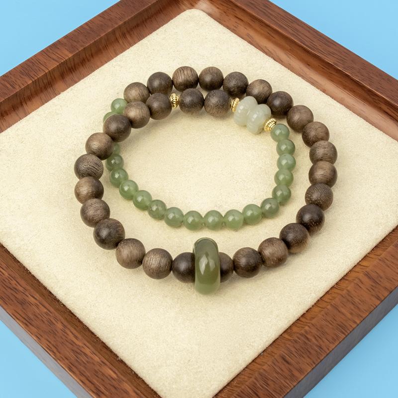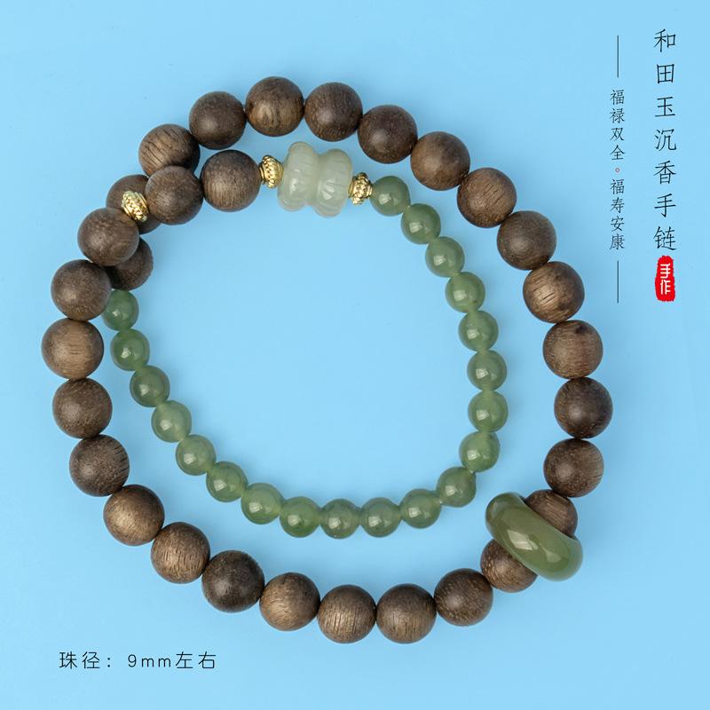 Compra Pulsera Guofeng retro de madera de agar, nueva pulsera Guofeng de estilo chino, doble círculo, cuentas de jade Hetian, anillo para correr, suministro al por mayor al por mayor en Joom.pro