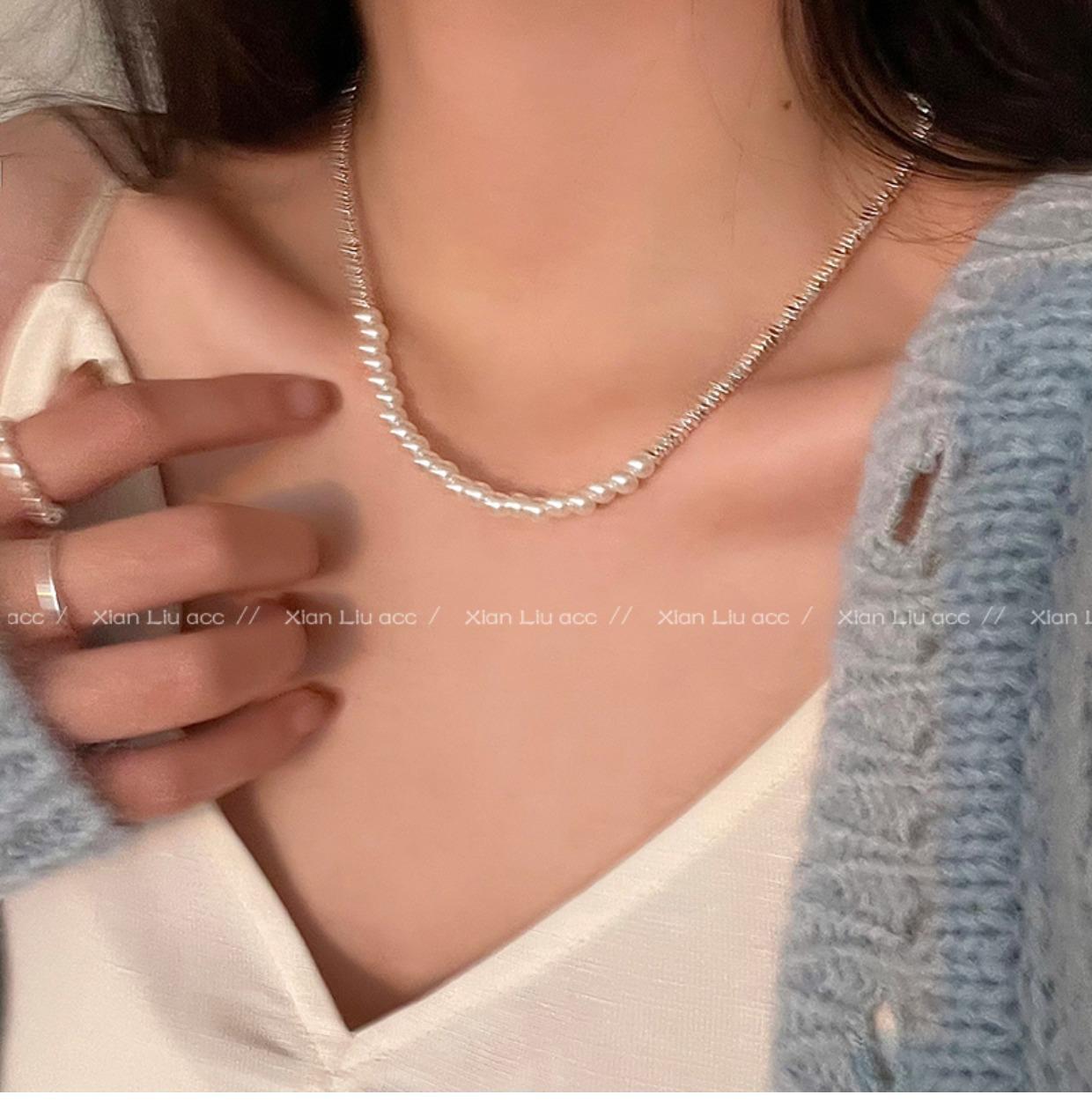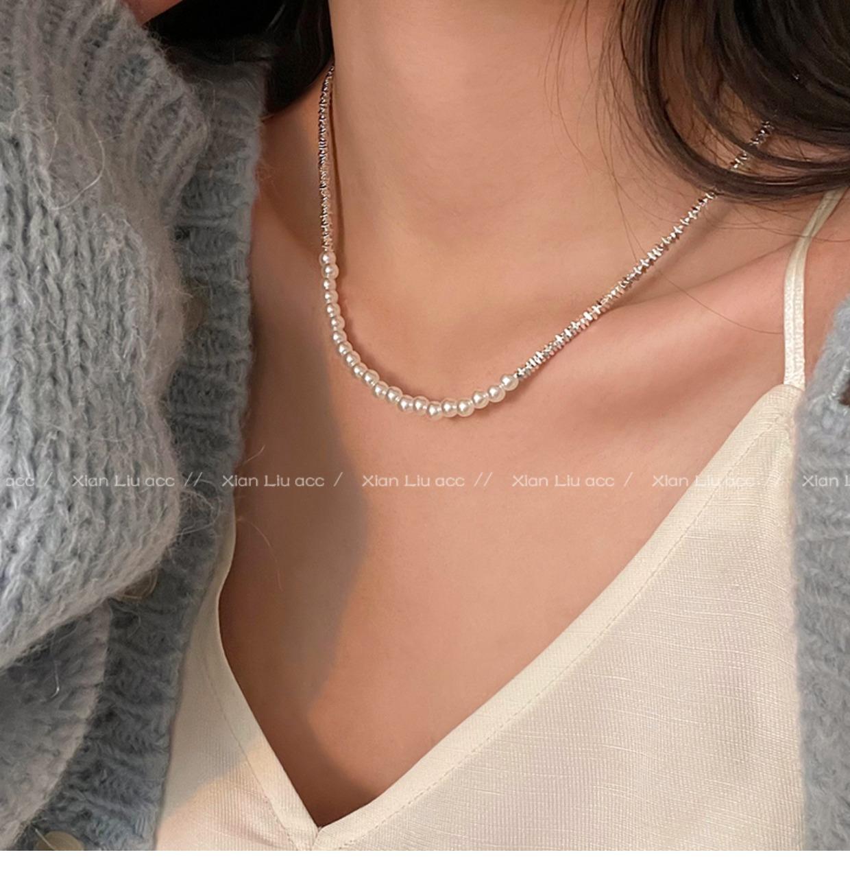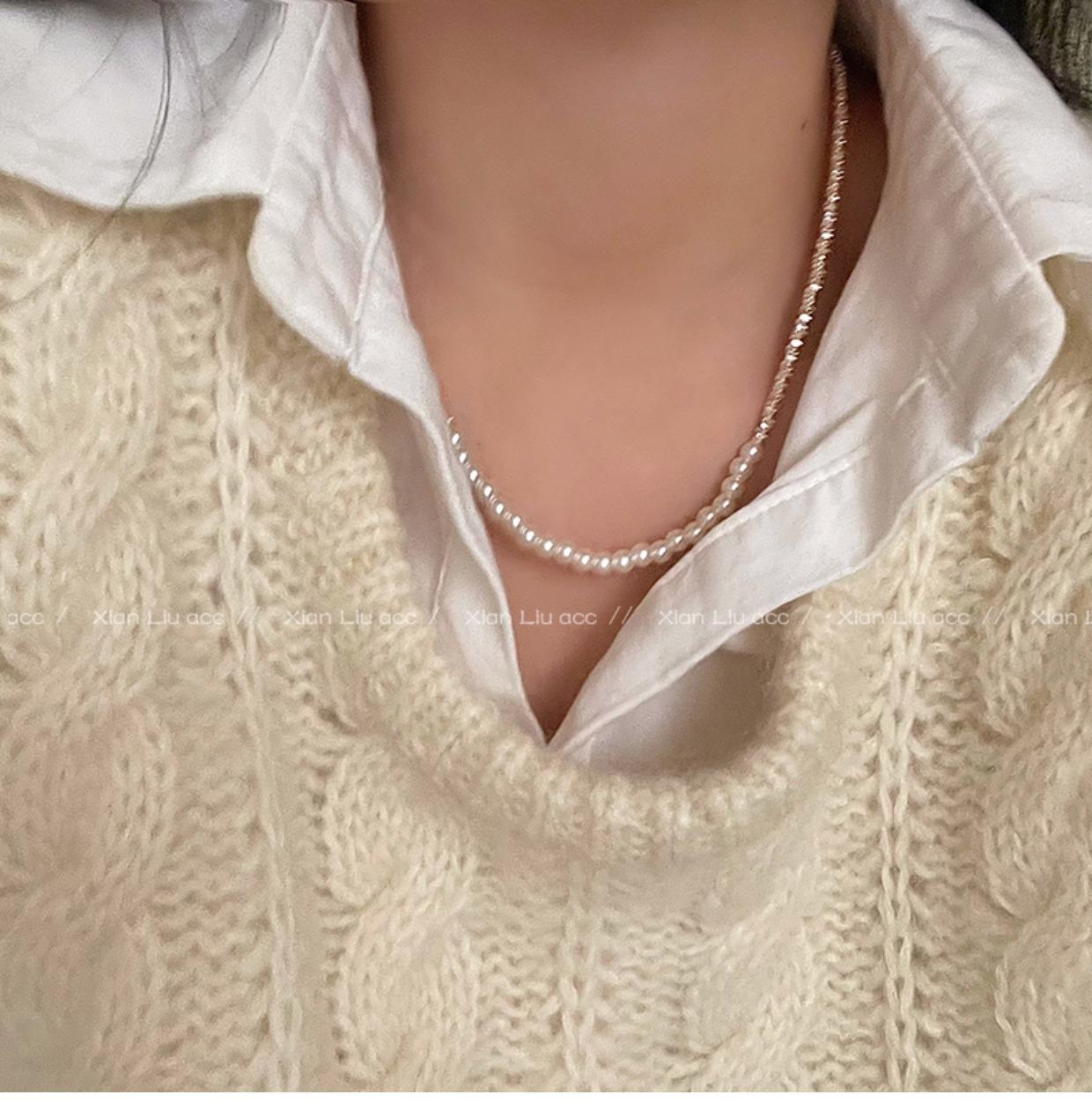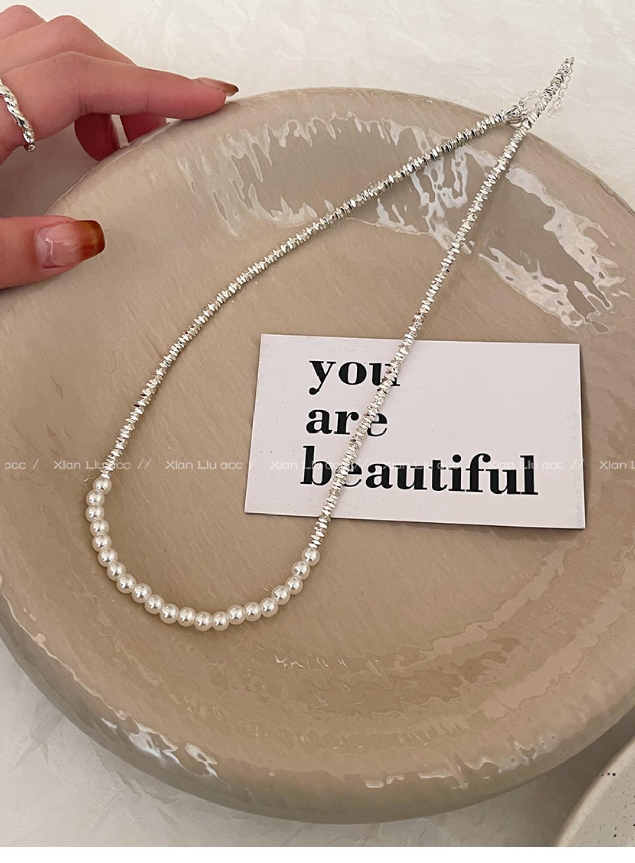 | Collar de doble capa con diseño de galaxia humana, nicho de alta gama, 2023, nuevo y popular collar de clavícula con perla de plata rota. |