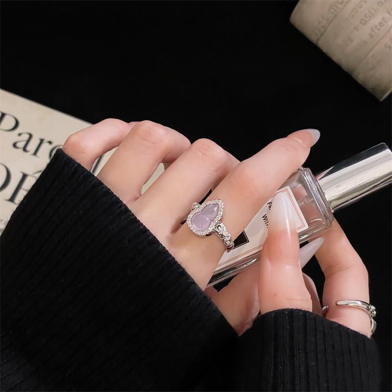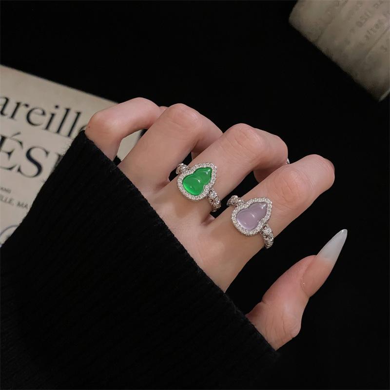 Compra Anillo abierto de imitación de calcedonia con forma de calabaza y cara de huevo para mujer, estilo chino, de gran potencia y circonita cúbica, a la moda en vivo. al por mayor en Joom.pro