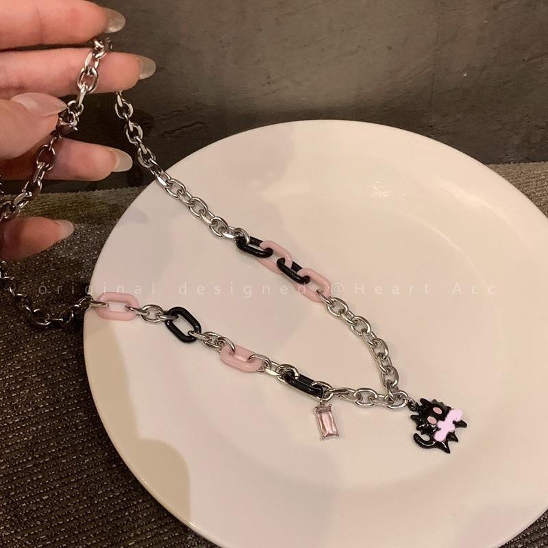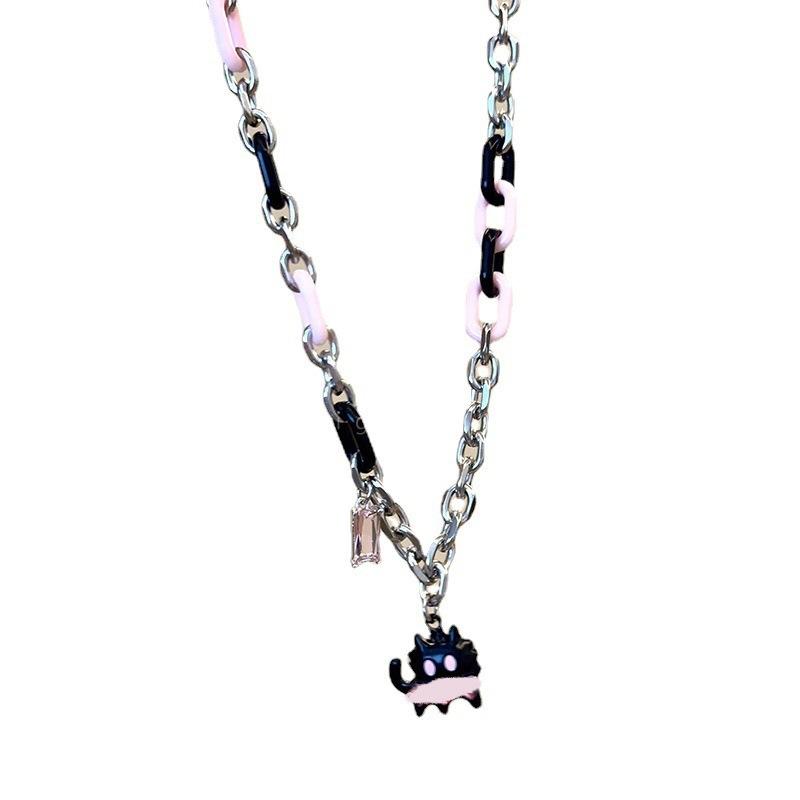 Collar ajustable con costuras de circonita y diseño de gato divertido, estilo coreano, con cadena de clavícula, bonito y dulce.