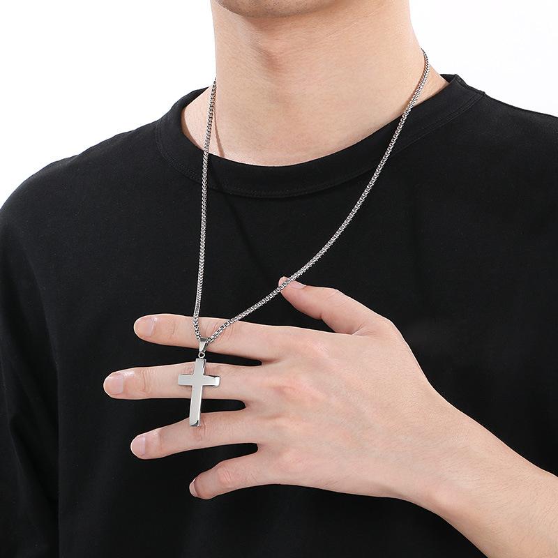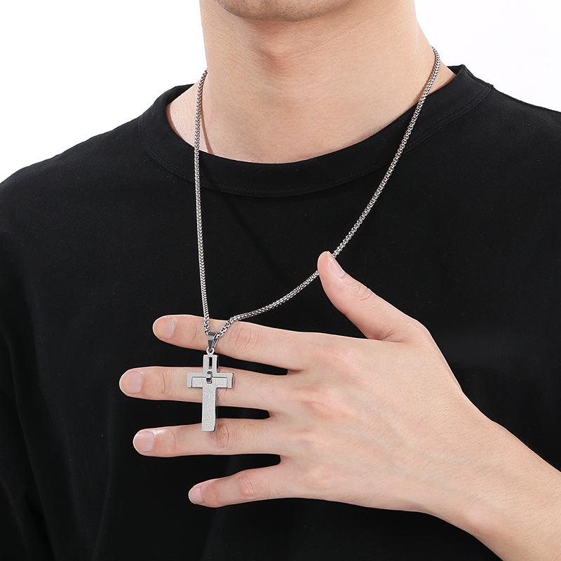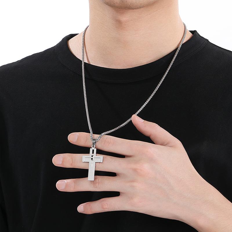 Collar de acero inoxidable con colgante de cruz de titanio y Joker para hombre y mujer, tendencia transfronteriza europea y americana, joyería al por mayor