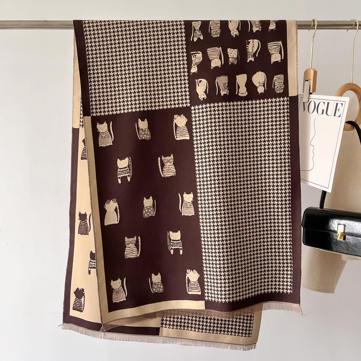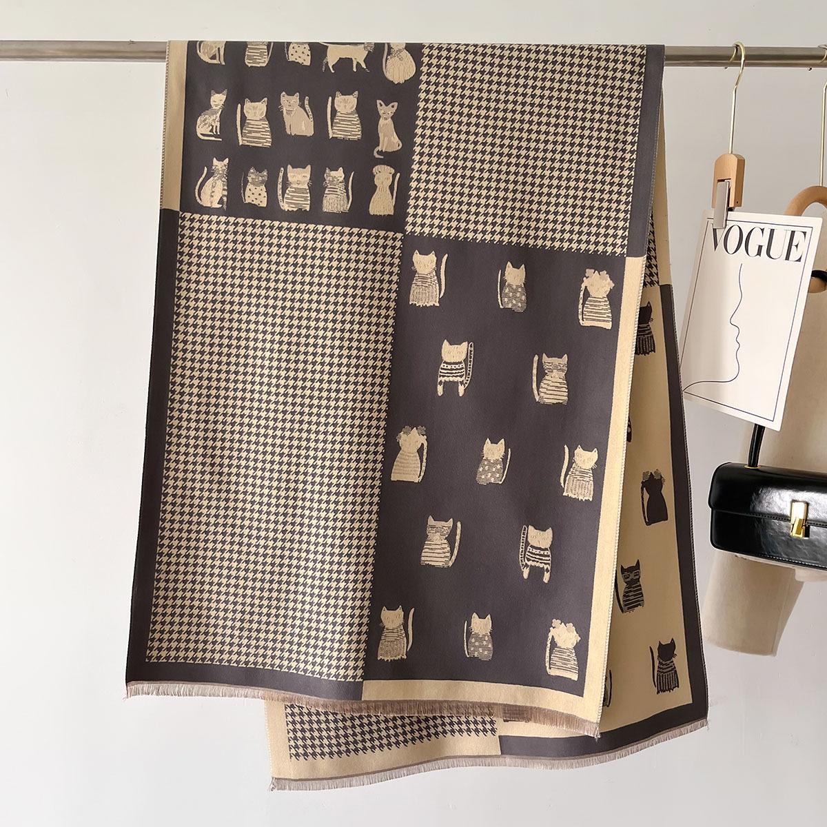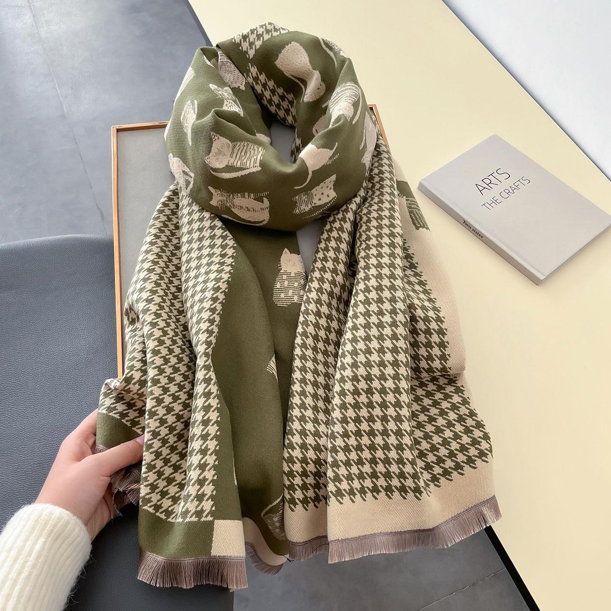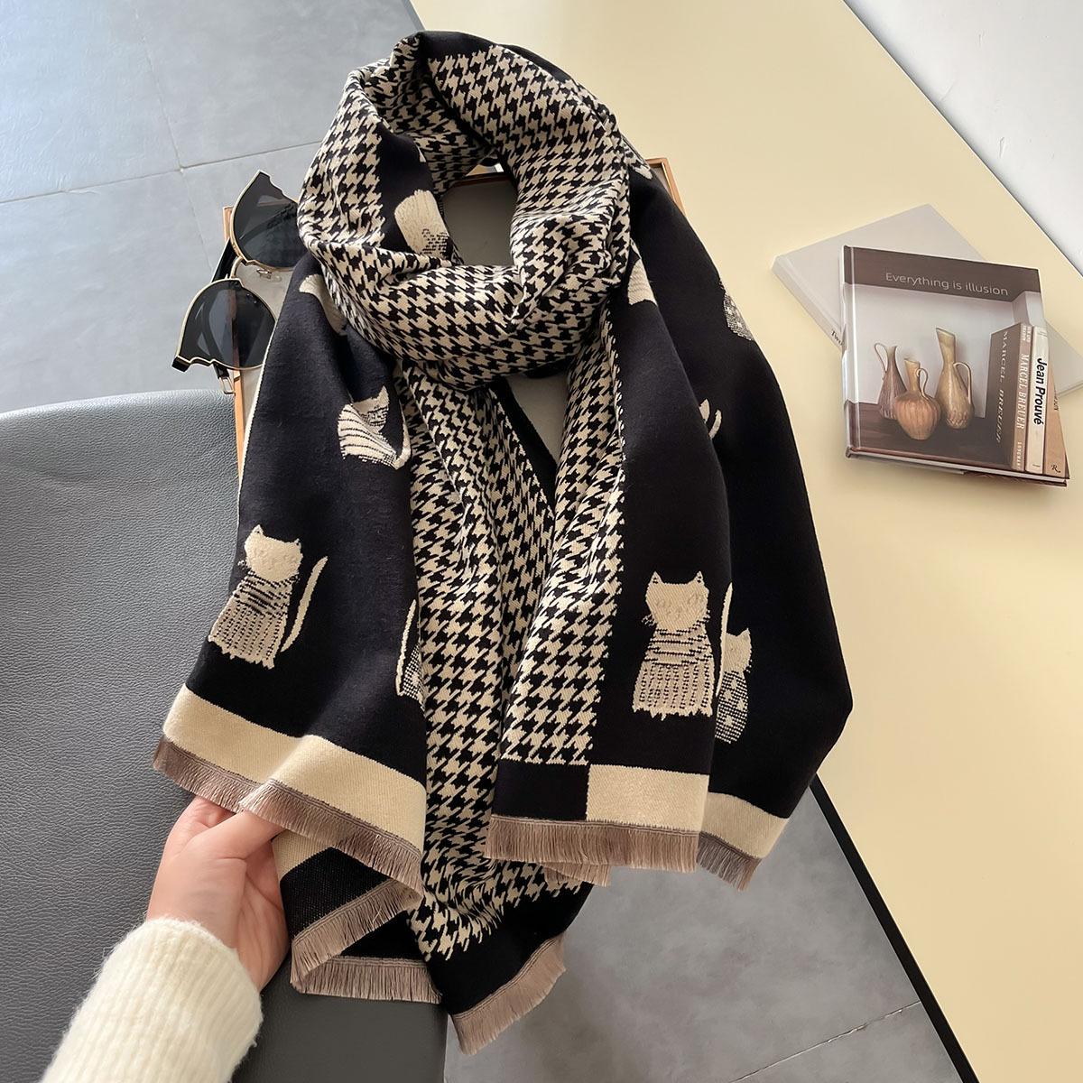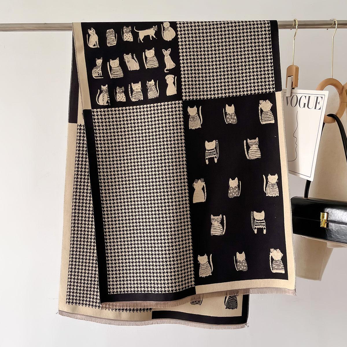 Bufanda de Otoño e Invierno estilo Coreano para Mujer Gato Cálida Combinable Engrosada Doble Uso Simple Elegante Chal Cortavientos para Viaje