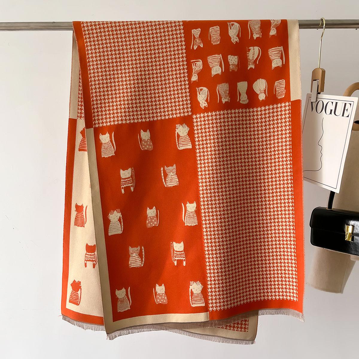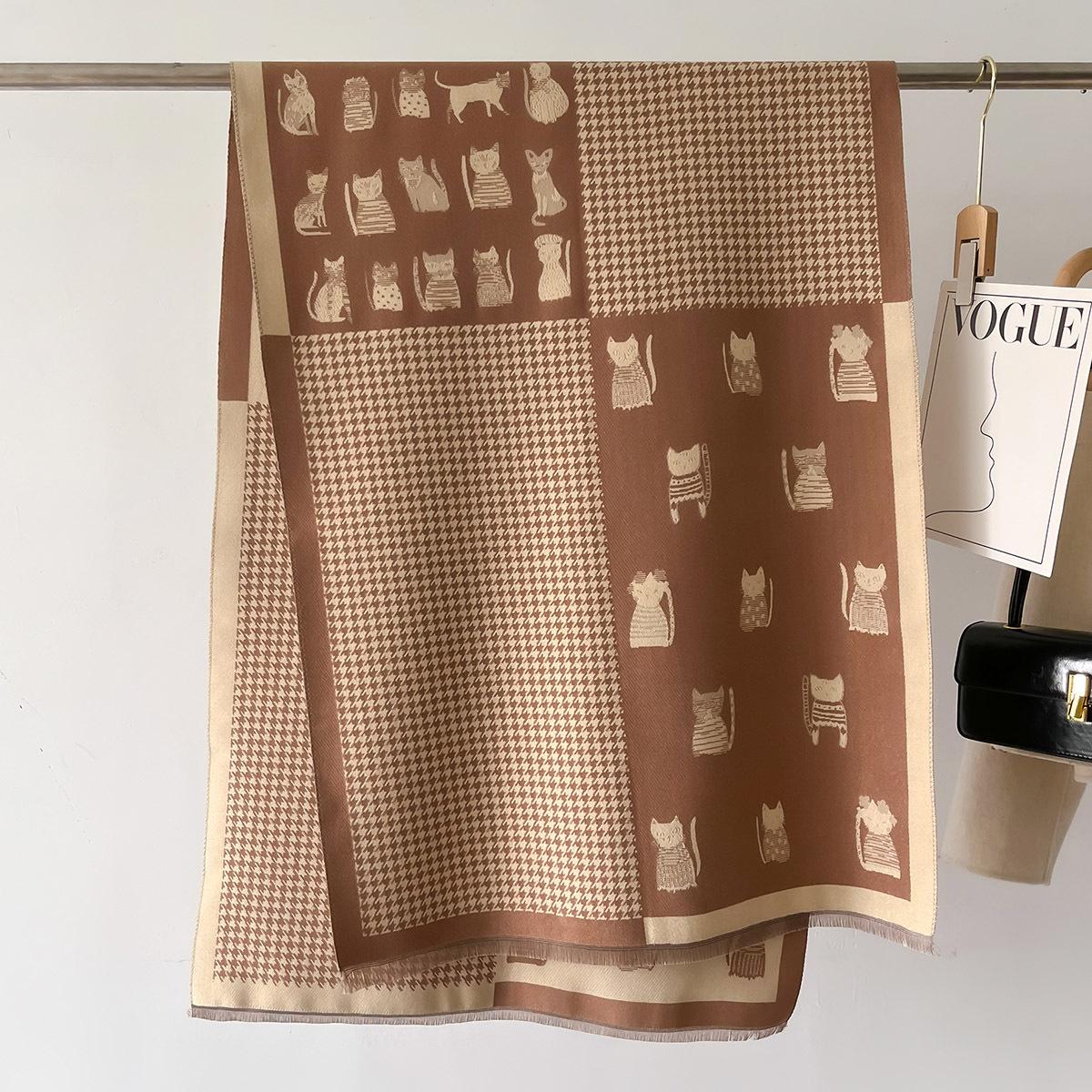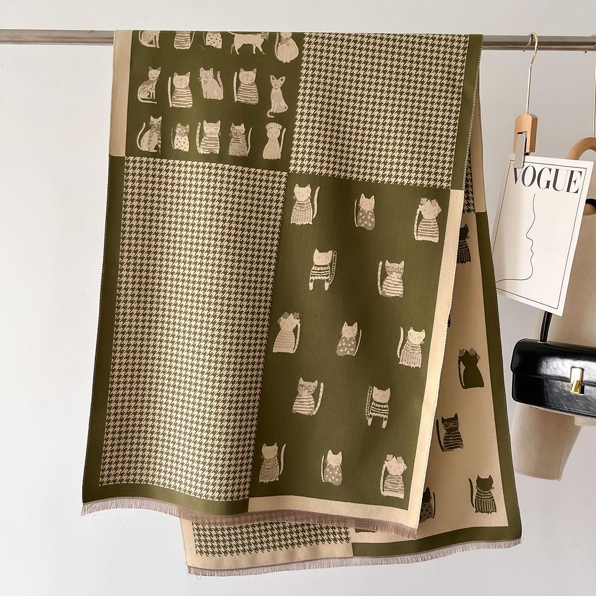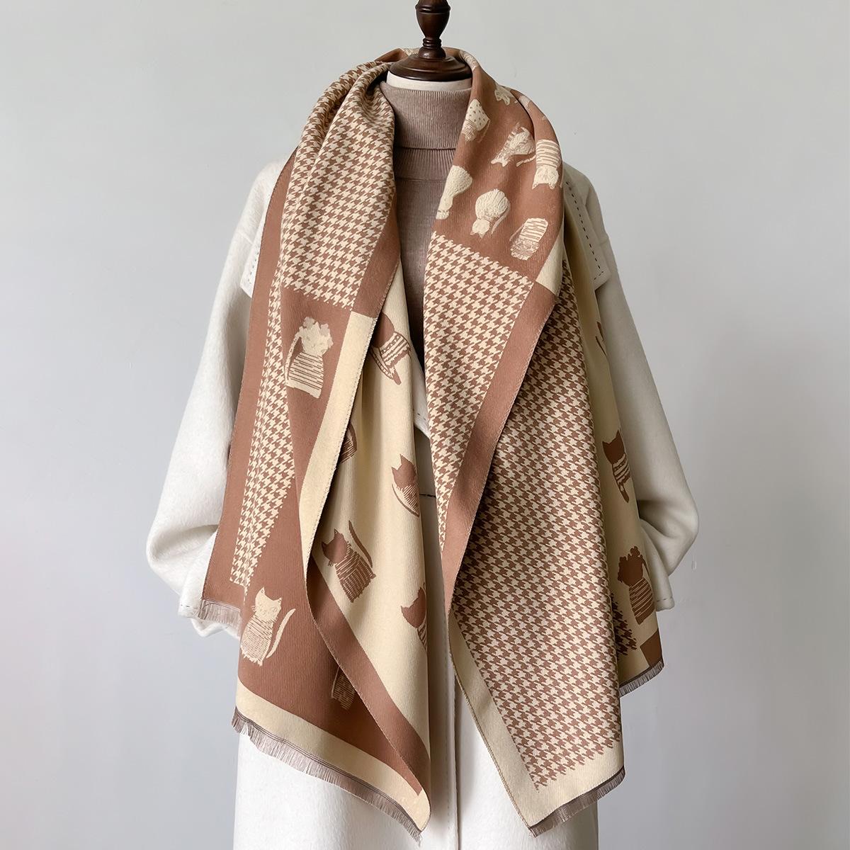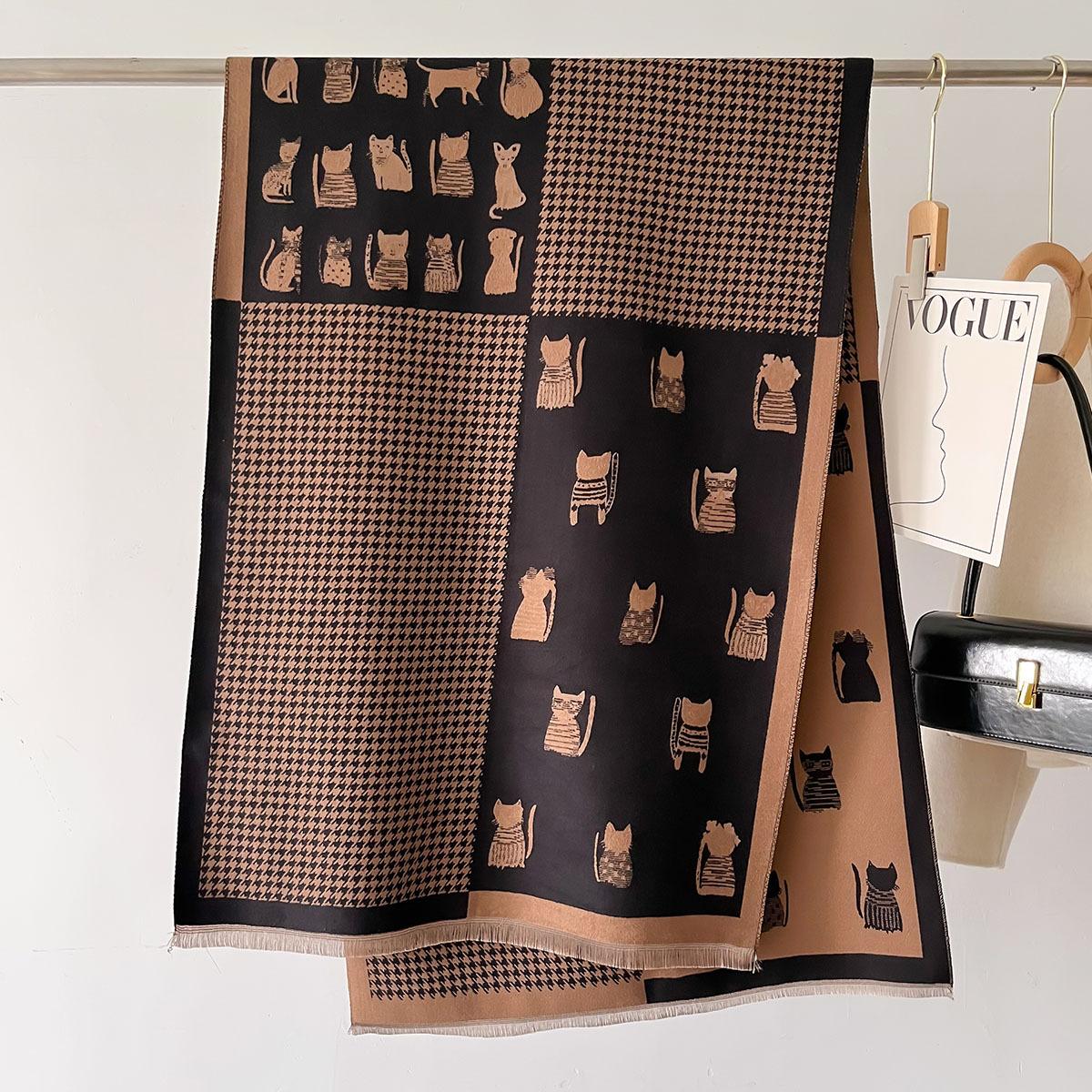 Bufanda de Otoño e Invierno estilo Coreano para Mujer Gato Cálida Combinable Engrosada Doble Uso Simple Elegante Chal Cortavientos para Viaje
