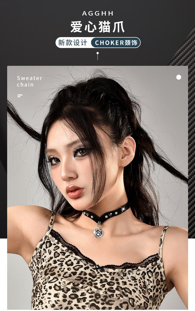 Gargantilla con remaches de cuero con forma de garra de gato punk de subcultura directa de fábrica, collar de cuero de amor, venta al por mayor