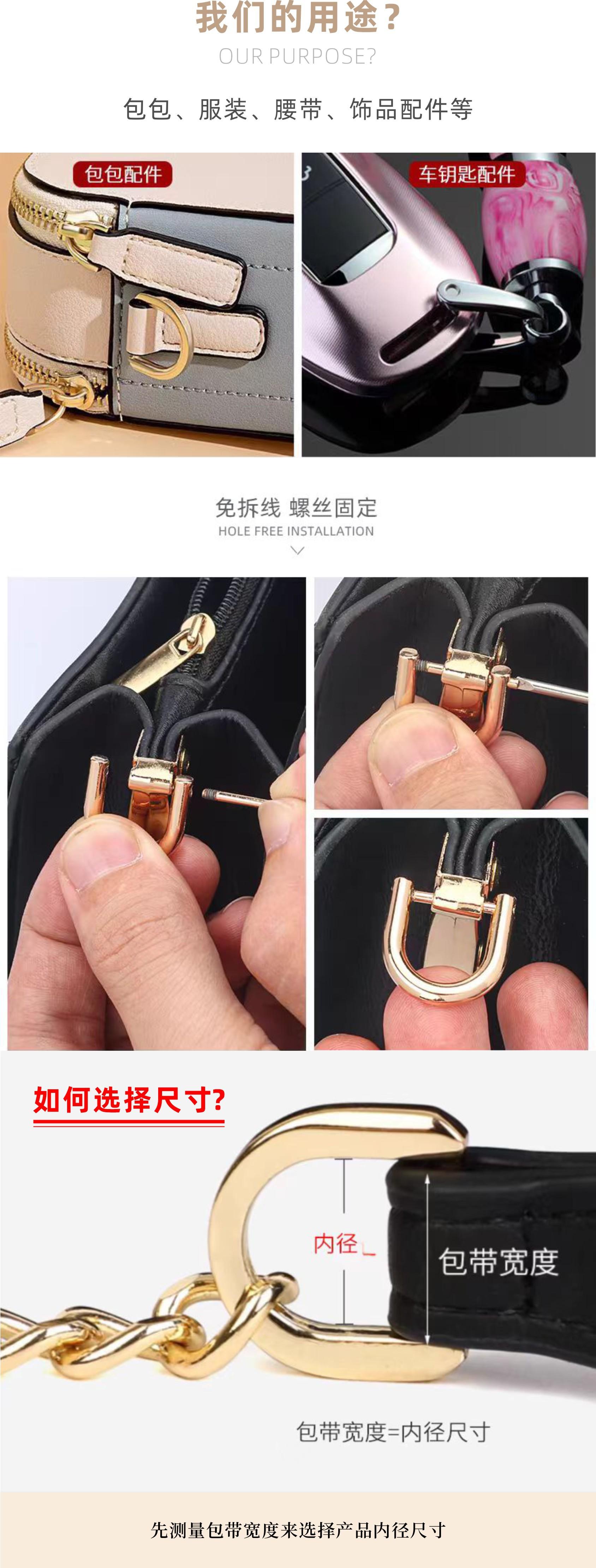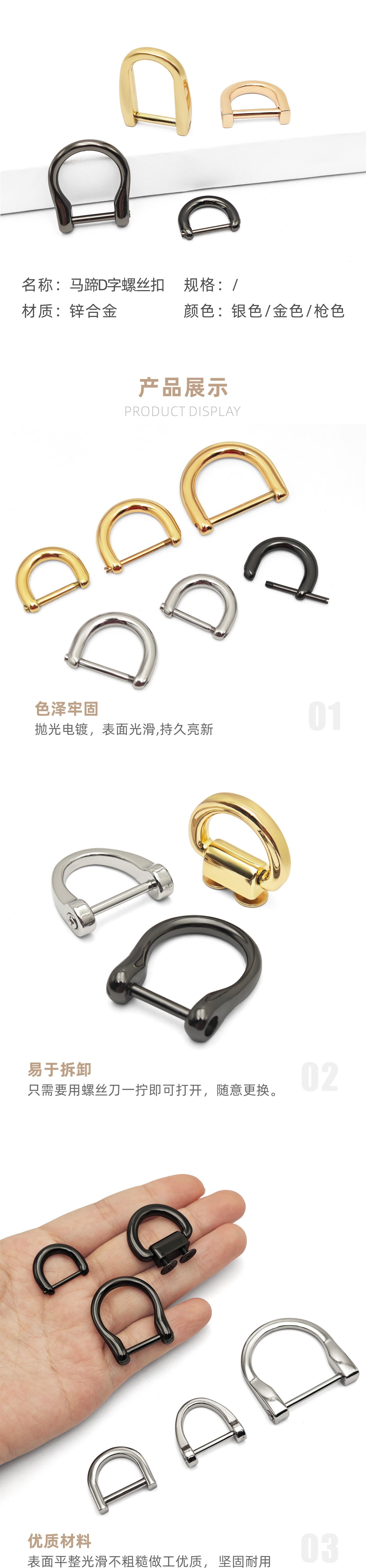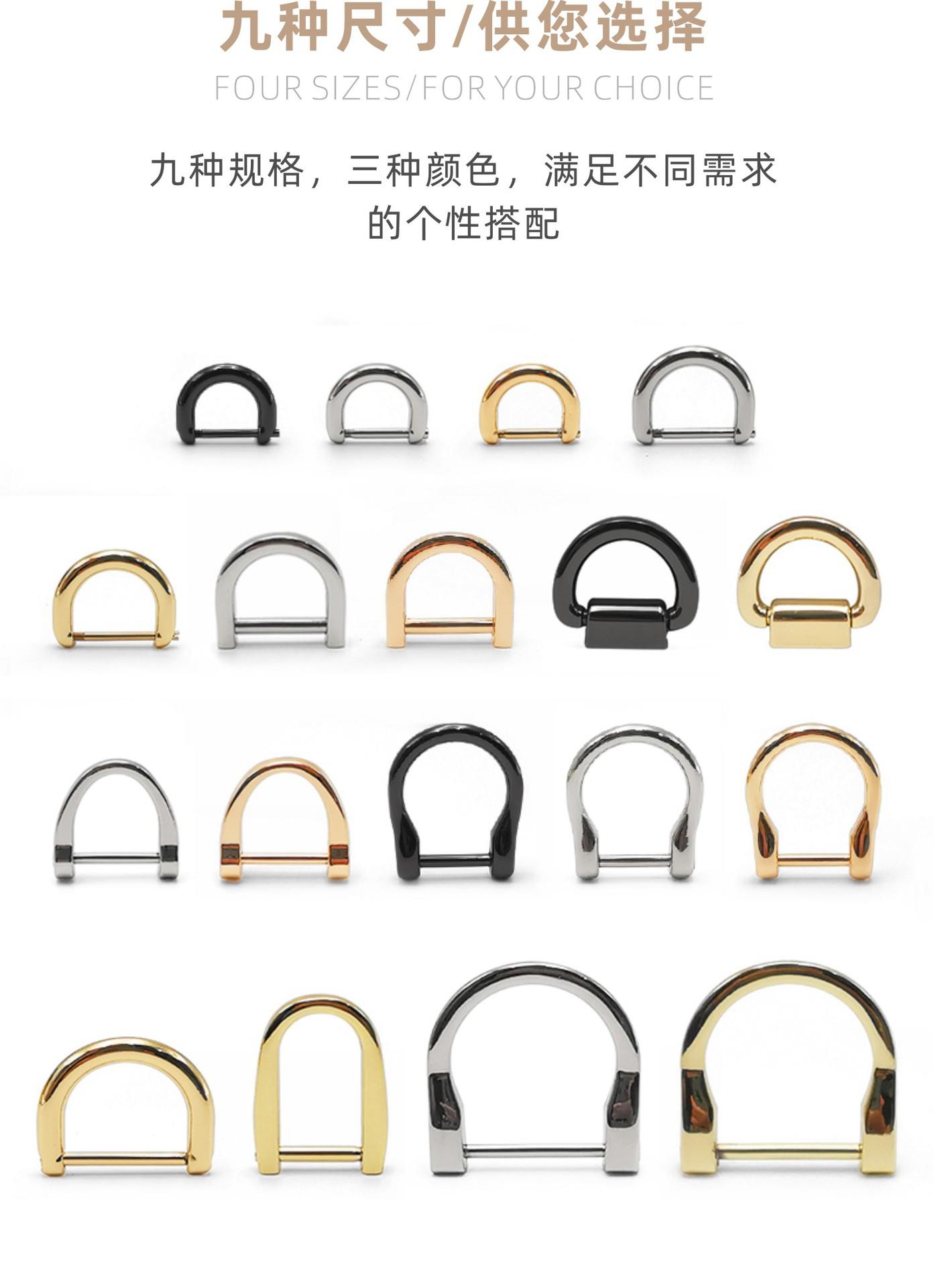 En stock mayoreo tornillo desmontable hebilla en D hebilla nariz de vaca tornillo metal hebilla herradura accesorios de ferretería para bolsos hebilla en U