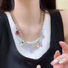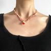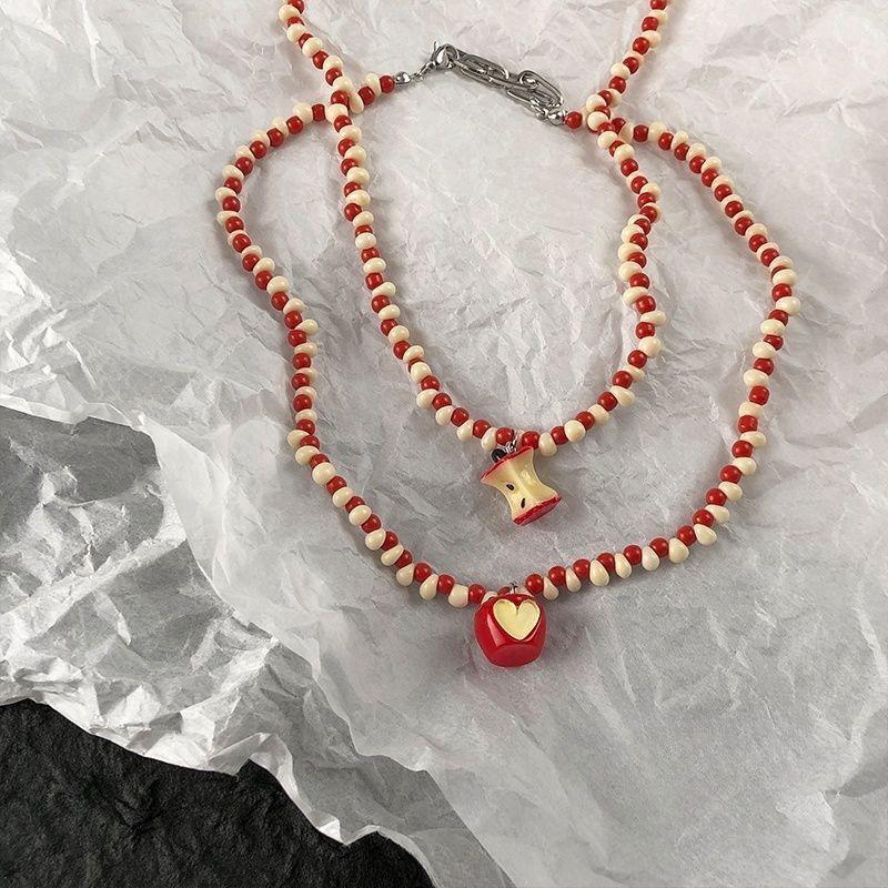 Collar de cuentas de arroz irregulares apiladas con cadena de clavícula y dibujos animados de corazón de manzana con gravedad de estilo coreano