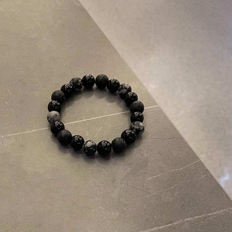 M812 [Golden Star Bracelet], M813 [Black Beaded Bracelet], M812+m813 gold star bracelet two-piece set