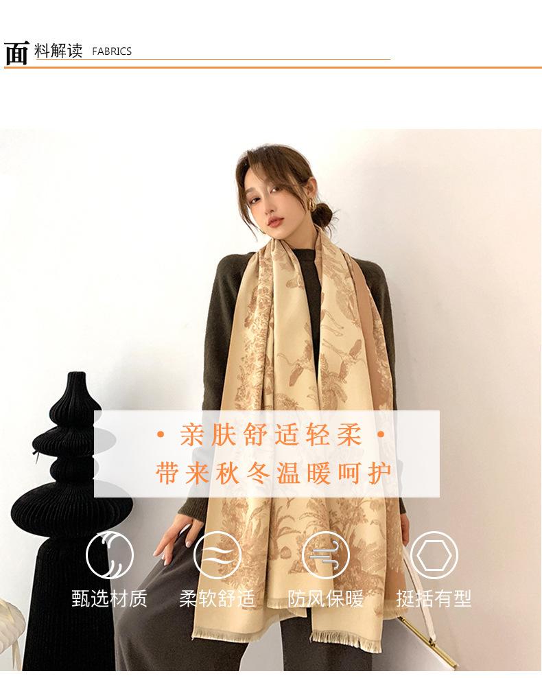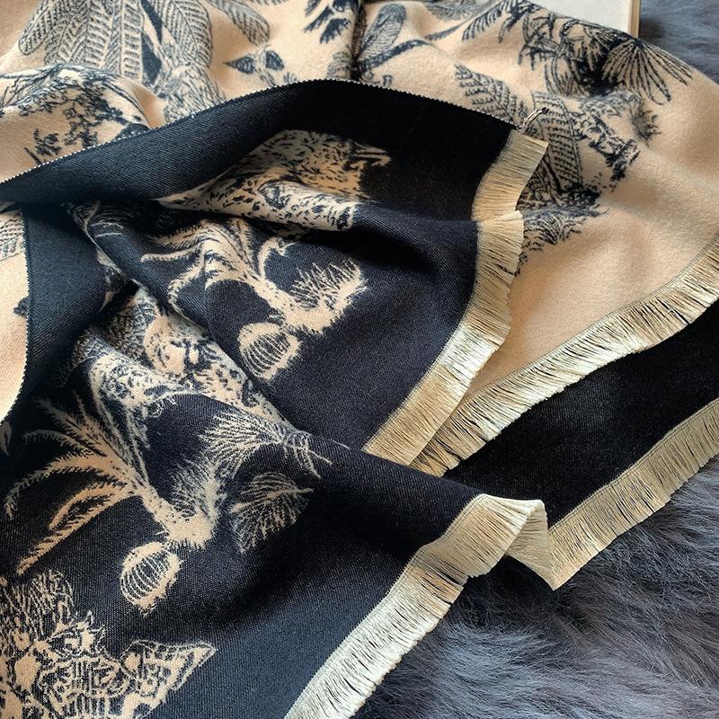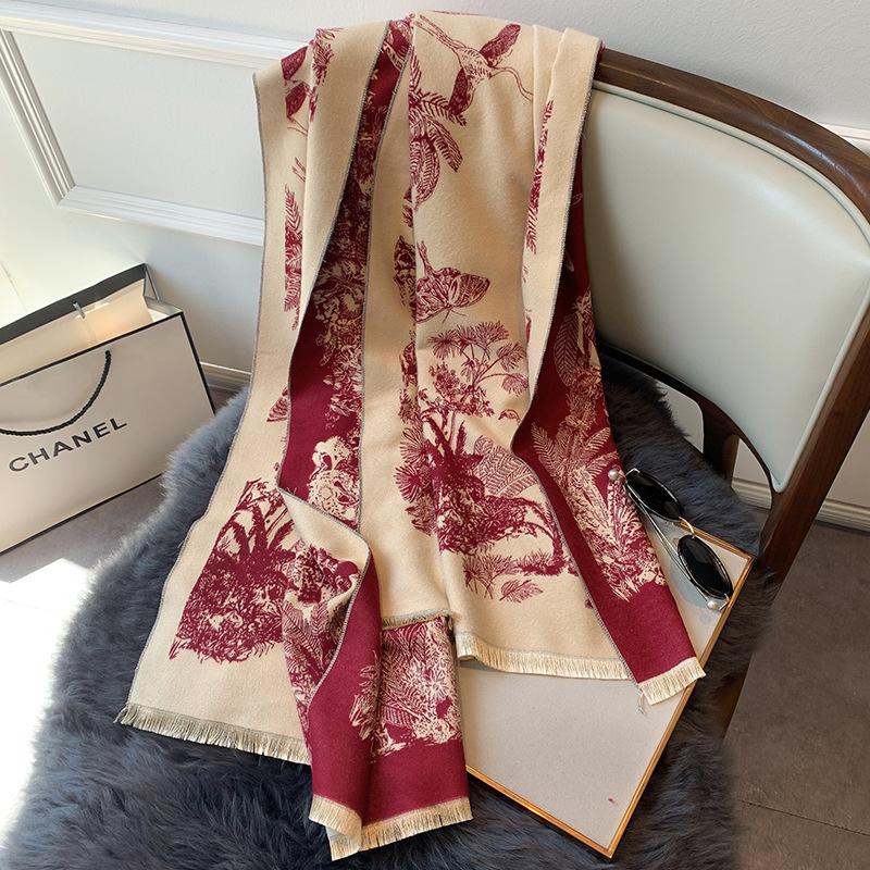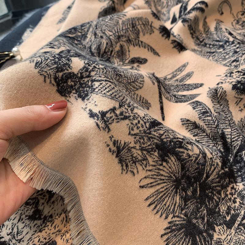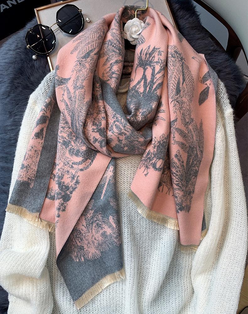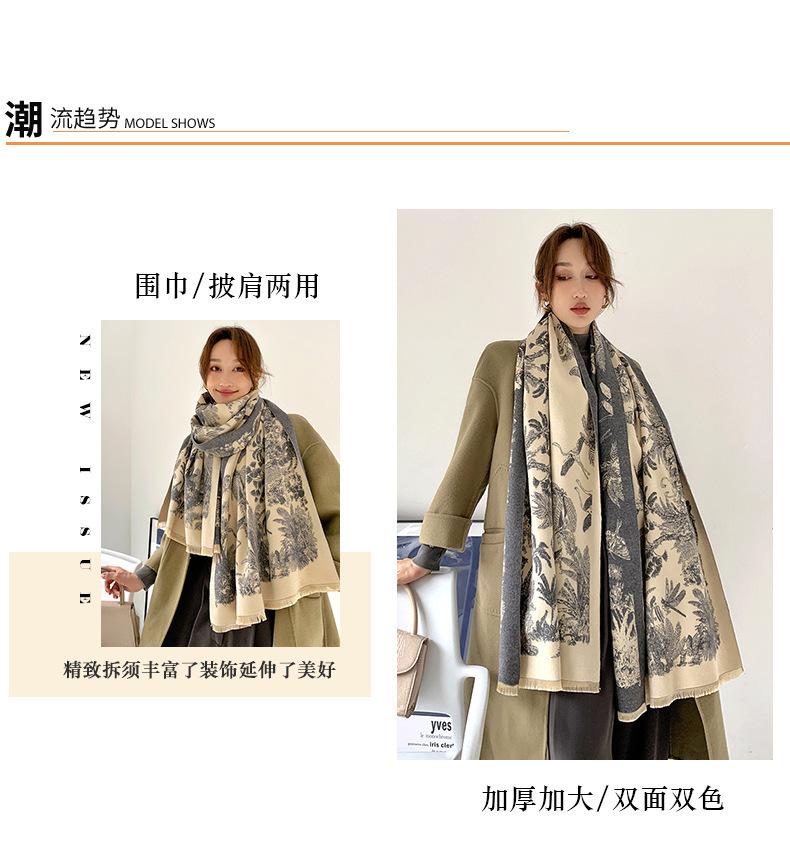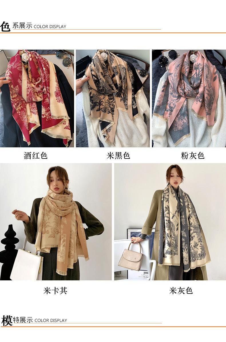 Chal de Oficina Jacquard Grueso de Otoño e Invierno Cálido para Mujer Flor Bufanda Larga de Imitación Cachemira Bufanda de Doble Cara