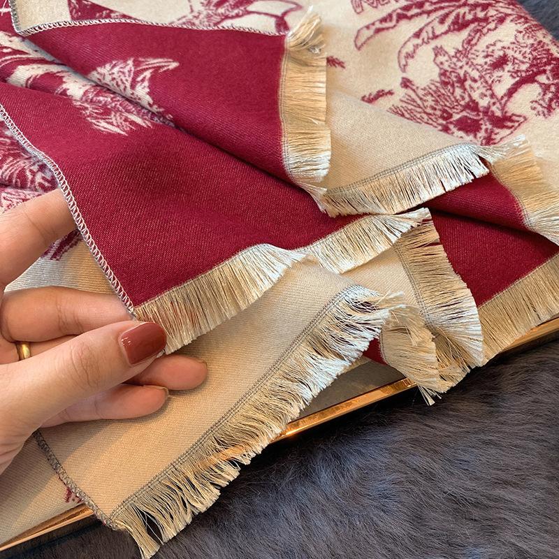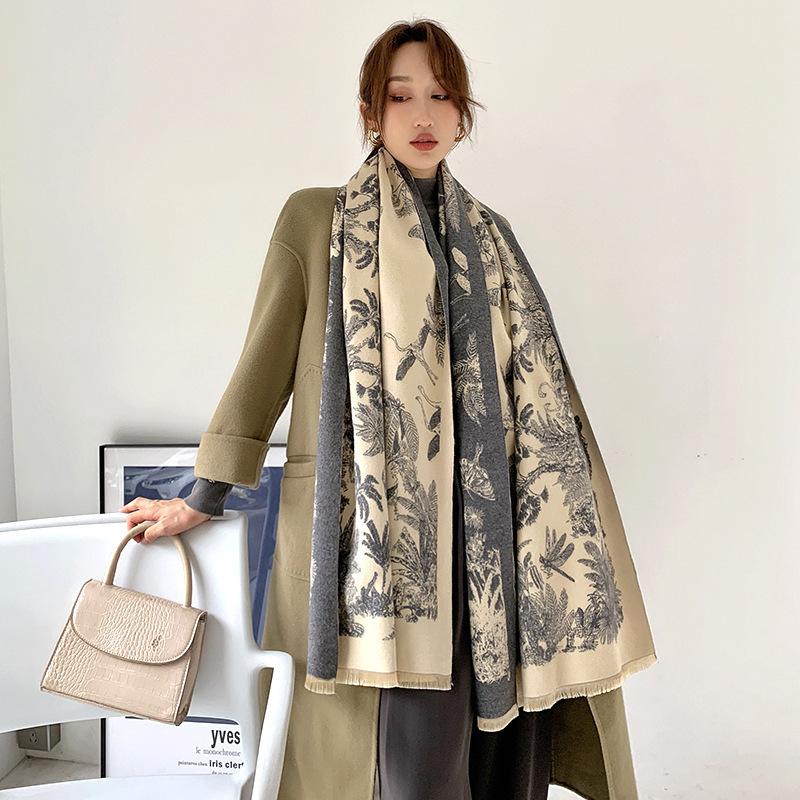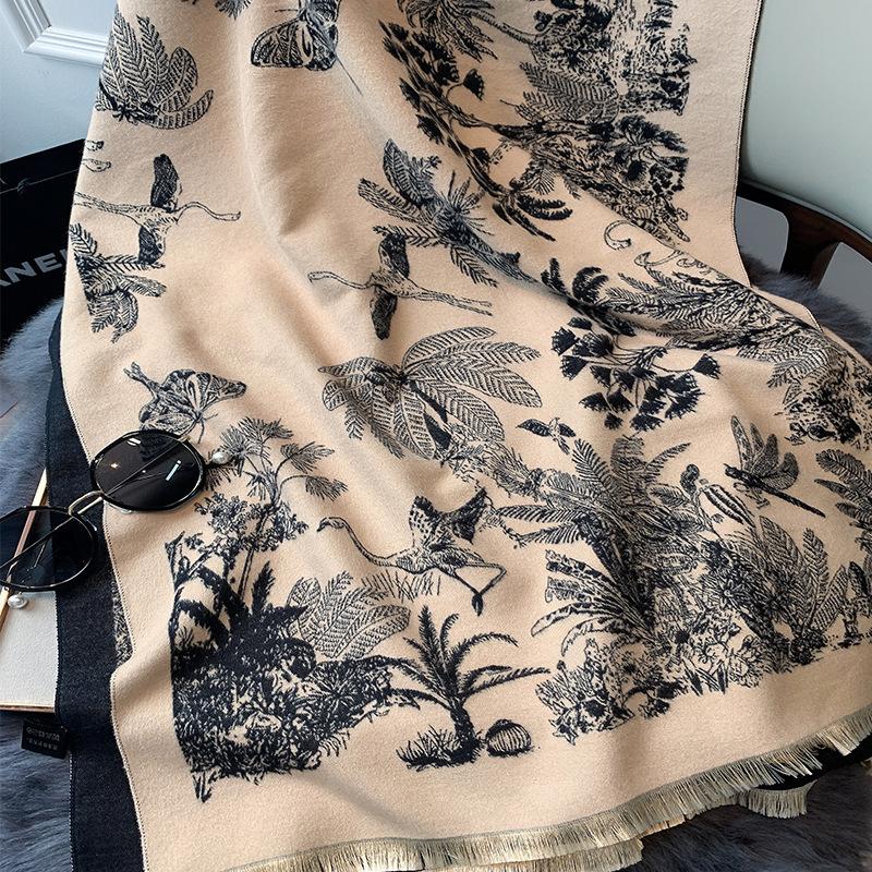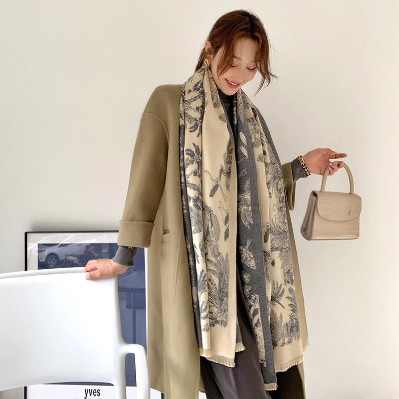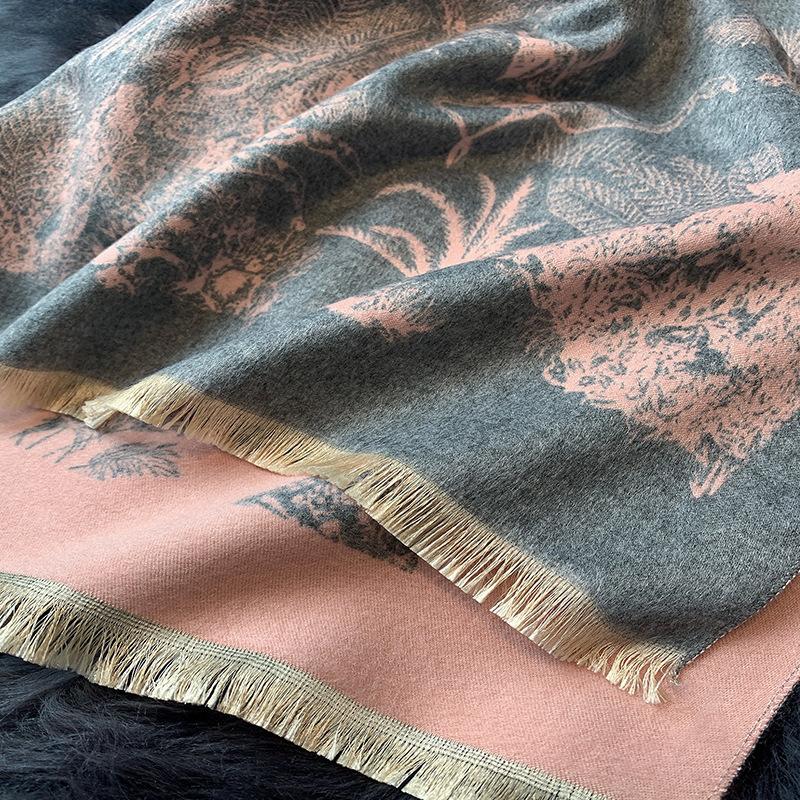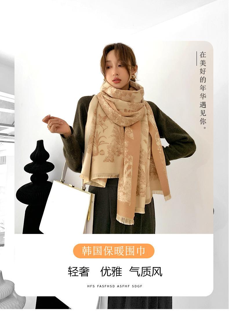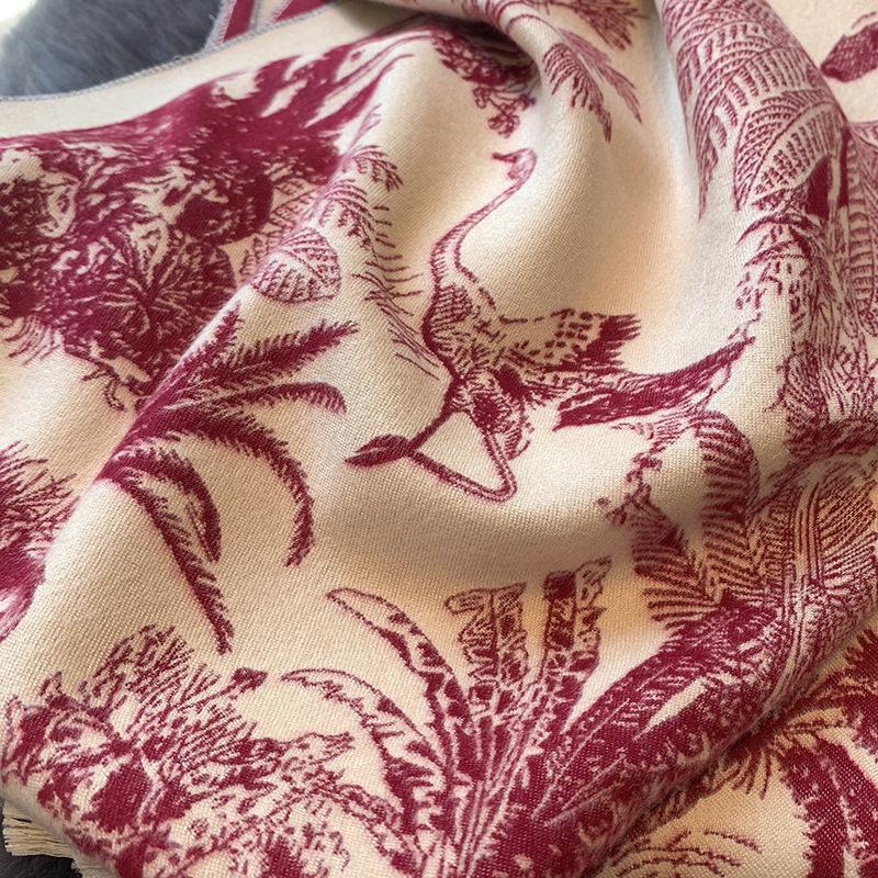 Chal de Oficina Jacquard Grueso de Otoño e Invierno Cálido para Mujer Flor Bufanda Larga de Imitación Cachemira Bufanda de Doble Cara