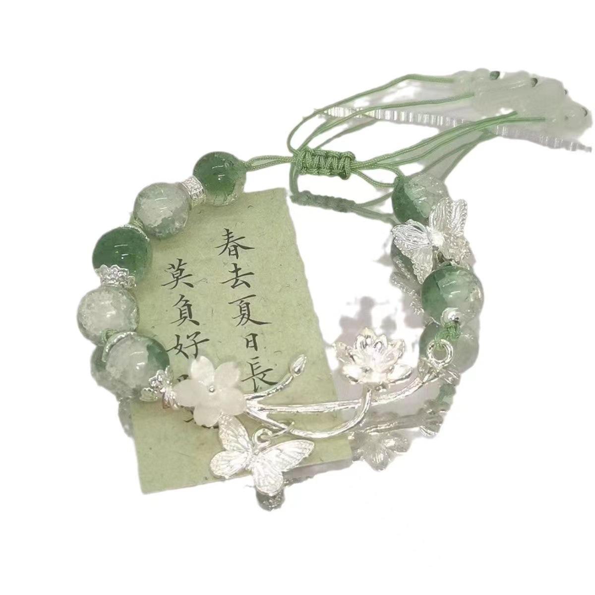 Nueva pulsera Qingqing Zijin china antigua verde fresca, pulsera de estilo nacional retro, diseño de nicho con diseño de mariposa