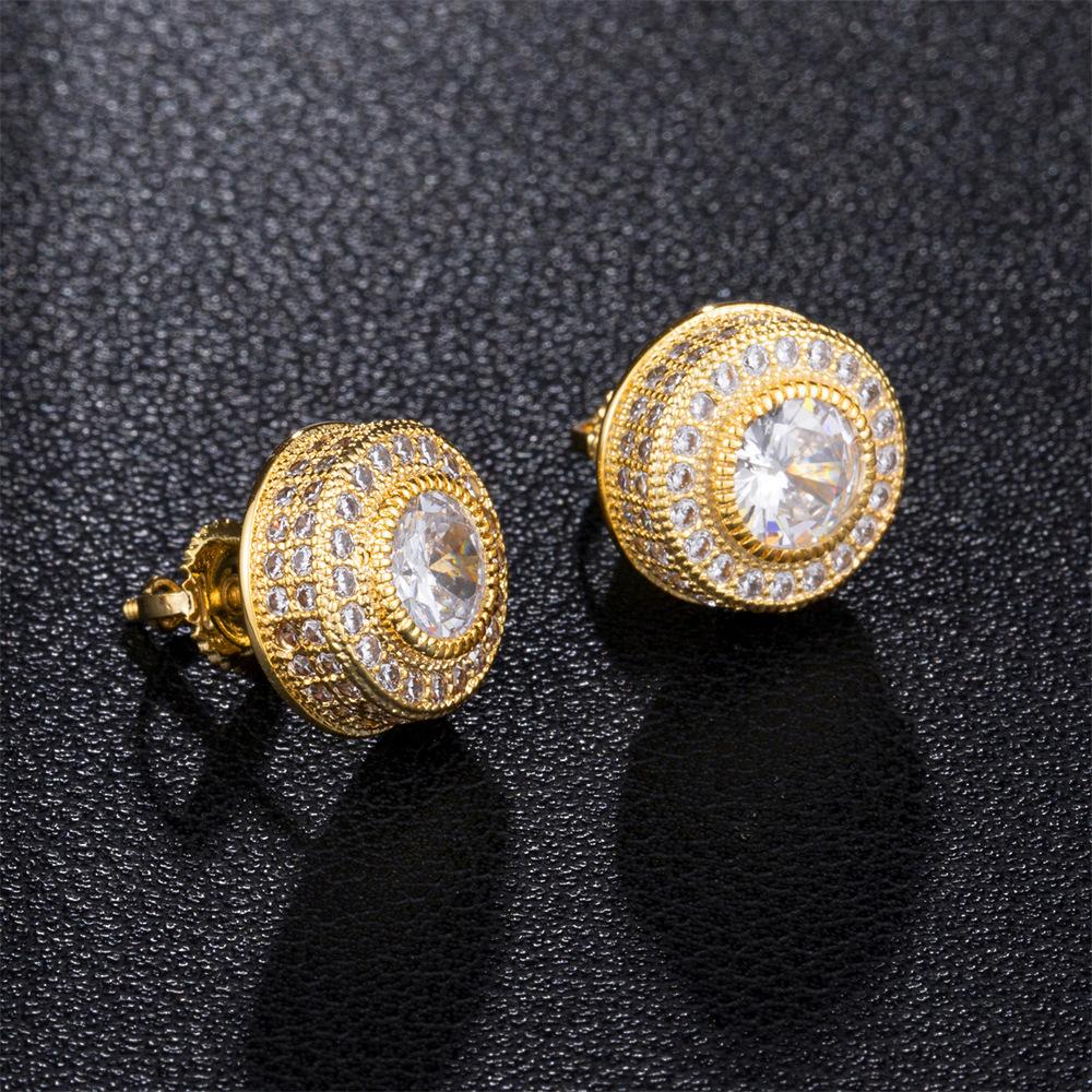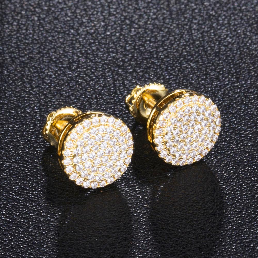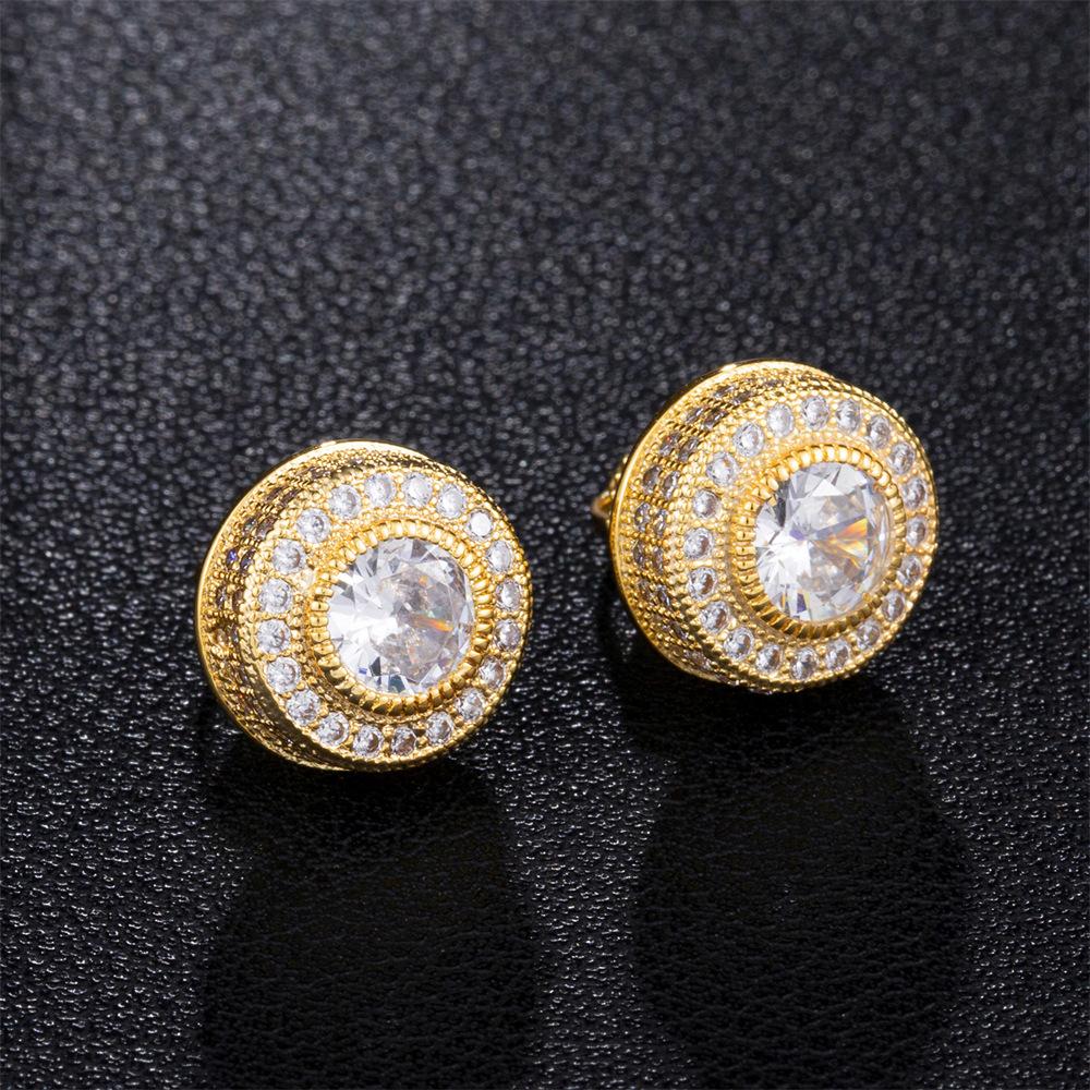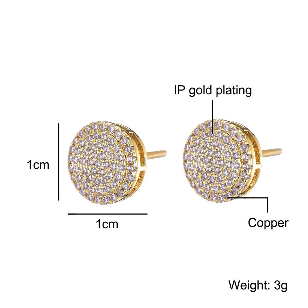 Aretes de Personalidad Europea y Americana con Diamantes Completos Aretes de Diamantes Redondos Simples Estilo Hip-Hop Cobre Chapado en Oro Aretes de Tendencia de Moda