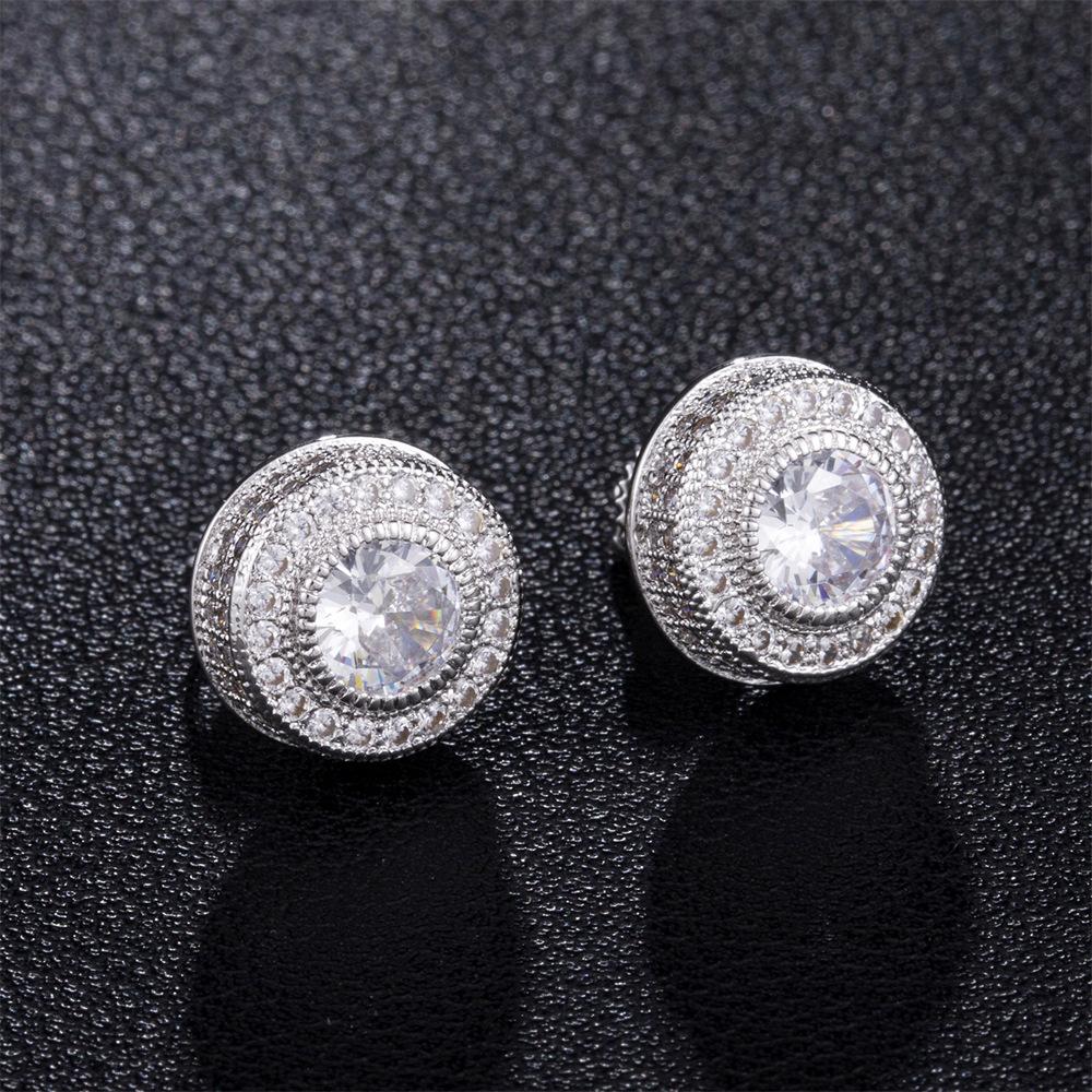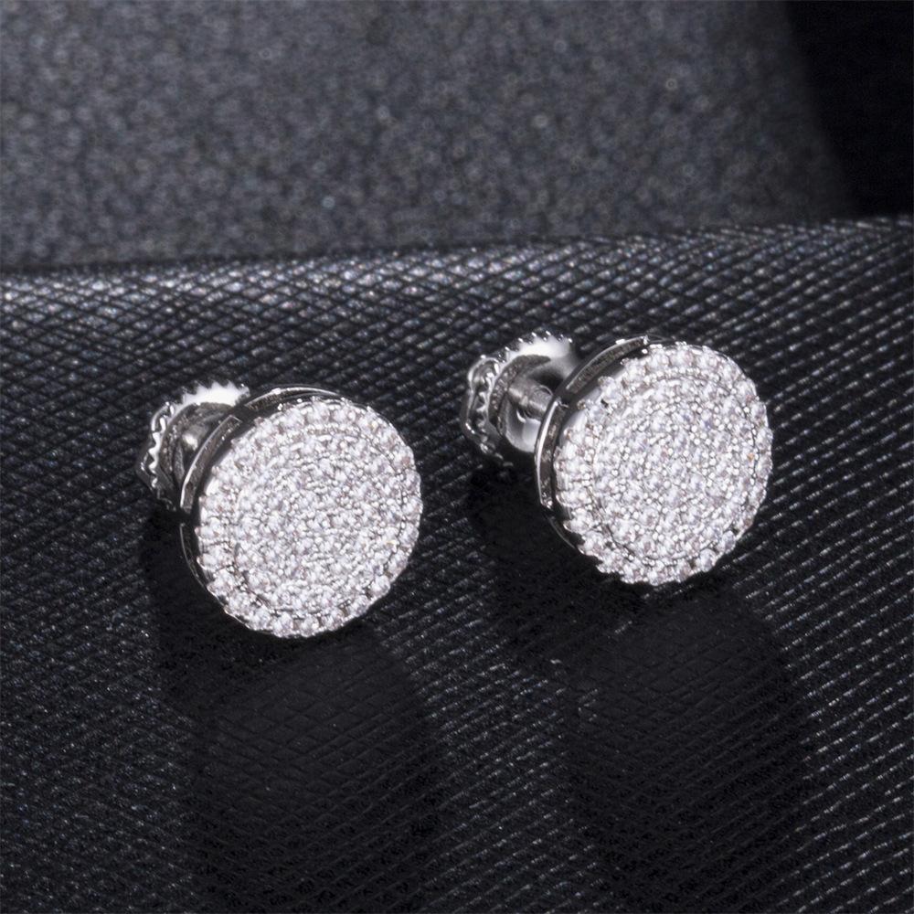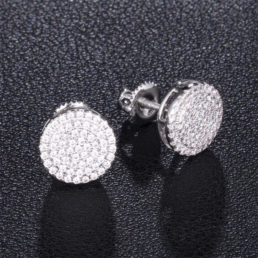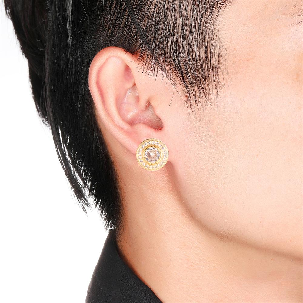 Aretes de Personalidad Europea y Americana con Diamantes Completos Aretes de Diamantes Redondos Simples Estilo Hip-Hop Cobre Chapado en Oro Aretes de Tendencia de Moda