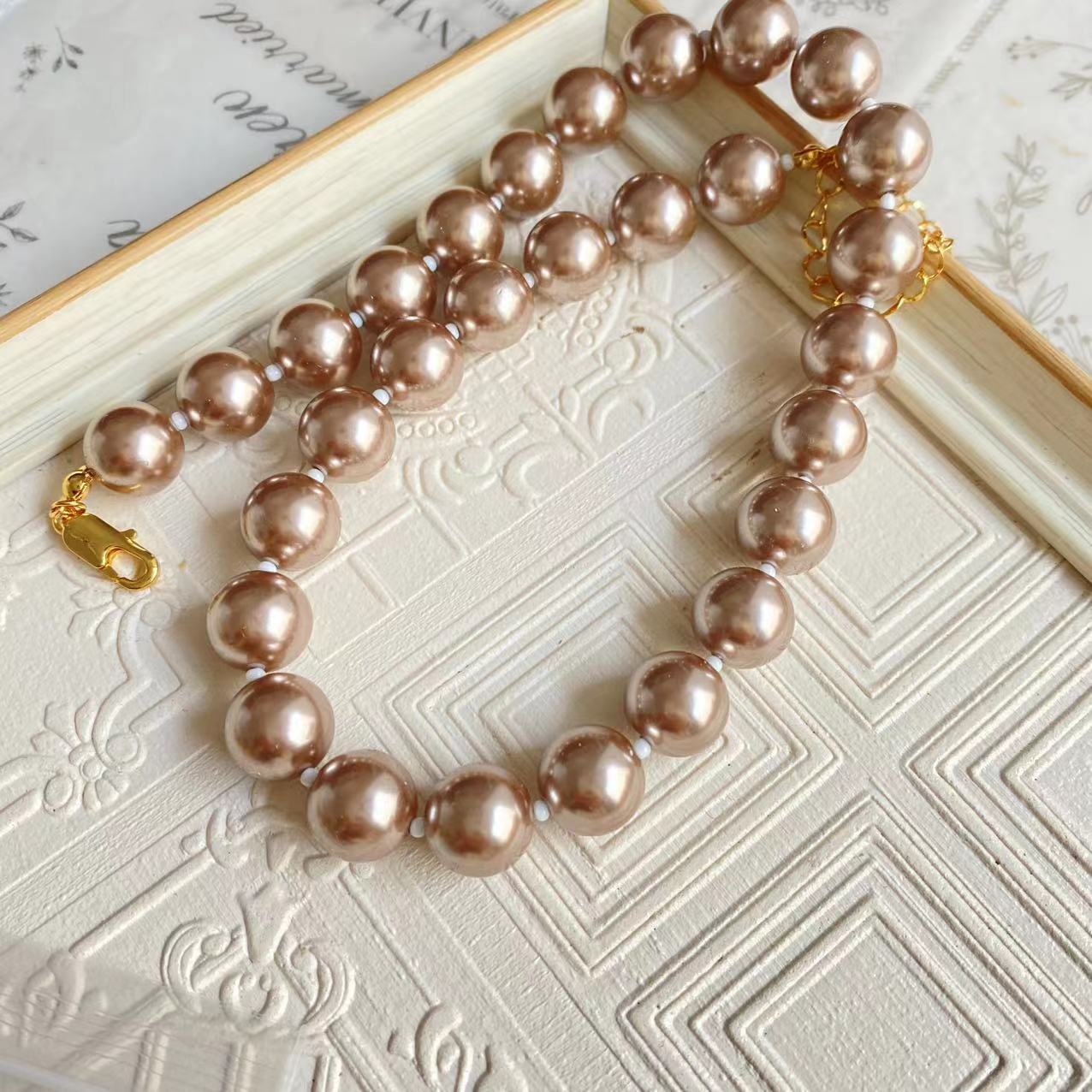 Collar de perlas de vidrio retro estilo corte francés púrpura de alta calidad ambiente simple y moderno