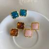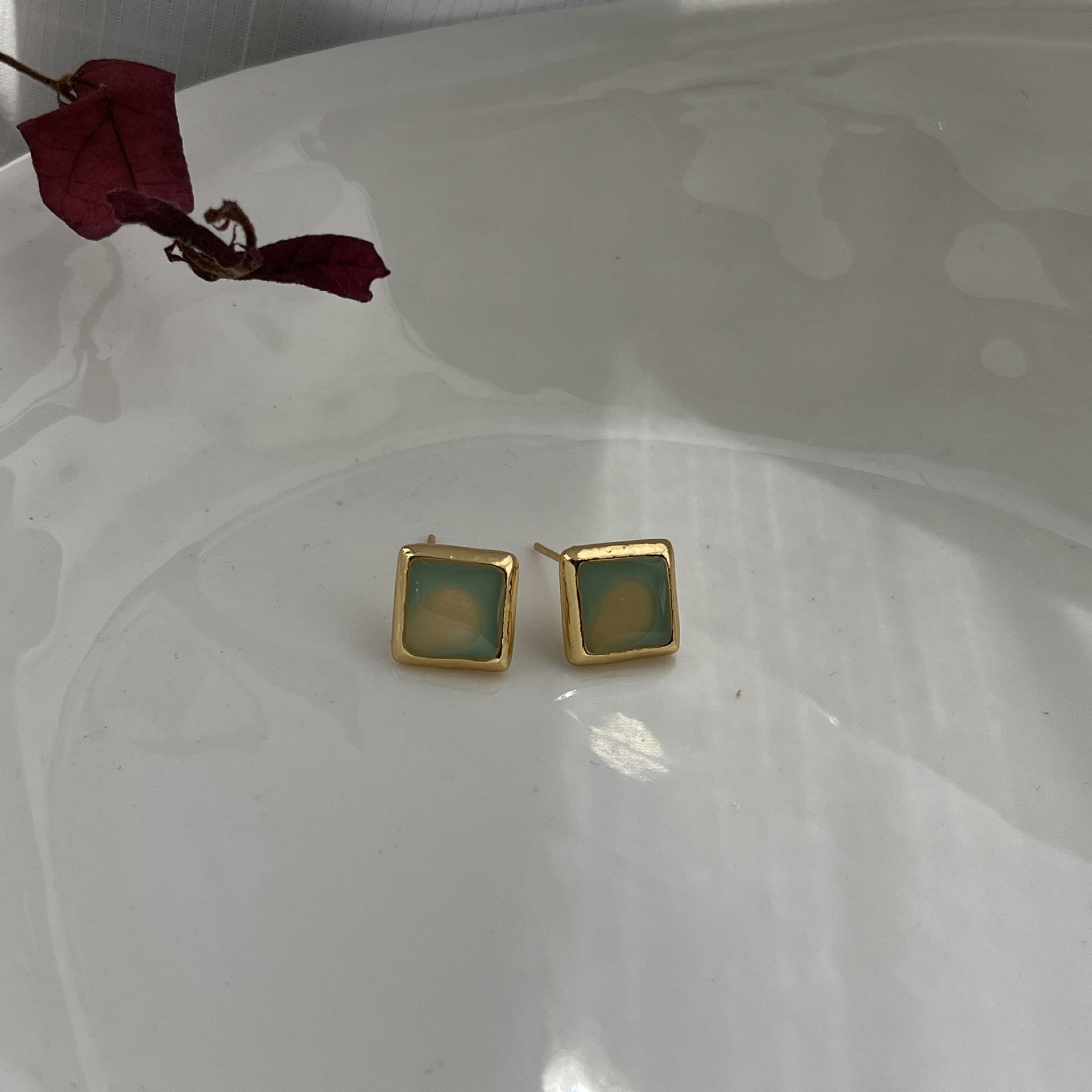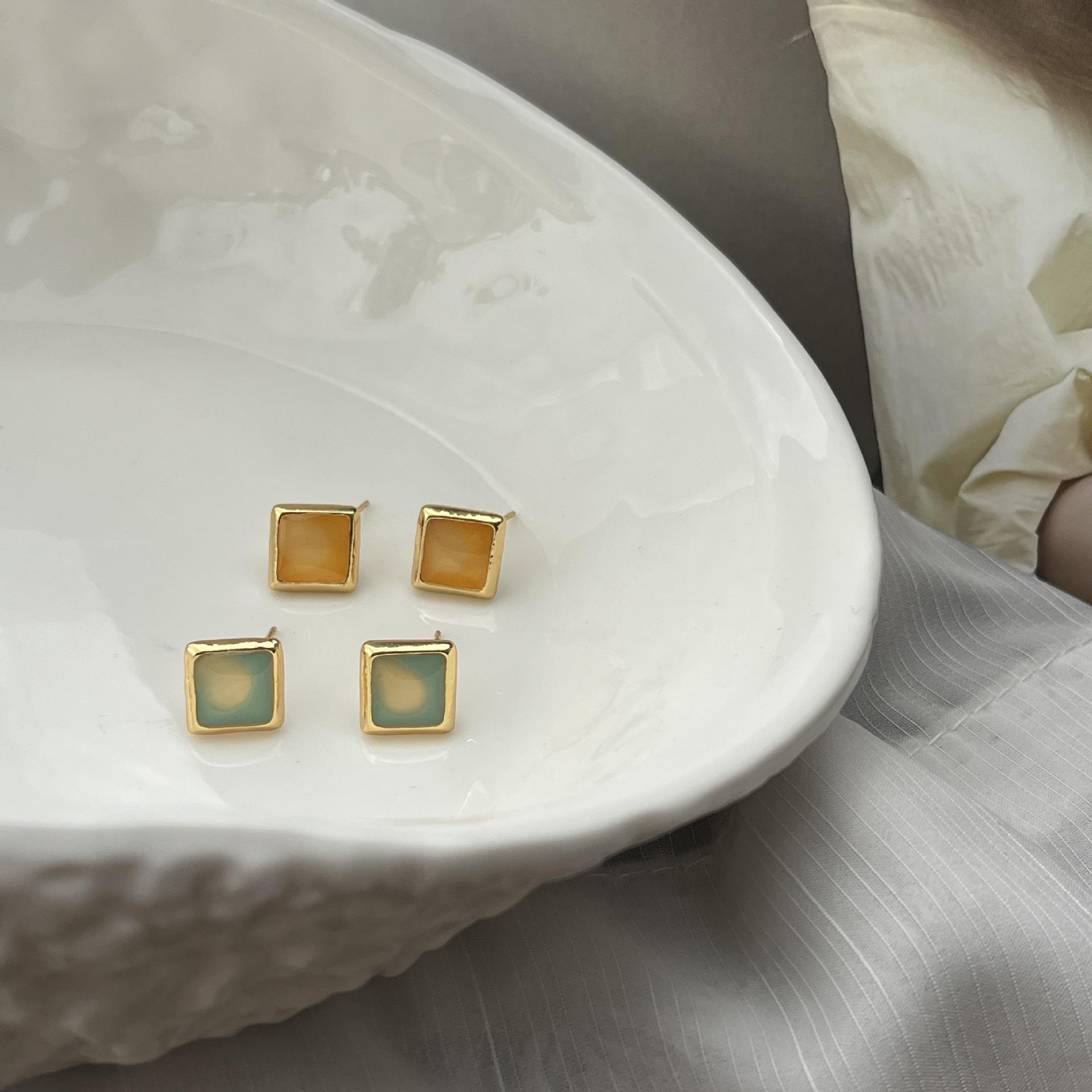 Aretes Exquisitos Cuadrados Geométricos de Moda Coreana, Diseño Simple y Elegante, Aretes de Metal para Mujer con Efecto Único de Gota de Aceite