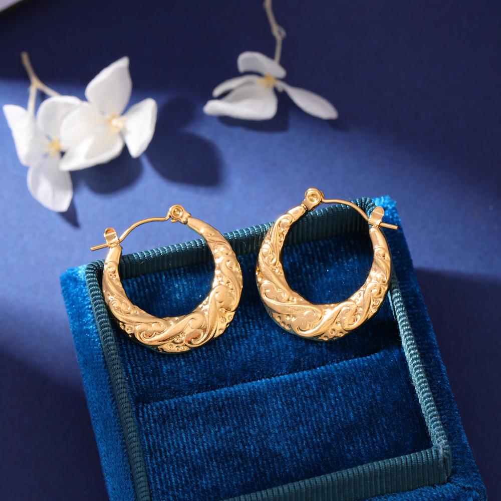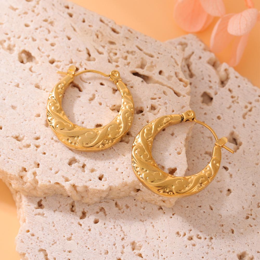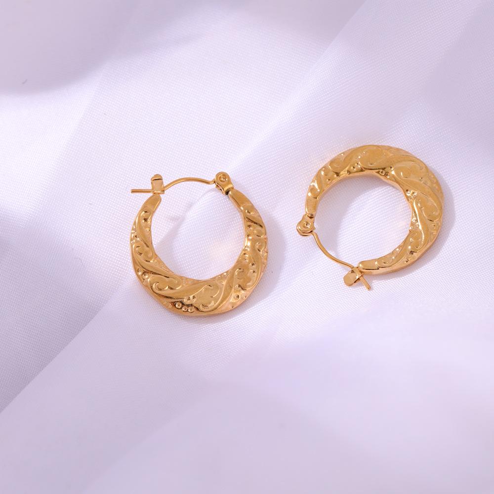 Pendientes de acero inoxidable de alta calidad con presión de aceite para damas, de estilo retro europeo y americano, venta al por mayor
