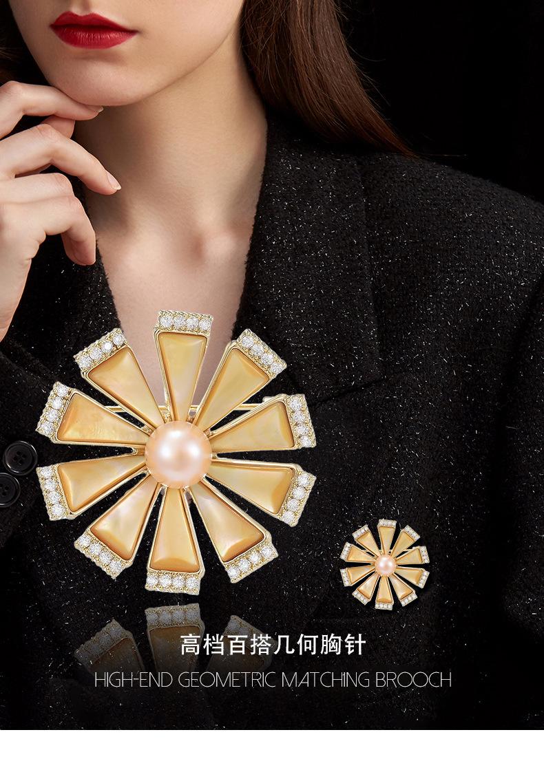 Broche geométrico de perlas de moda simple para mujer, broche de flor de fritilaria natural exquisita de alta gama, accesorios al por mayor