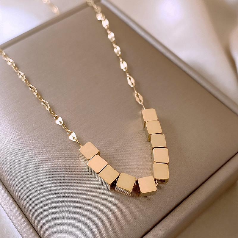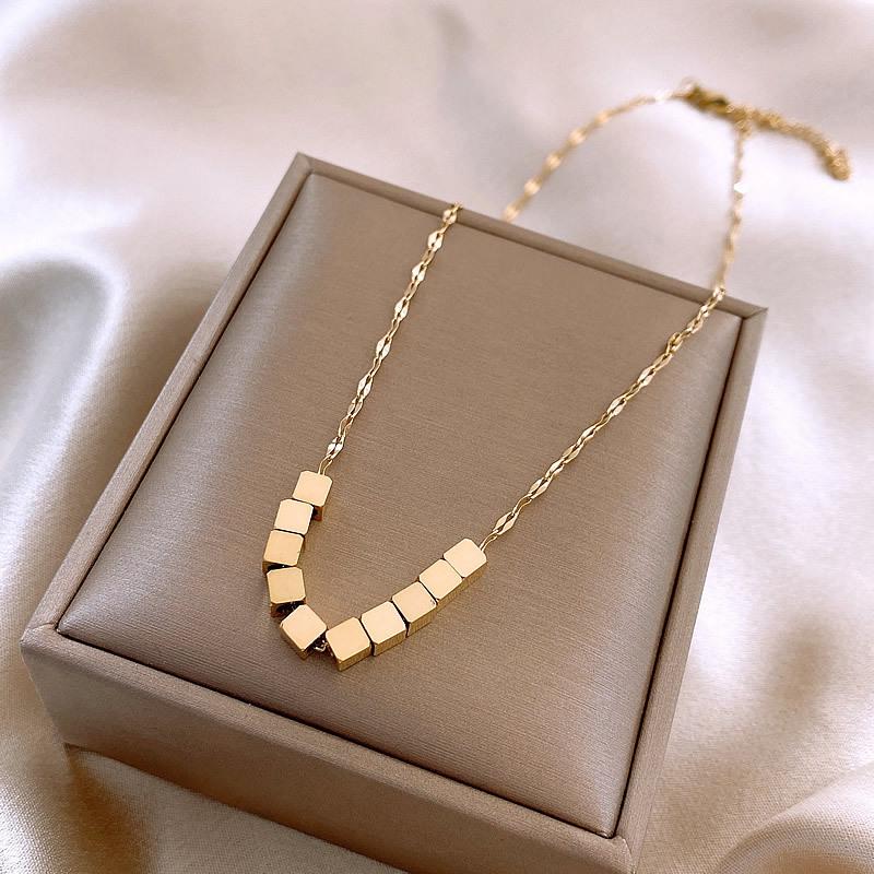 Collar de acero de titanio cuadrado dorado, estilo nicho, estilo europeo y americano, ligero, de lujo, con cadena de clavícula de alta calidad, elegante y a la moda, al por mayor.