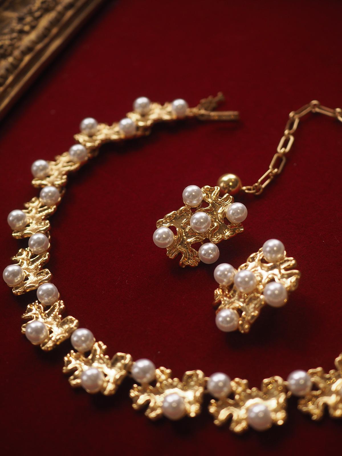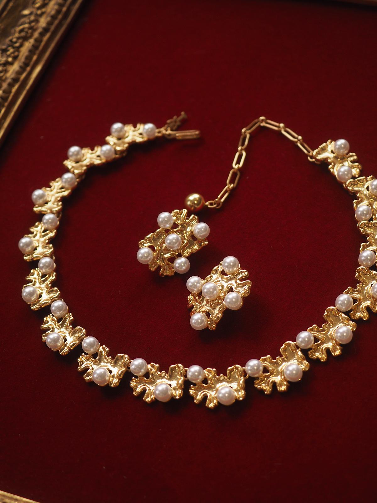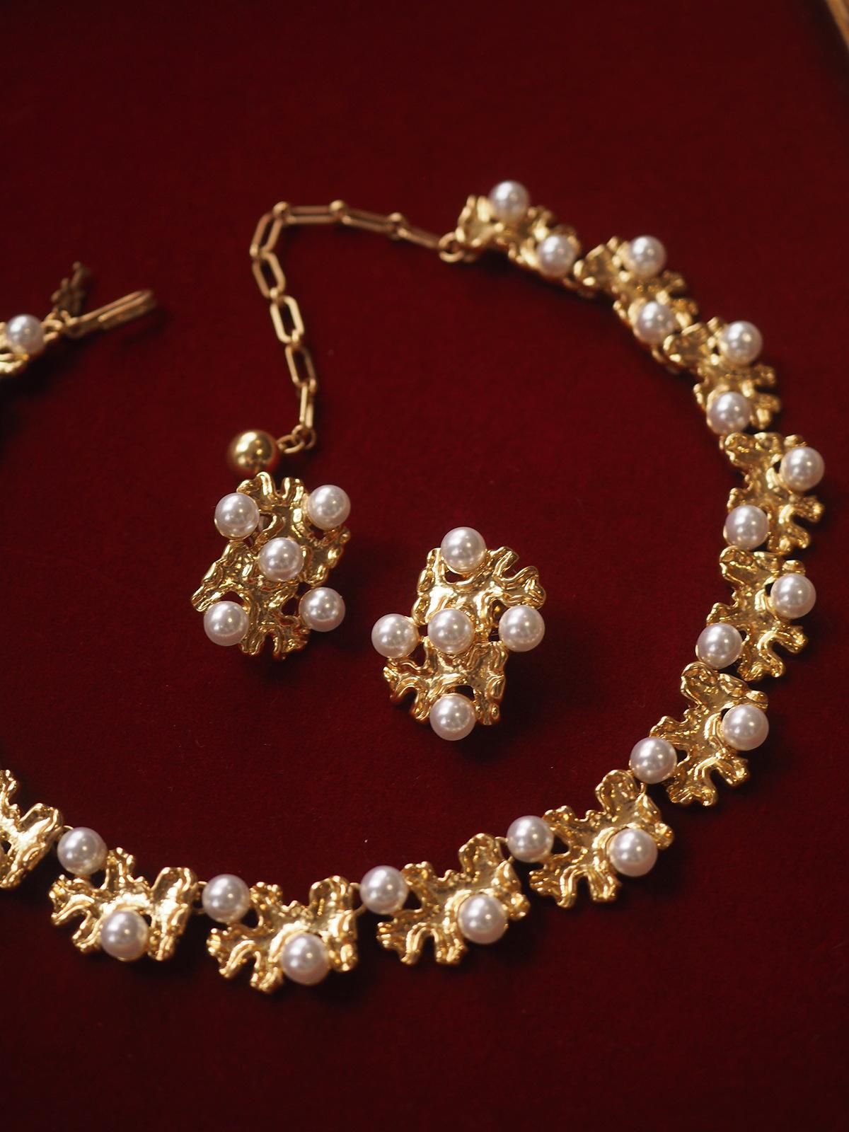 Pendientes de clip retro con perlas de lava, estilo Cuifali Trifari, estilo antiguo medio vintage