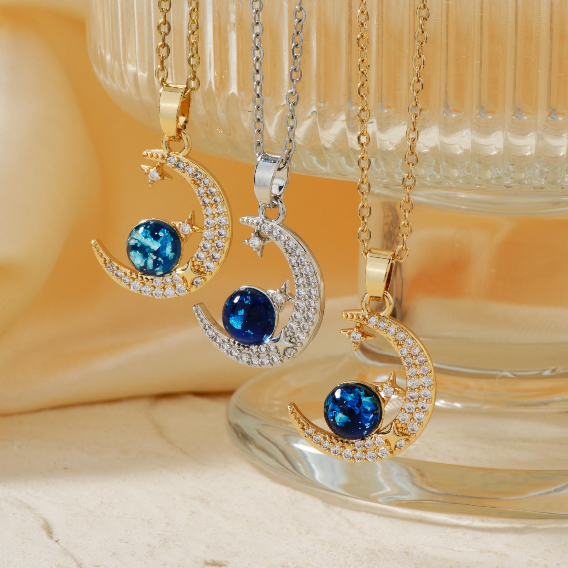 Compra Collar de lujo elegante y hermoso con microincrustaciones de circonitas, cadena de clavícula combinable para mujer, con diseño de planeta luna y luz que no se cae. al por mayor en Joom.pro