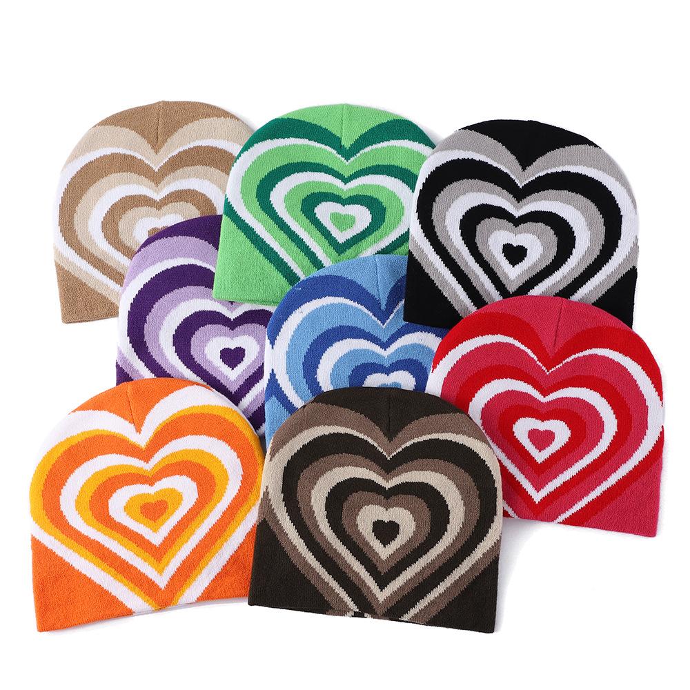 Gorro de punto de otoño e invierno europeo y americano, gorro de lana creativo de amor a la moda para hombre, gorro de jersey cálido y transpirable a prueba de frío para mujer, venta al por mayor