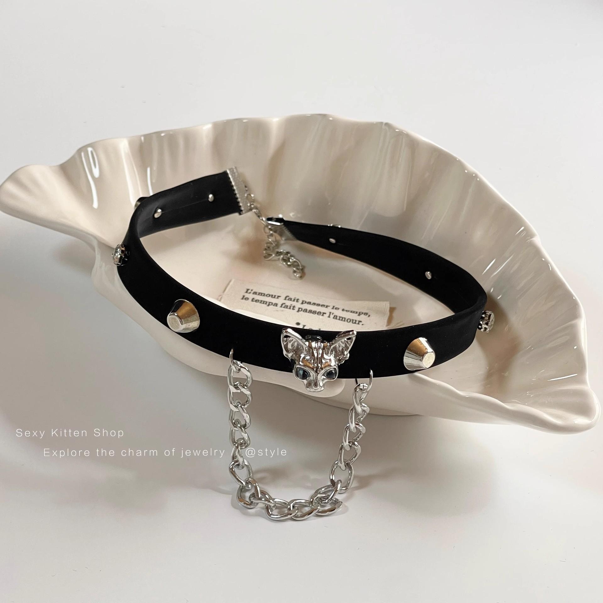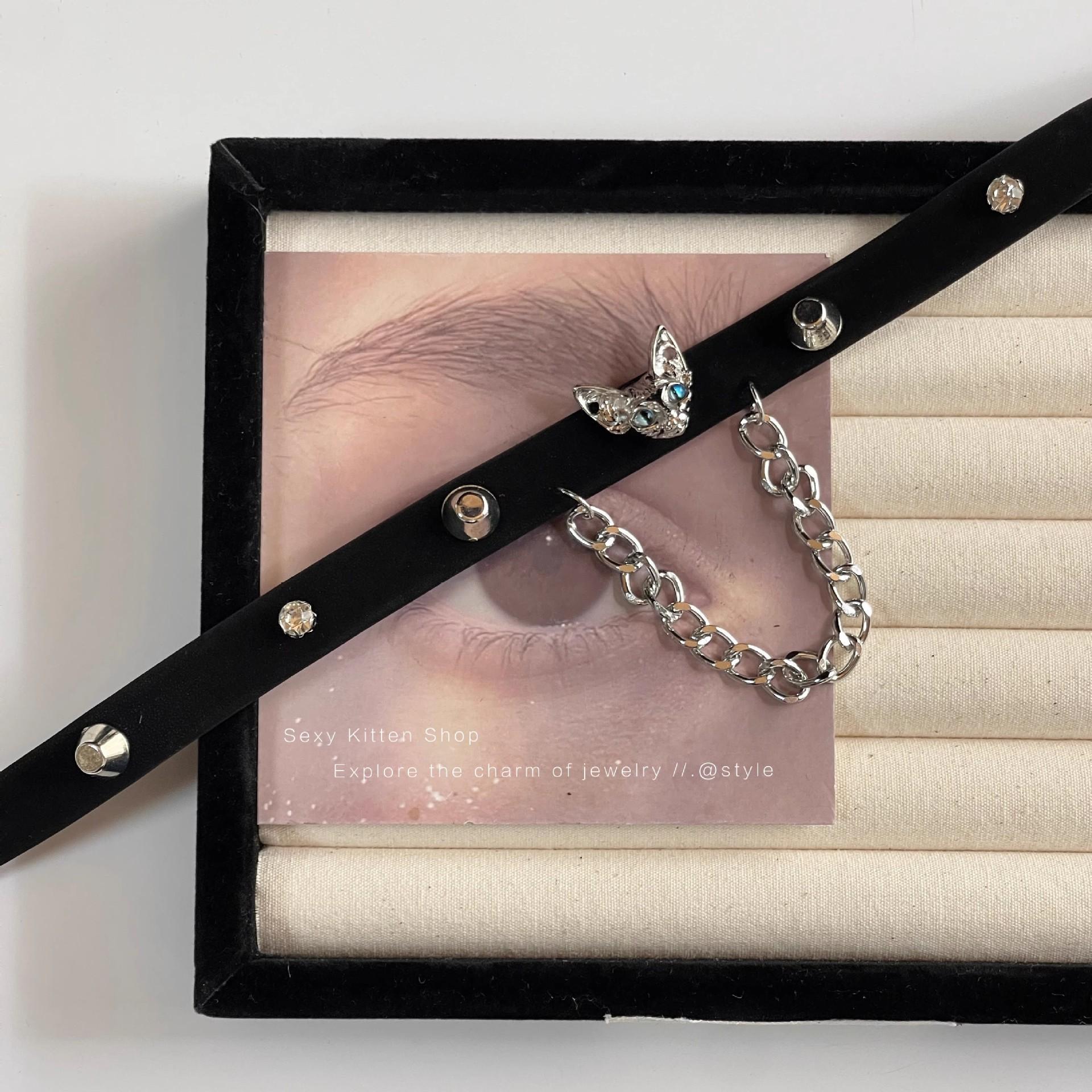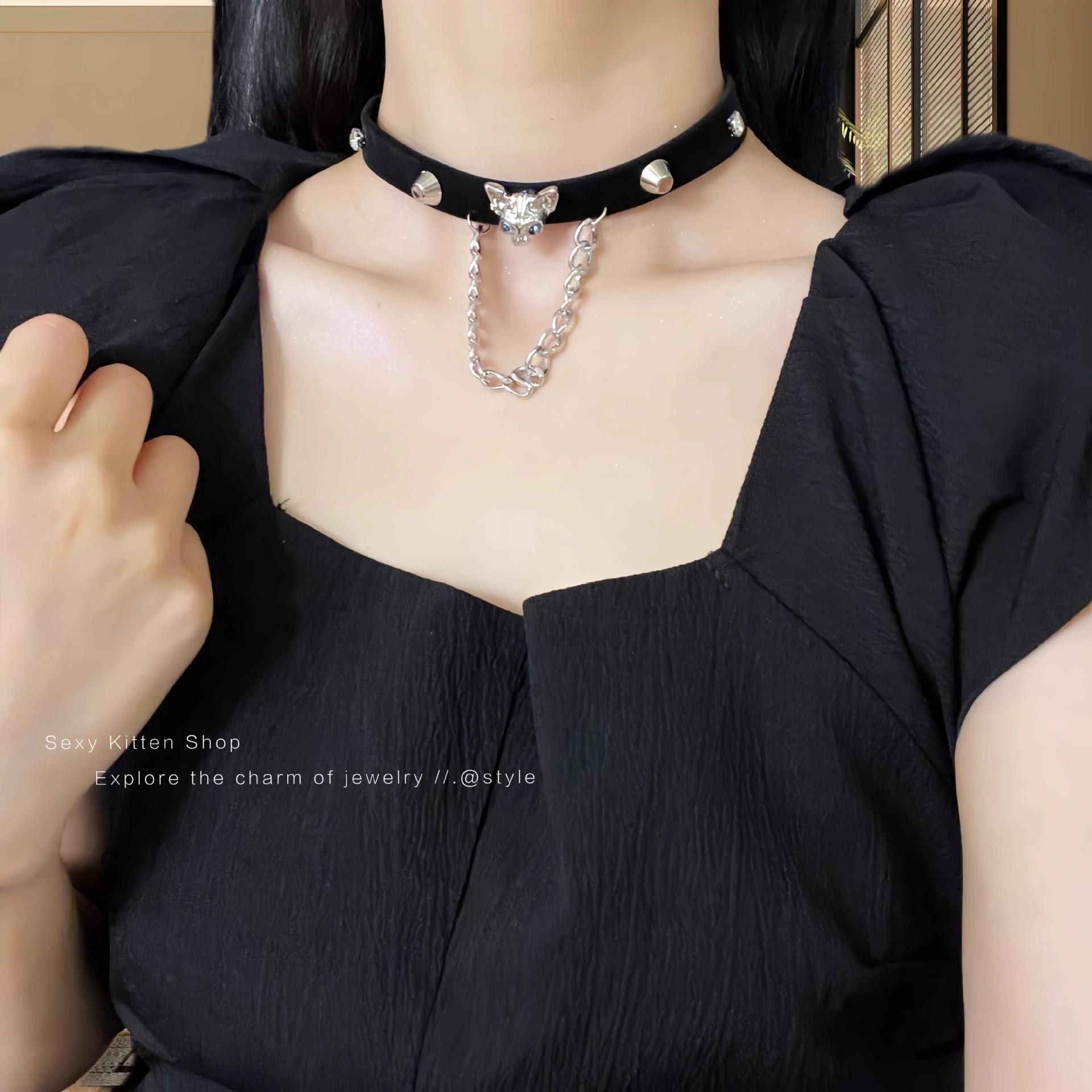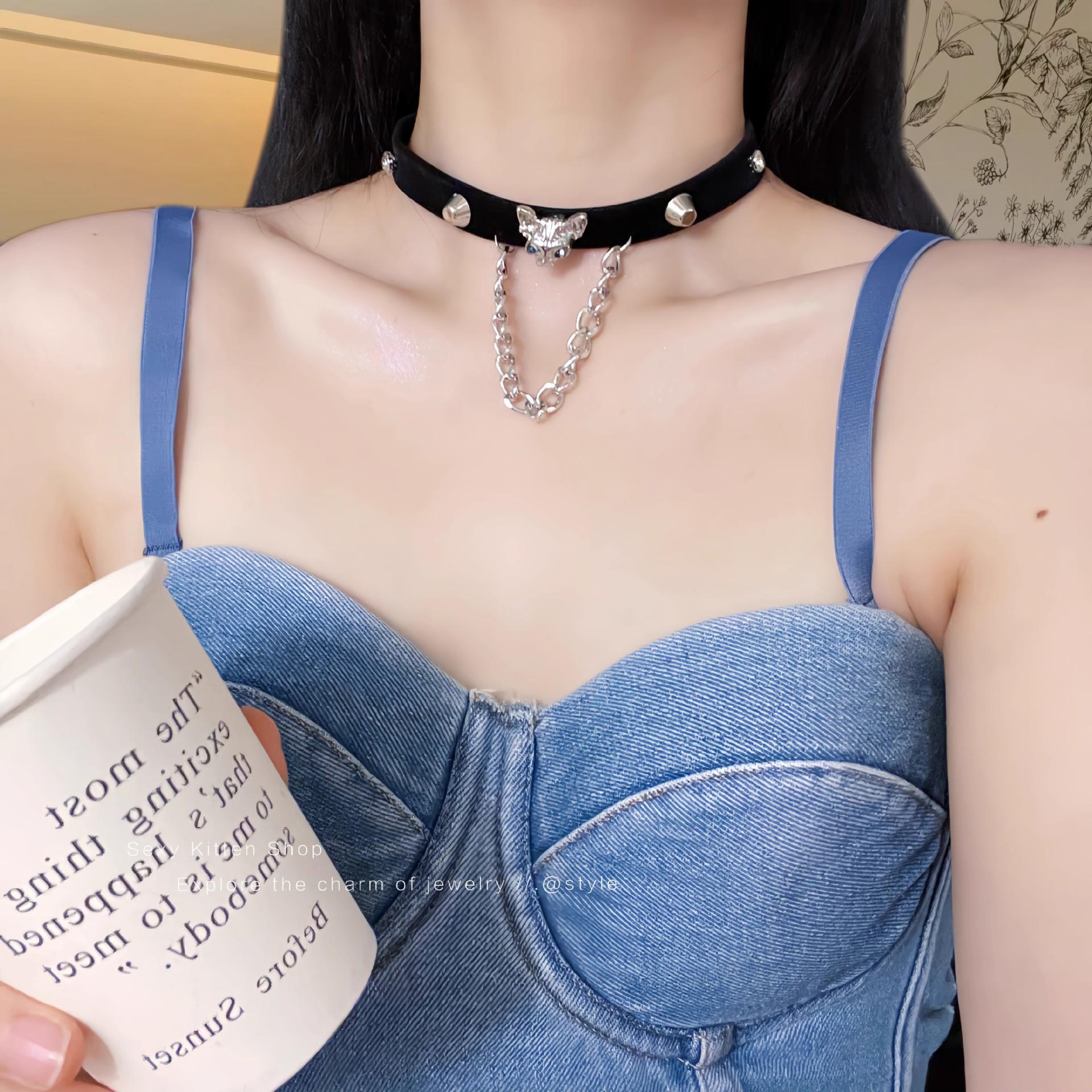 Dulce Cool Sexy Collar Choker de Cuero Negro Collar de Cuero Punk Nicho Oscuro Joyería al por Mayor