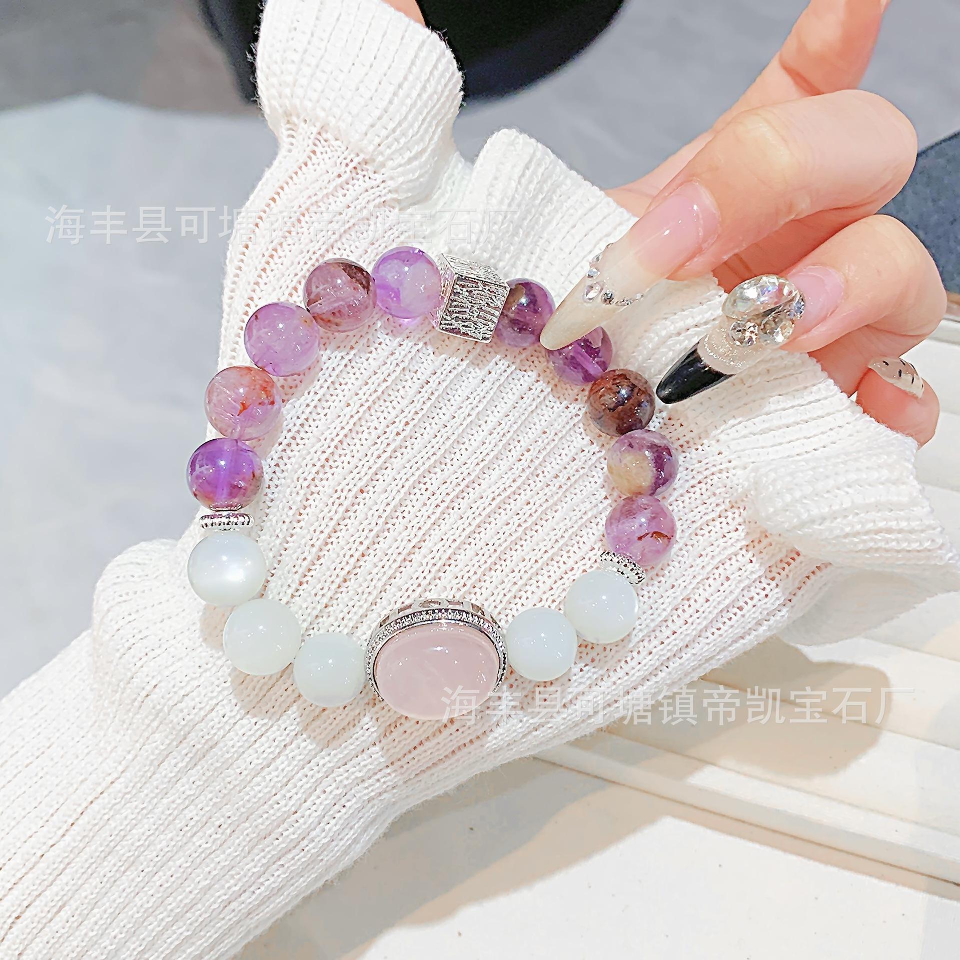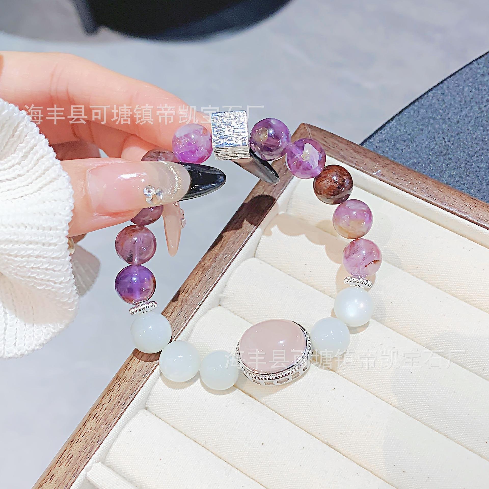Pulsera de Cristal Fantasma Morado DIY Hecha a Mano Cuentas Redondas Venta al por Mayor Pulseras de Cristal Natural Joyería Popular Pulseras de Joyería