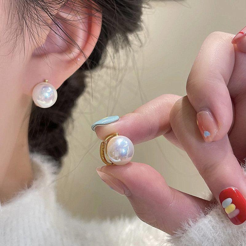 White pearl ear buckle [a pair]], Champagne pearl ear buckle [a pair]]