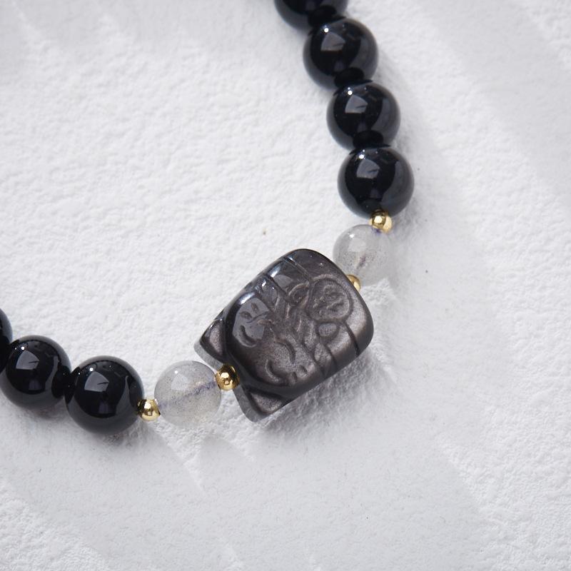 Materiales principales: Ágata negra, Obsidiana plateada, Piedra lunar gris
