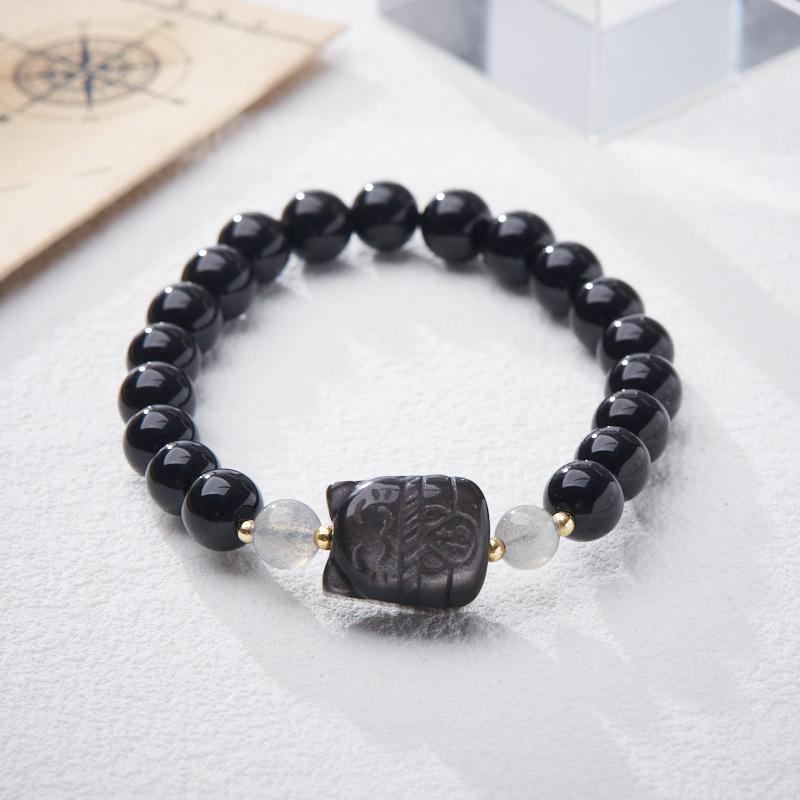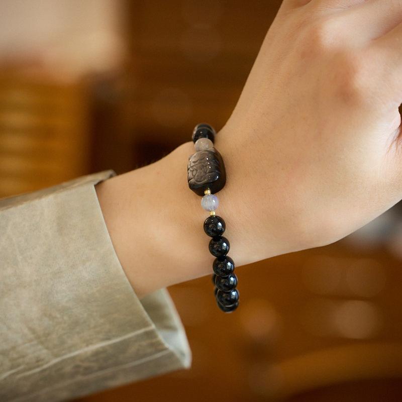 Nombre del Producto: Pulsera de Obsidiana Plateada de 8 mm Gatito Gris Luz de Luna