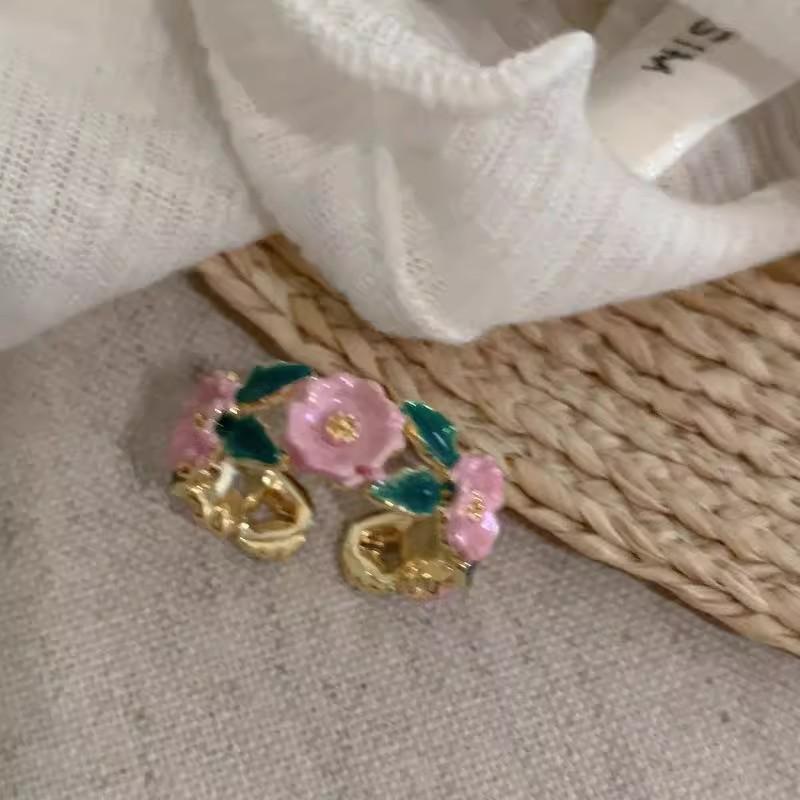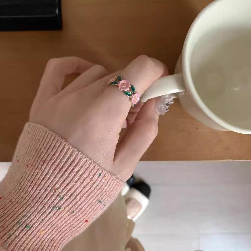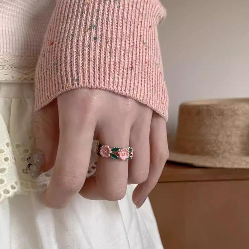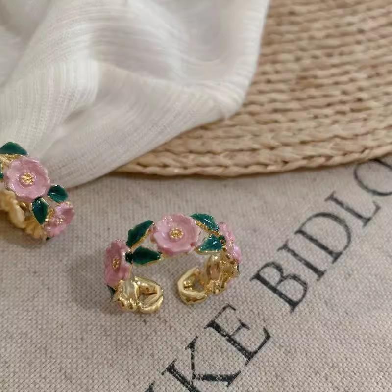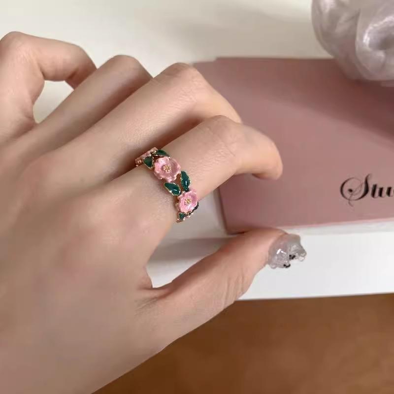 Nuevo anillo de esmalte chino retro francés con forma de rosa para mujer, de moda, ligero, de lujo, exquisito anillo de dedo, venta al por mayor