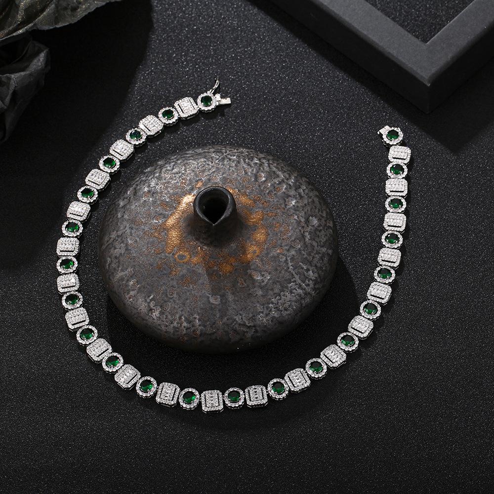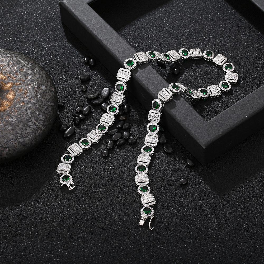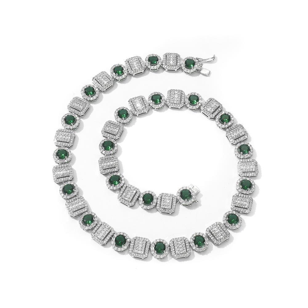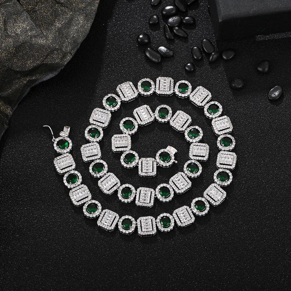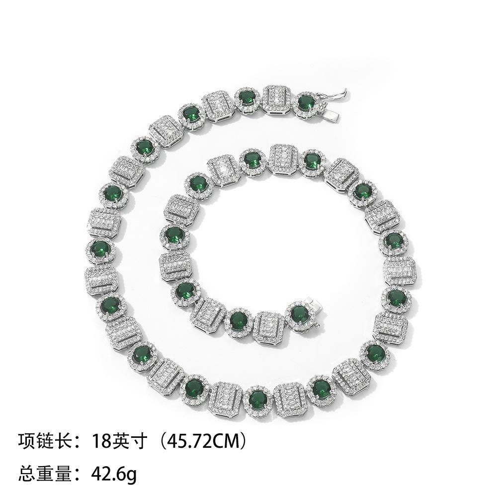 Cadena Hip-Hop Estilo Europeo y Americano Zircón Fila Sencilla 6mm Zircón Verde y Blanco Collar Tenis Cadena de Lujo Ligero para Hombre y Mujer