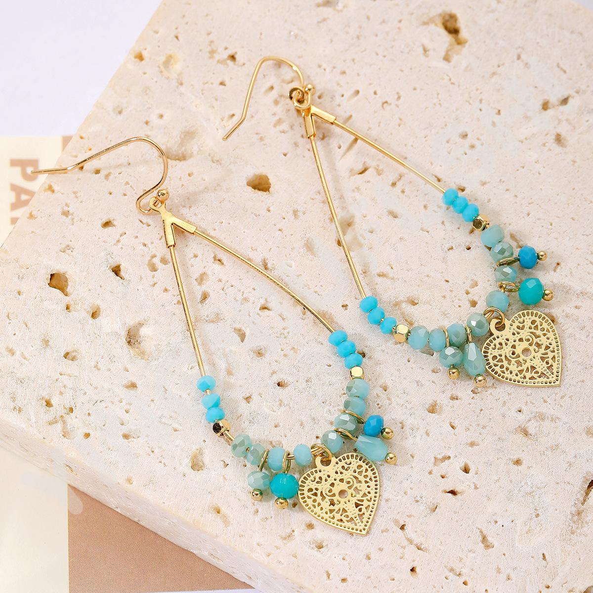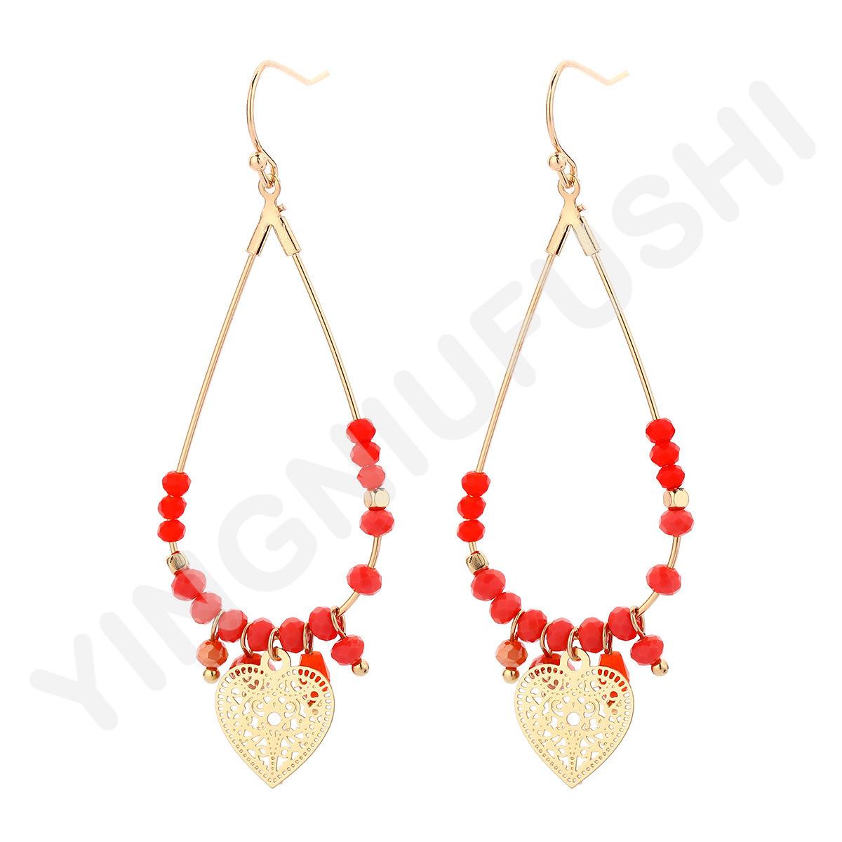Nuevos aretes étnicos estilo gota de agua, moda, temperamento, amor, colgante dorado para la oreja, aretes retro, fabricantes, venta al por mayor