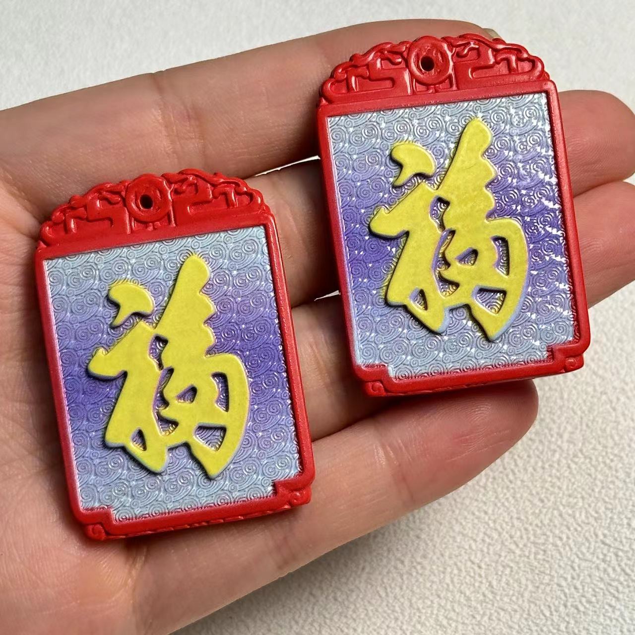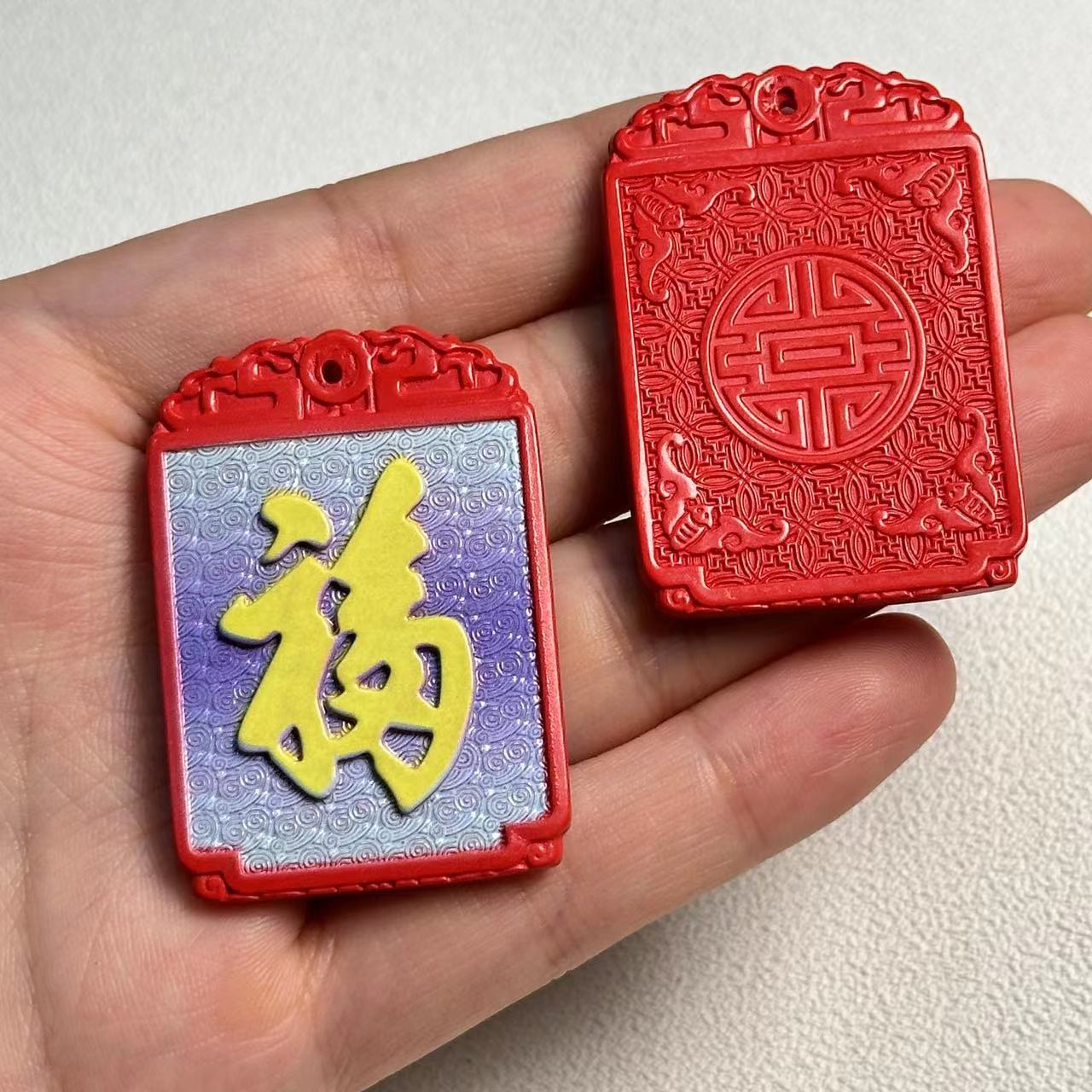 Compra Colgante de marca Fu pintado con arena roja cinabrio, accesorios de bricolaje, collar de cuerda tejida a mano, cuentas de Buda Wen Play, accesorios al por mayor en Joom.pro