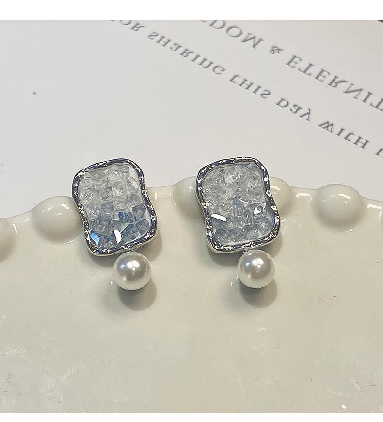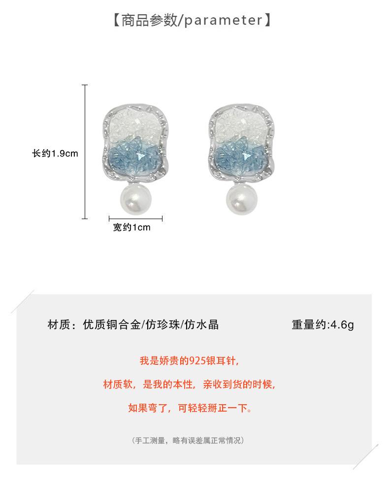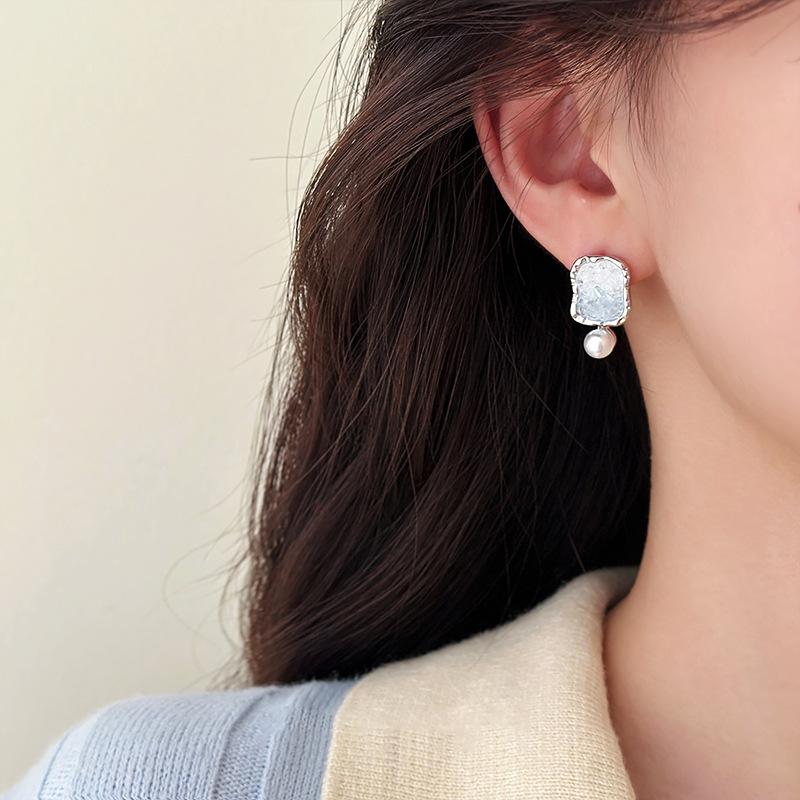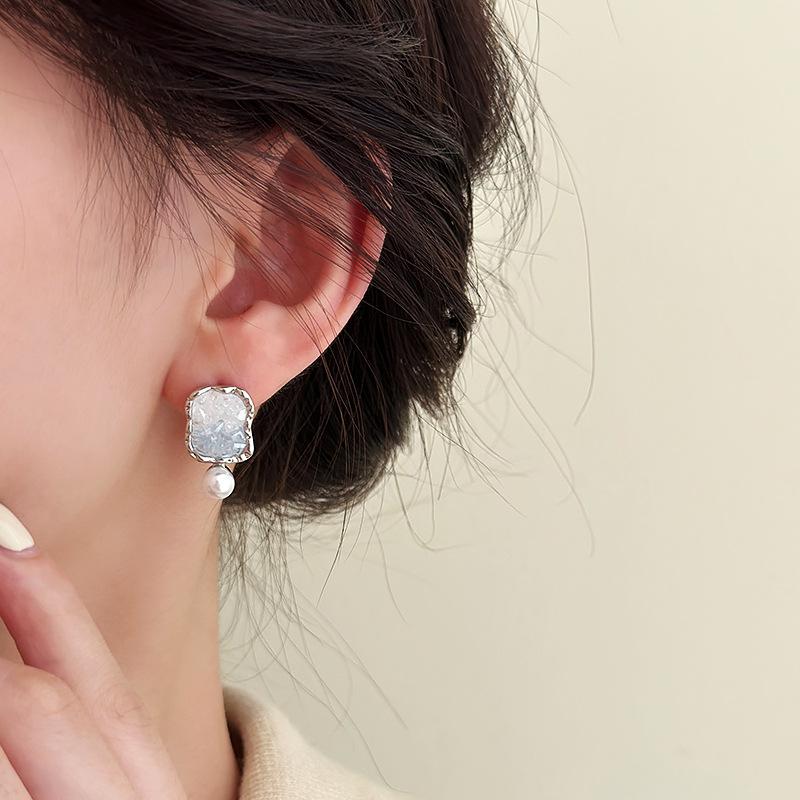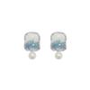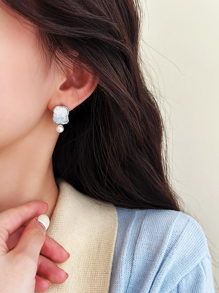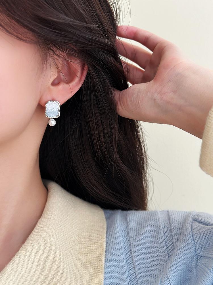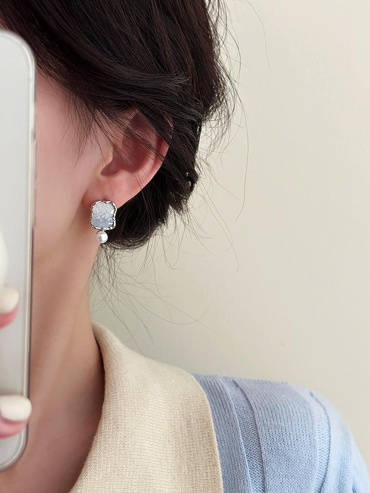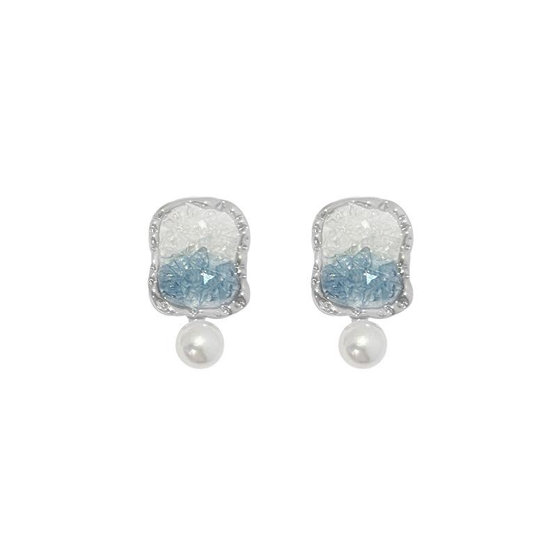 Aretes rectangulares de lujo ligero de alta gama con degradado, diseño de nicho para mujer, aretes de perlas azules, joyería elegante y de moda para las orejas