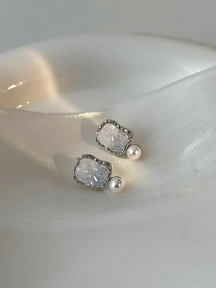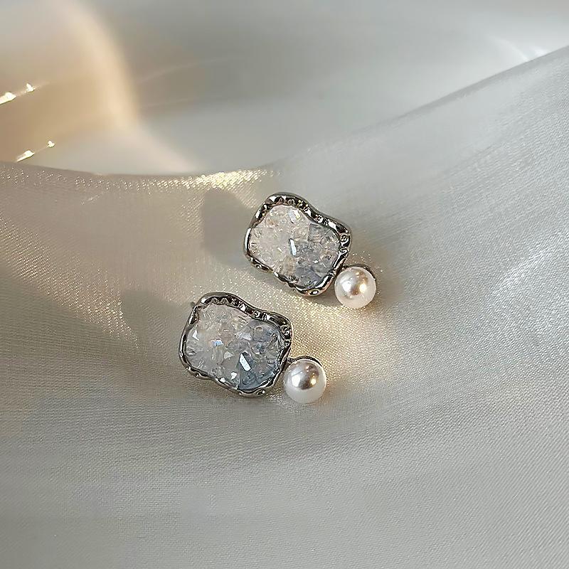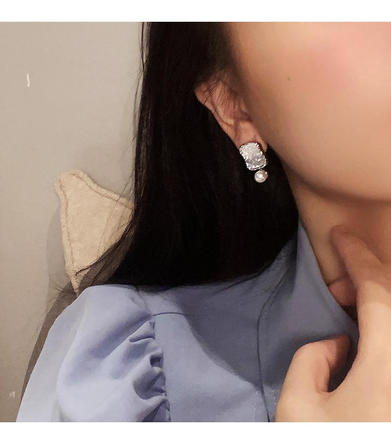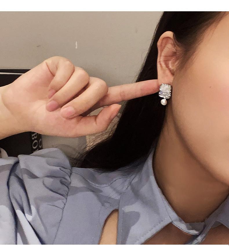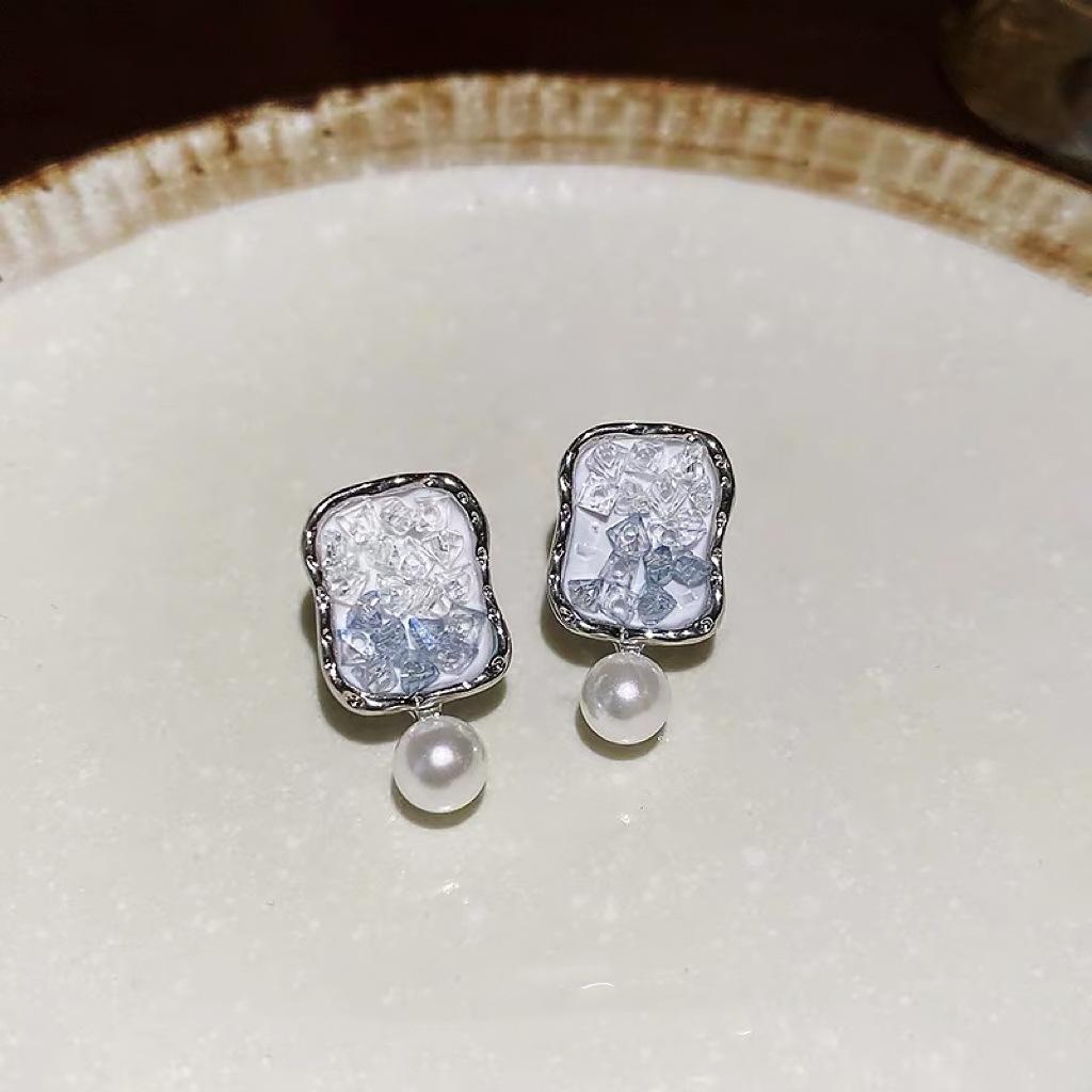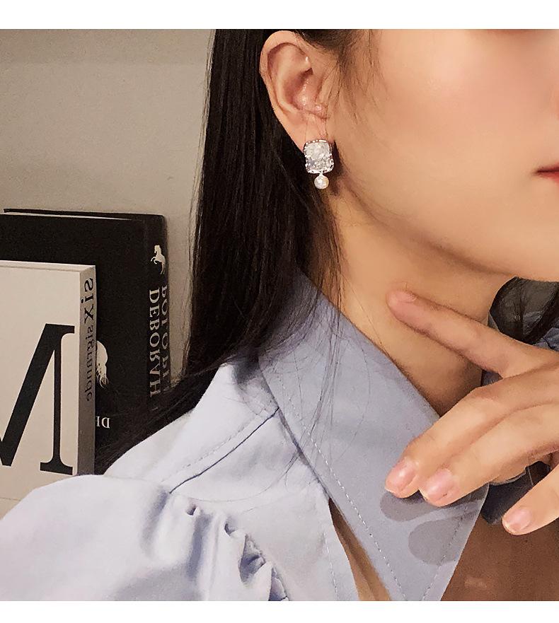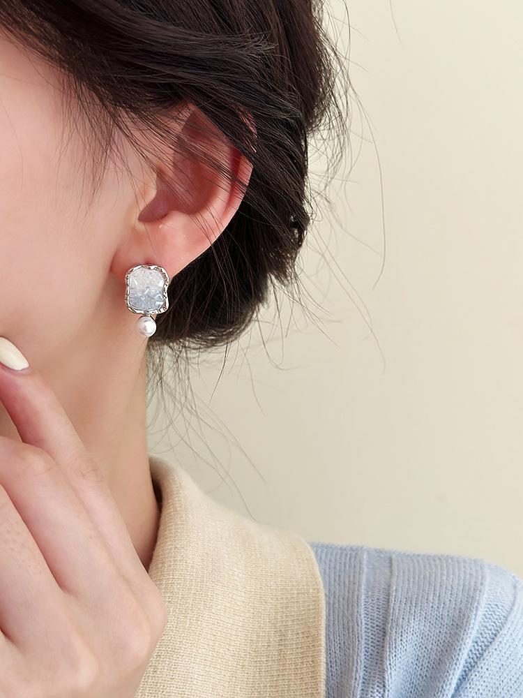 Aretes rectangulares de lujo ligero de alta gama con degradado, diseño de nicho para mujer, aretes de perlas azules, joyería elegante y de moda para las orejas