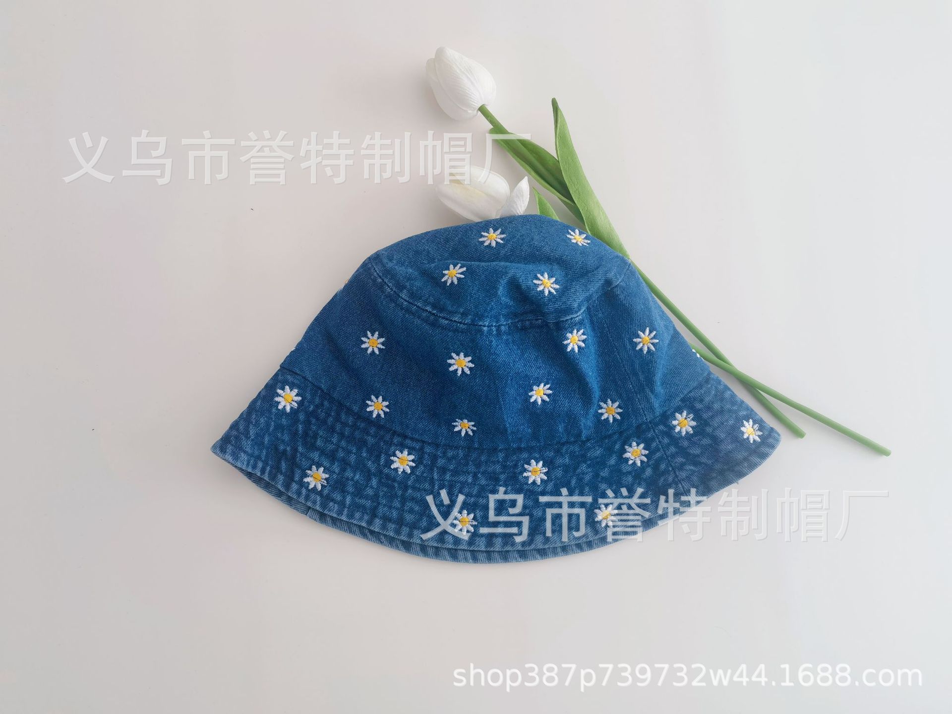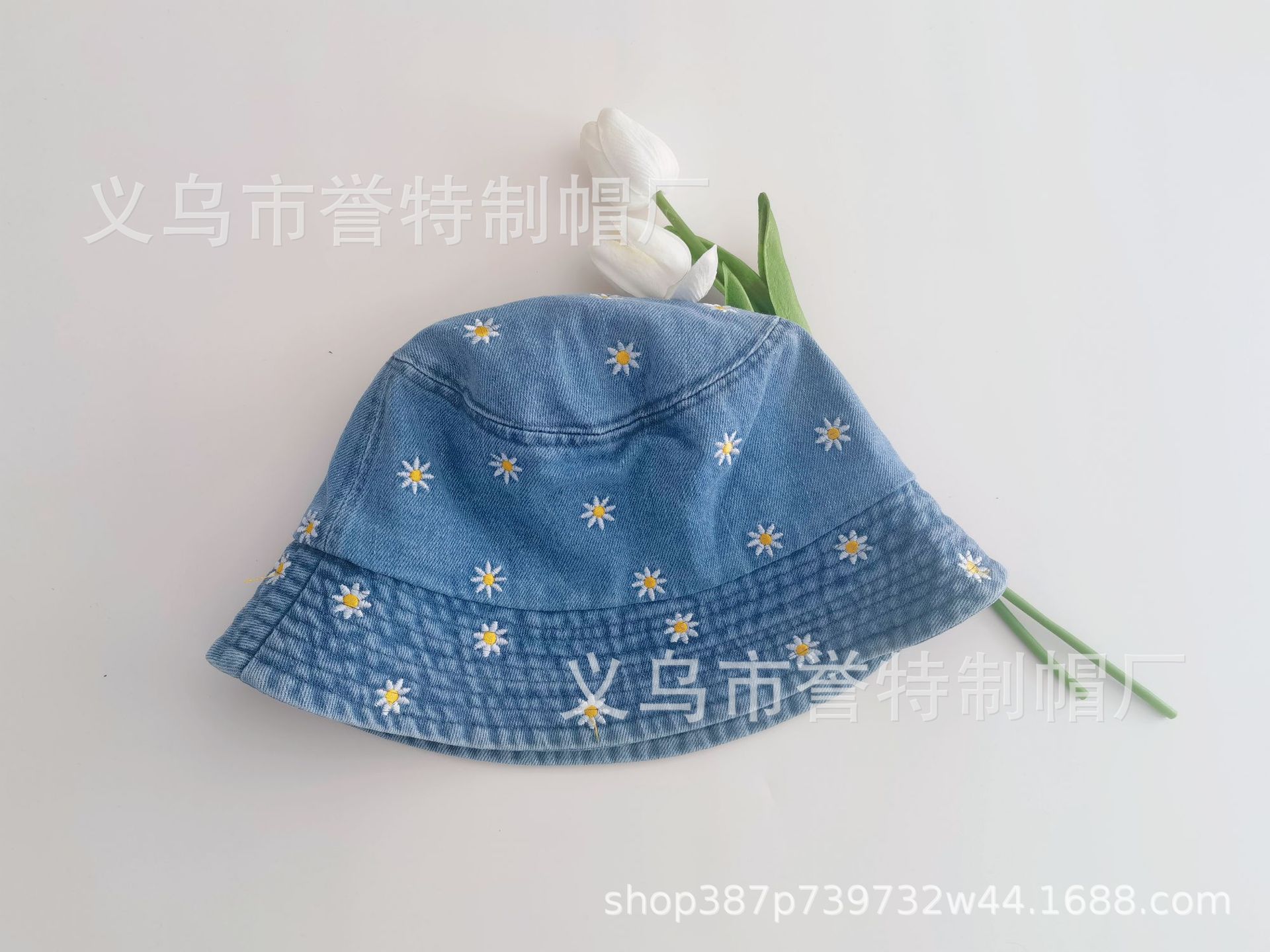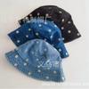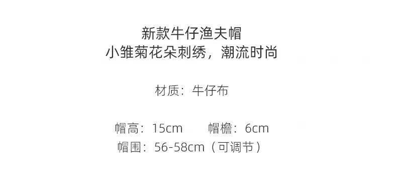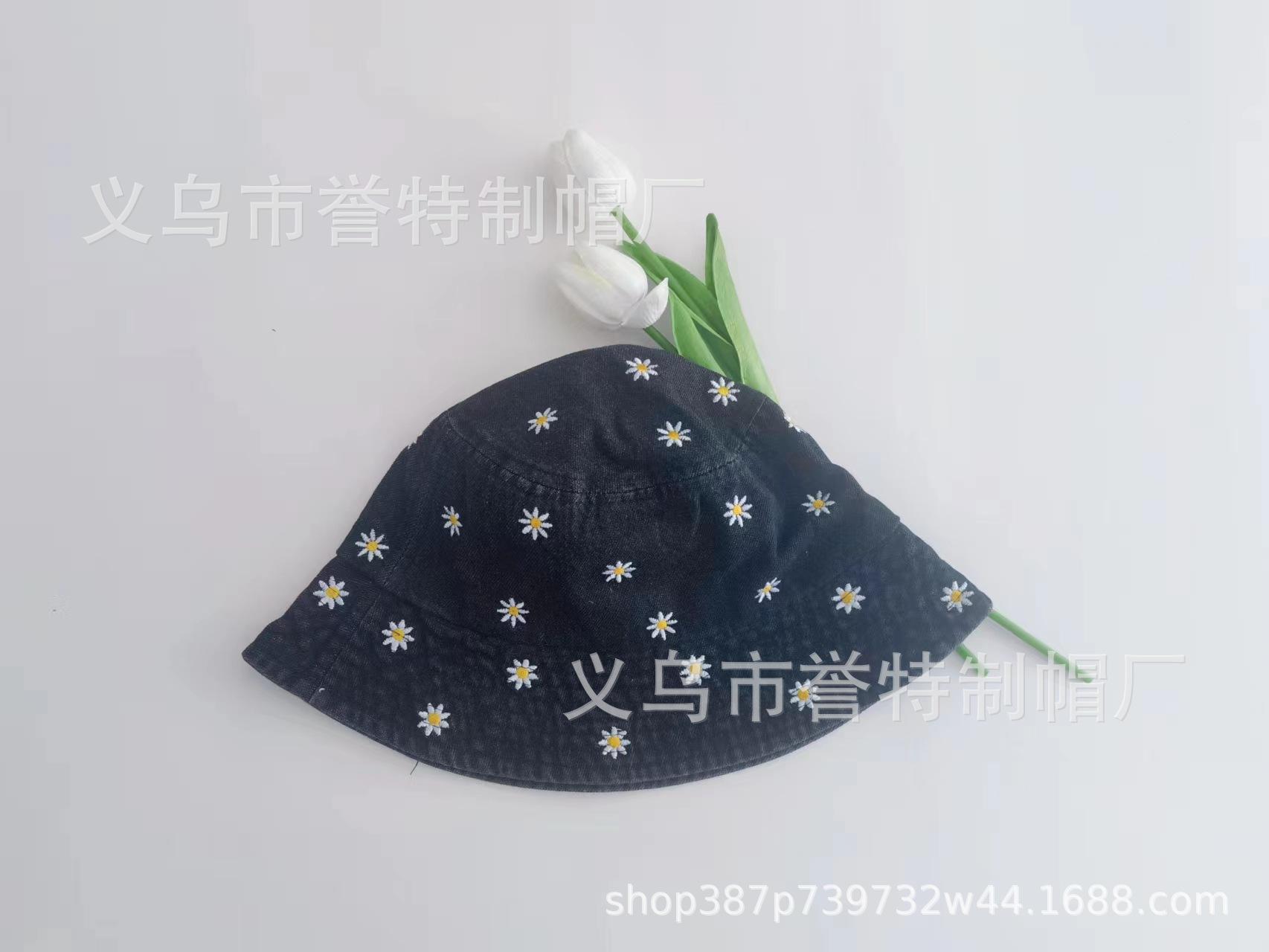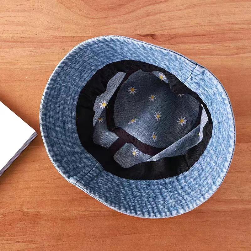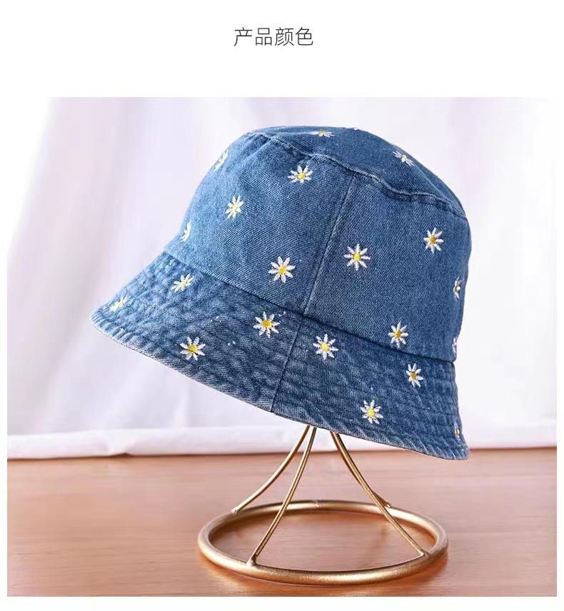 Sombrero de Pescador de Mezclilla Bordado con Margaritas Japonesas para Niños, Moderno, Primavera Verano Otoño, Retro, Combinable con Todo, Sombreado Facial, Pequeño Parasol, Sombrero de Cubo