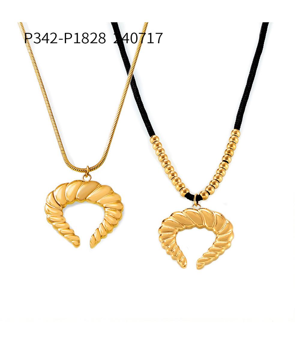 Collar con colgante de cadena de clavícula con hilo de cuerno retro europeo y americano, diseño de personalidad de moda chapado en oro de 18 quilates que no se decolora, venta al por mayor