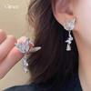 Pendientes colgantes de diamantes con doble mariposa 2024 para mujer, estilo Spice Girl, elegantes y modernos, con un diseño lujoso y ligero.