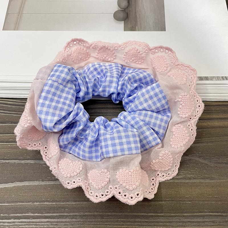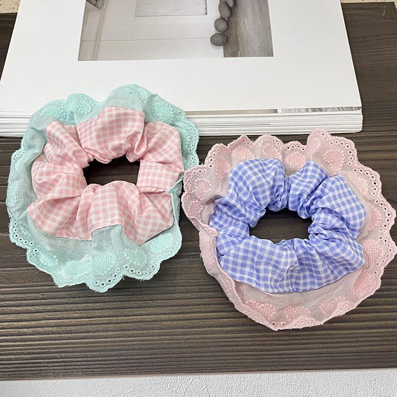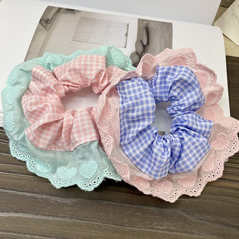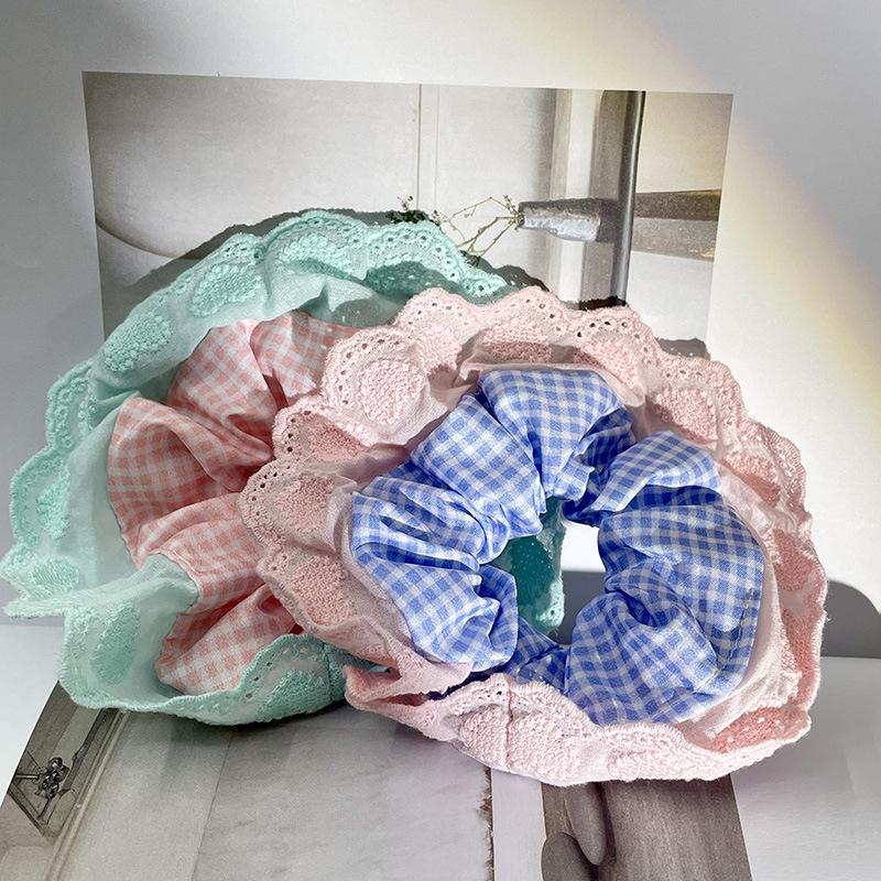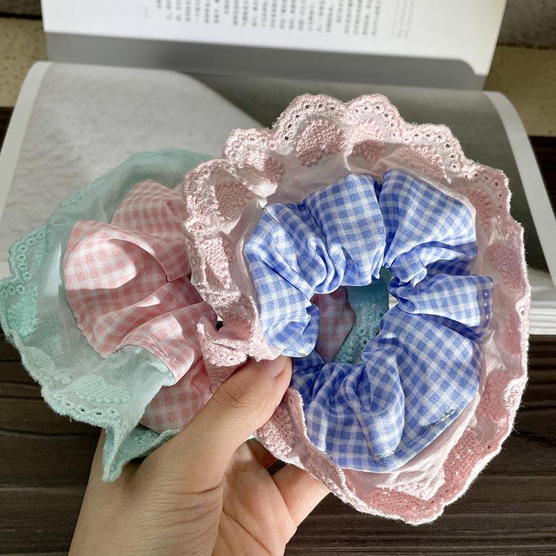 Anillo para el cabello con encaje a cuadros para niña dulce, tocado de alta gama para mujer, cuerda para el cabello, accesorios para el cabello, nuevo estilo 2024