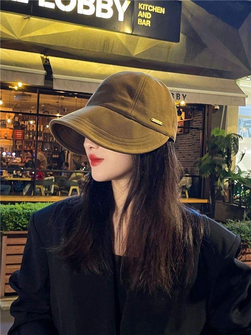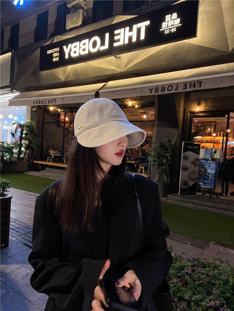 Compra Sombrero de pescador para mujer, otoño e invierno, grueso, estilo coreano, de lana, combina con todo, bonito, con cara redonda, cara grande, delgado, gorro de lavabo al por mayor en Joom.pro