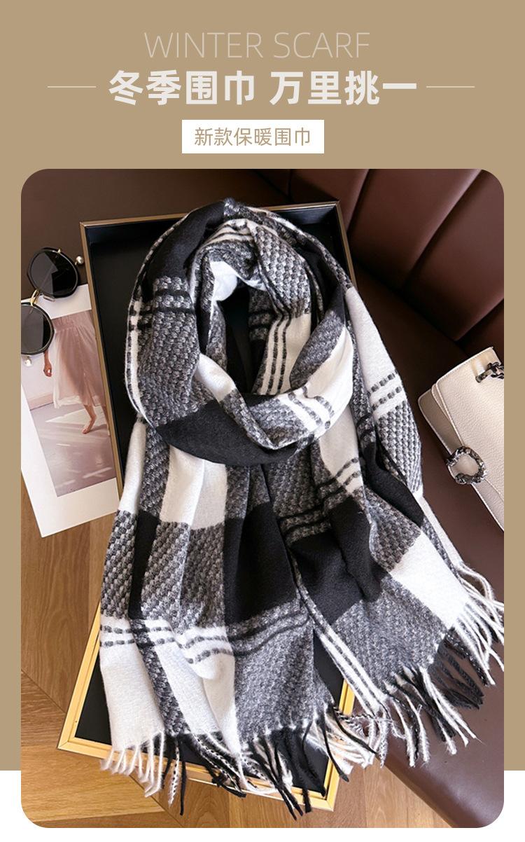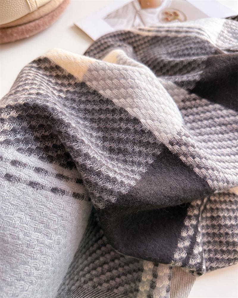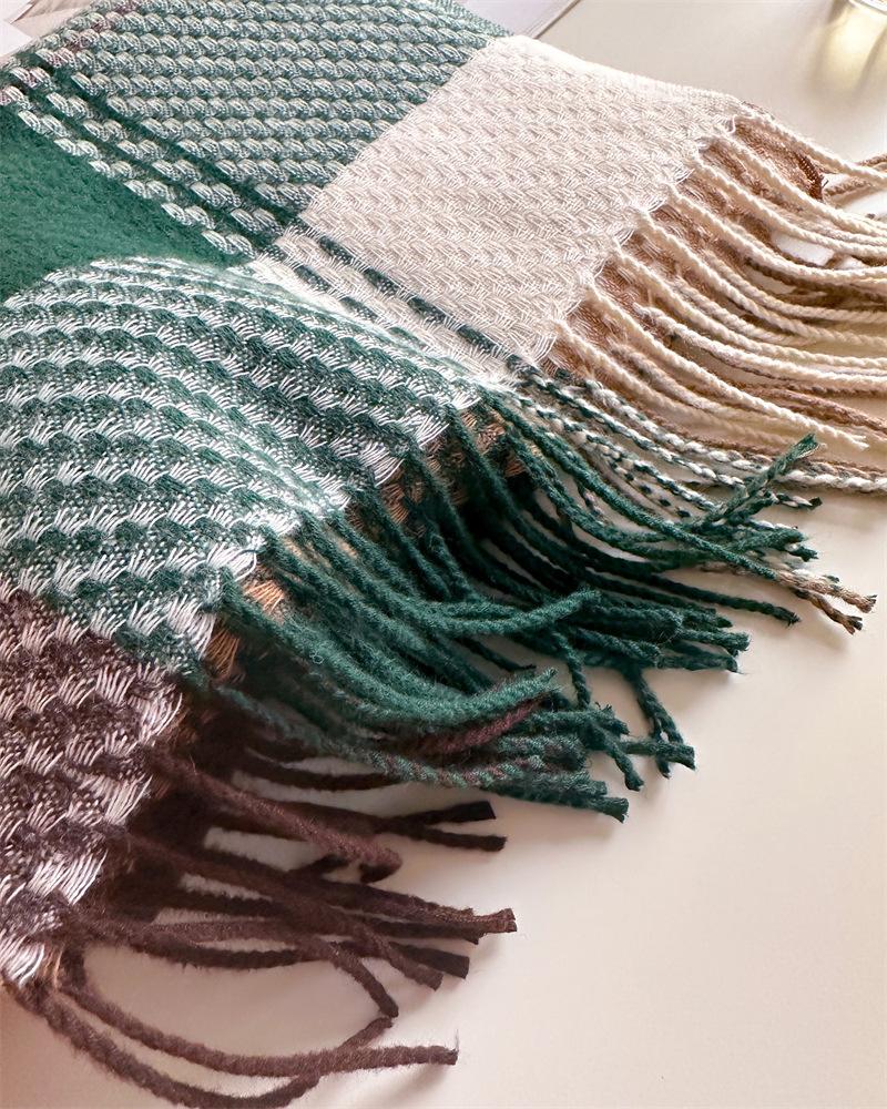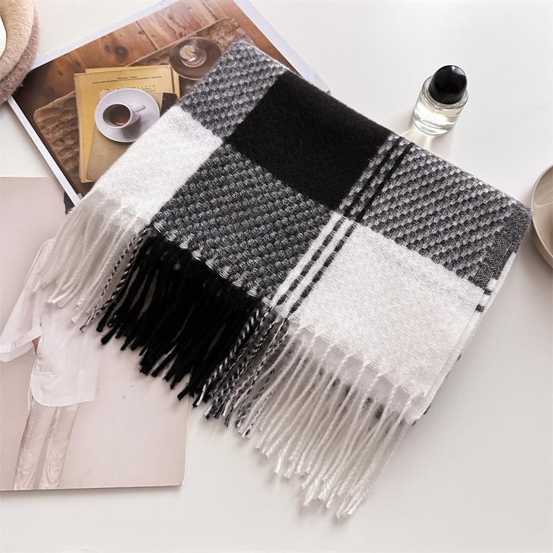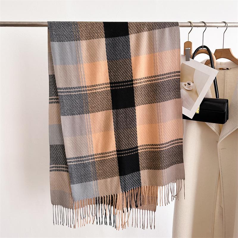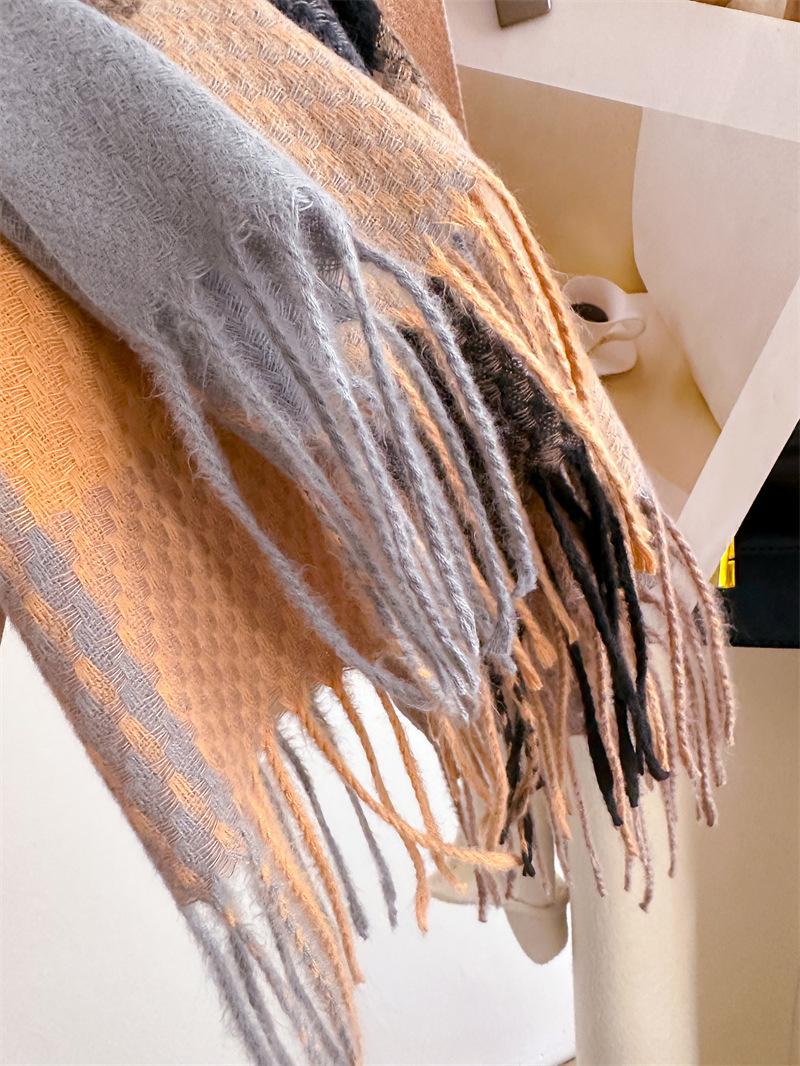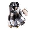 Bufanda de cachemira de estilo nórdico, grande, cálida, a cuadros, unisex, para otoño e invierno, con borlas que combinan con todo.